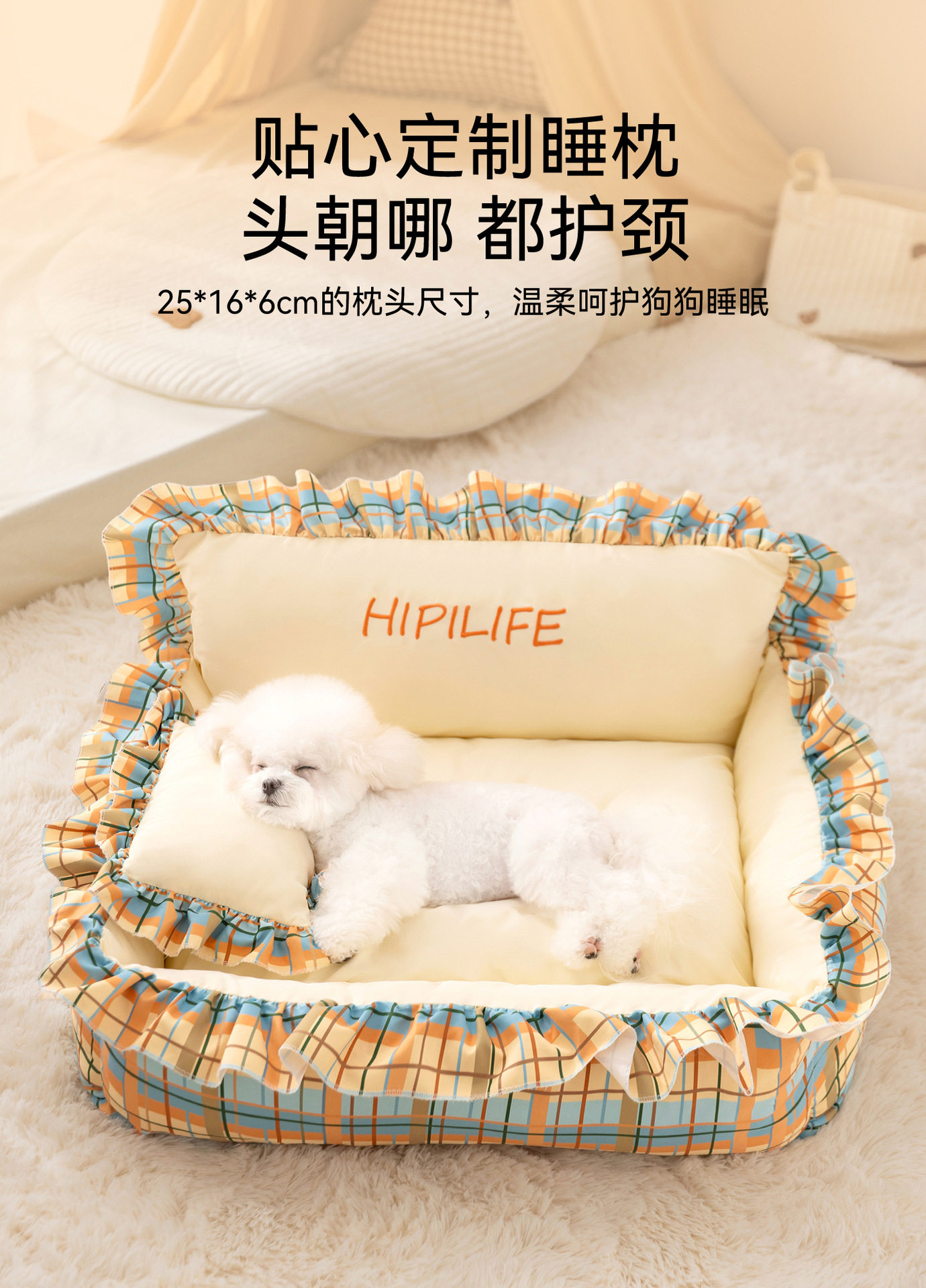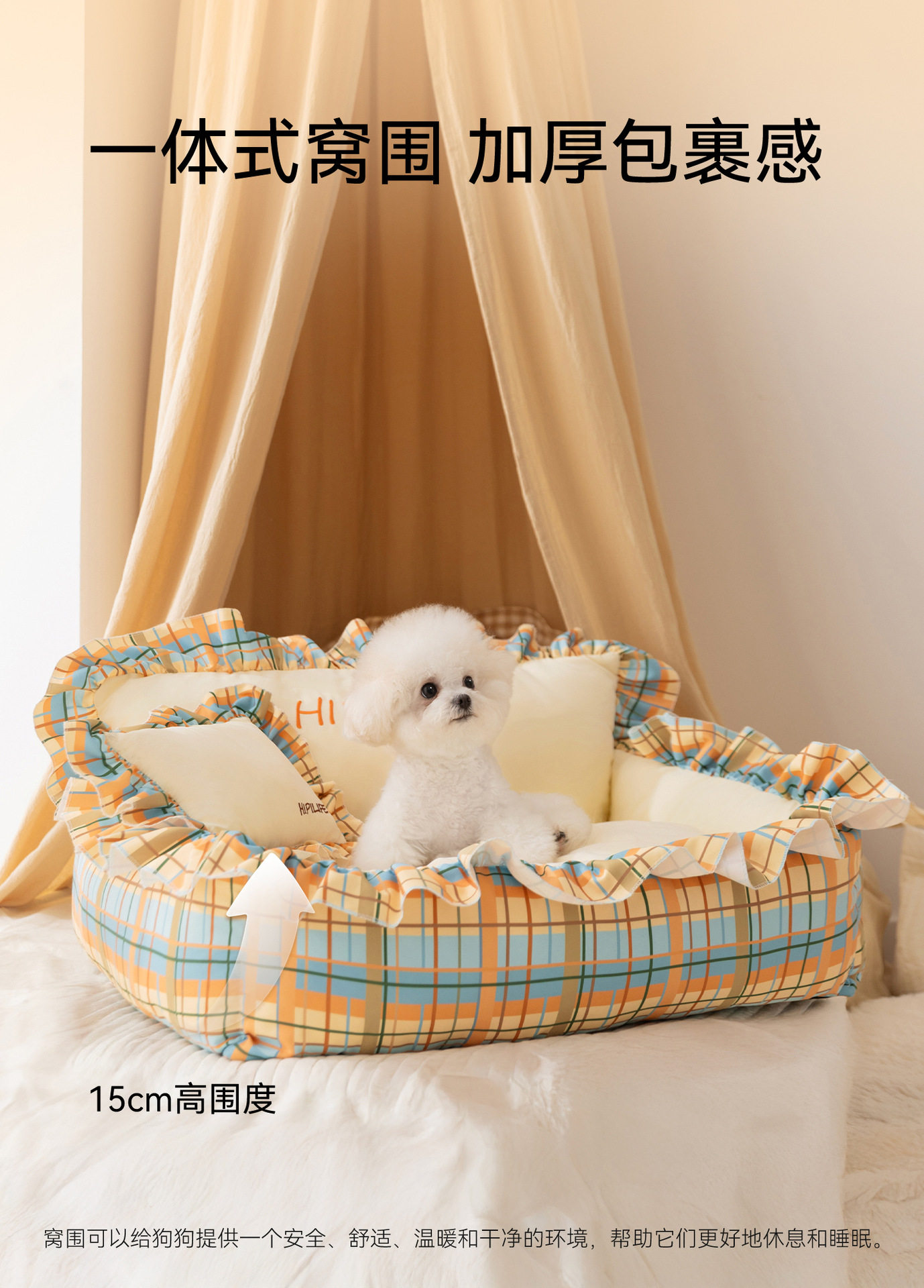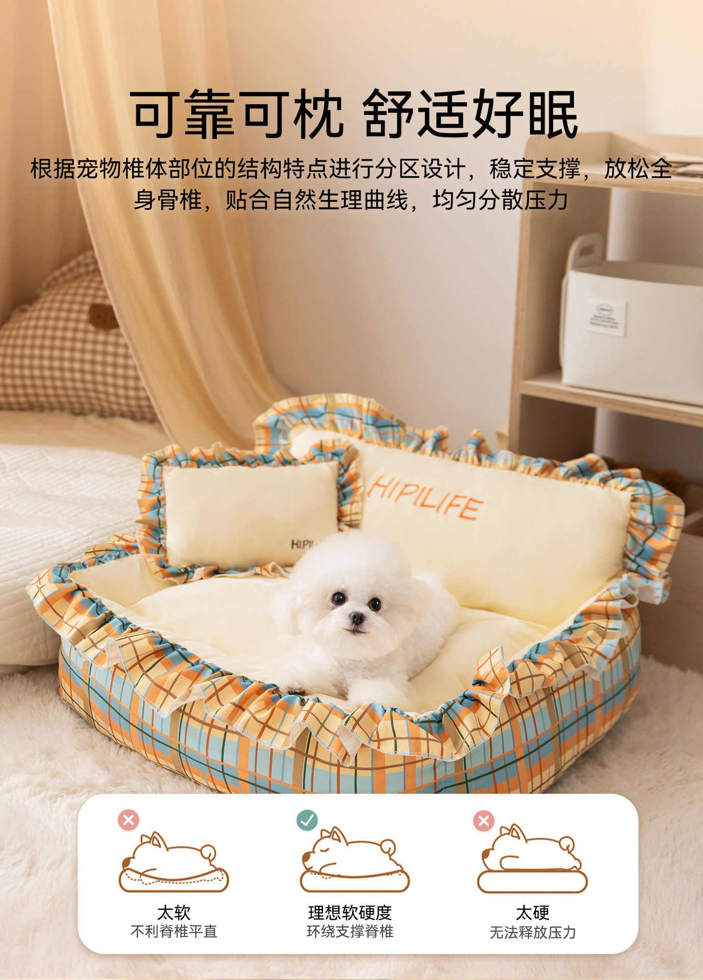 Dog Bed with Removable and Washable Thickened Backrest Sofa, Winter Warm Pet Bed for Small and Medium-Sized Dogs, Bichon Dog Bed, Four-Season Cat Bed