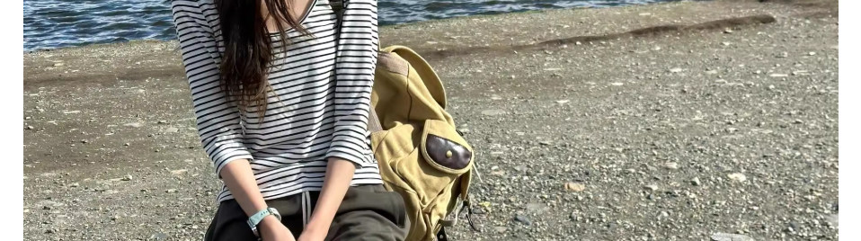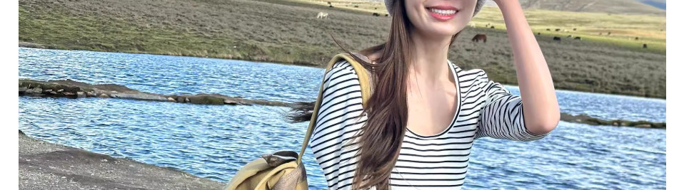 Striped Three-Quarter Sleeve U-Neck T-Shirt for Women, Summer Lazy Style, Simple and High-End, Slim Fit, Long-Sleeve Base Shirt Top
