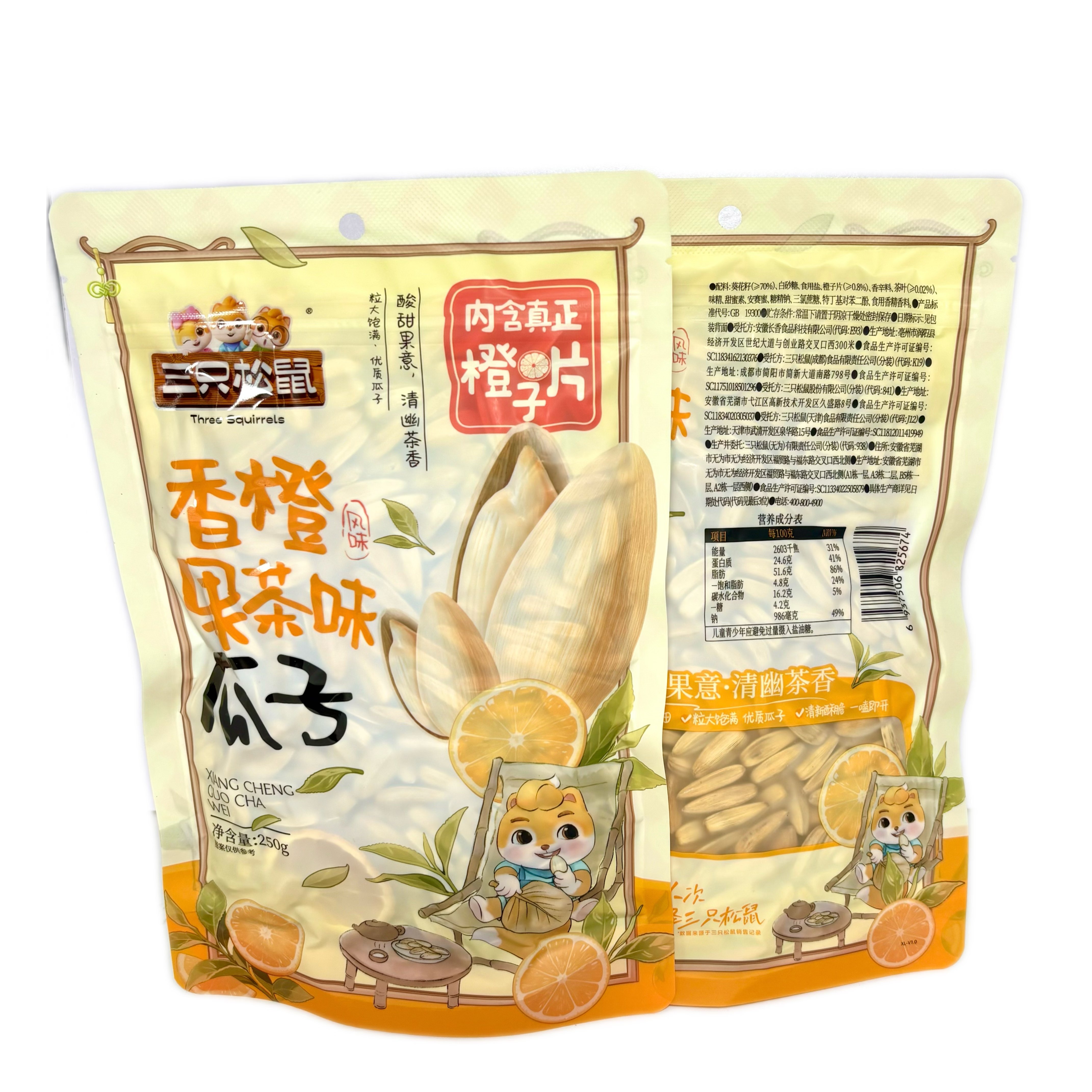 Three Squirrels Orange Fruit Tea Flavored Sunflower Seeds Bulk Pack 250g Snack to Satisfy Cravings New Product
