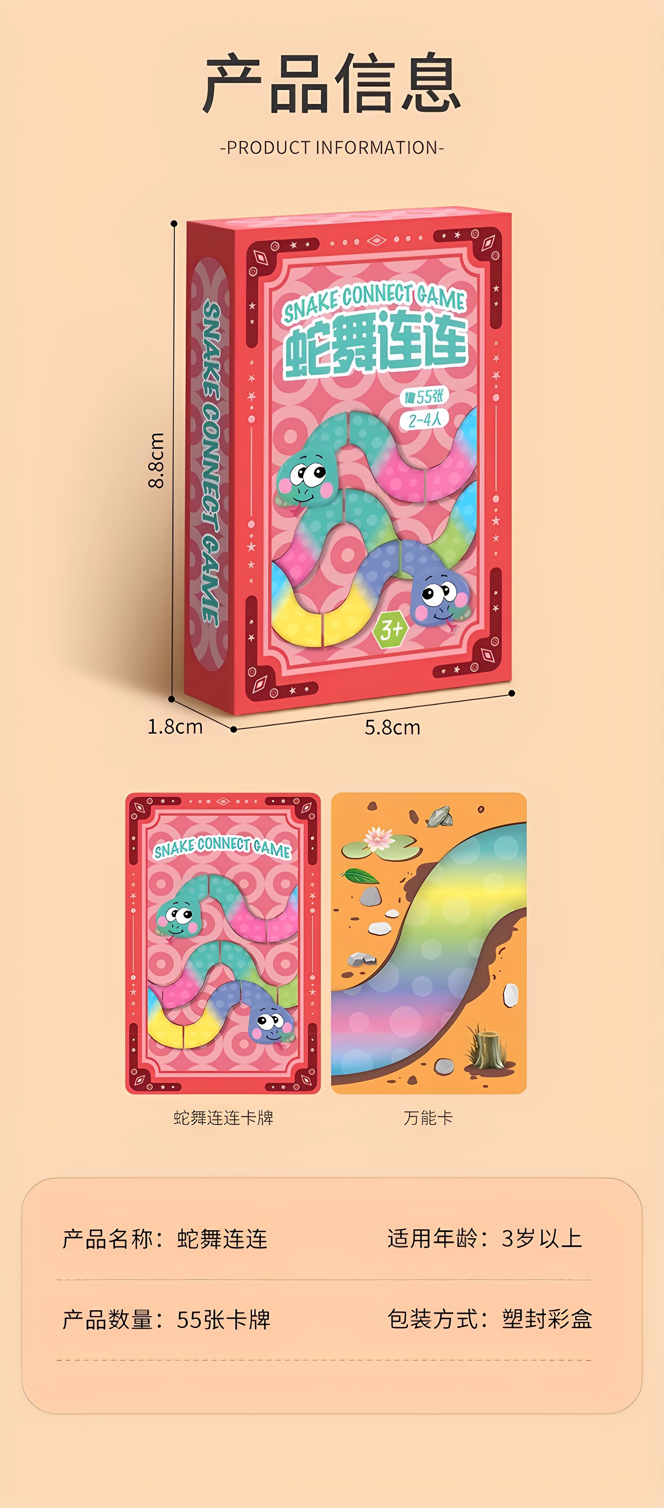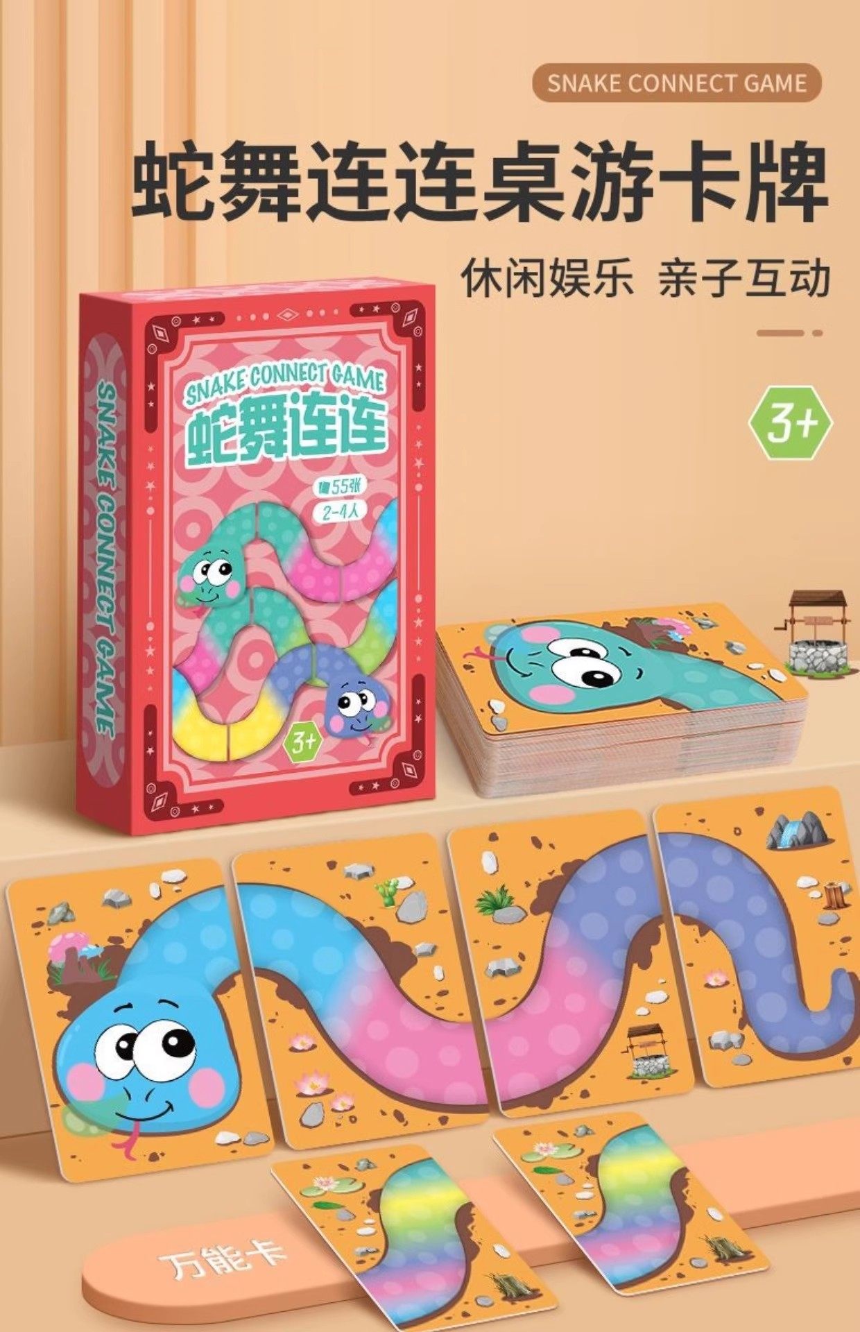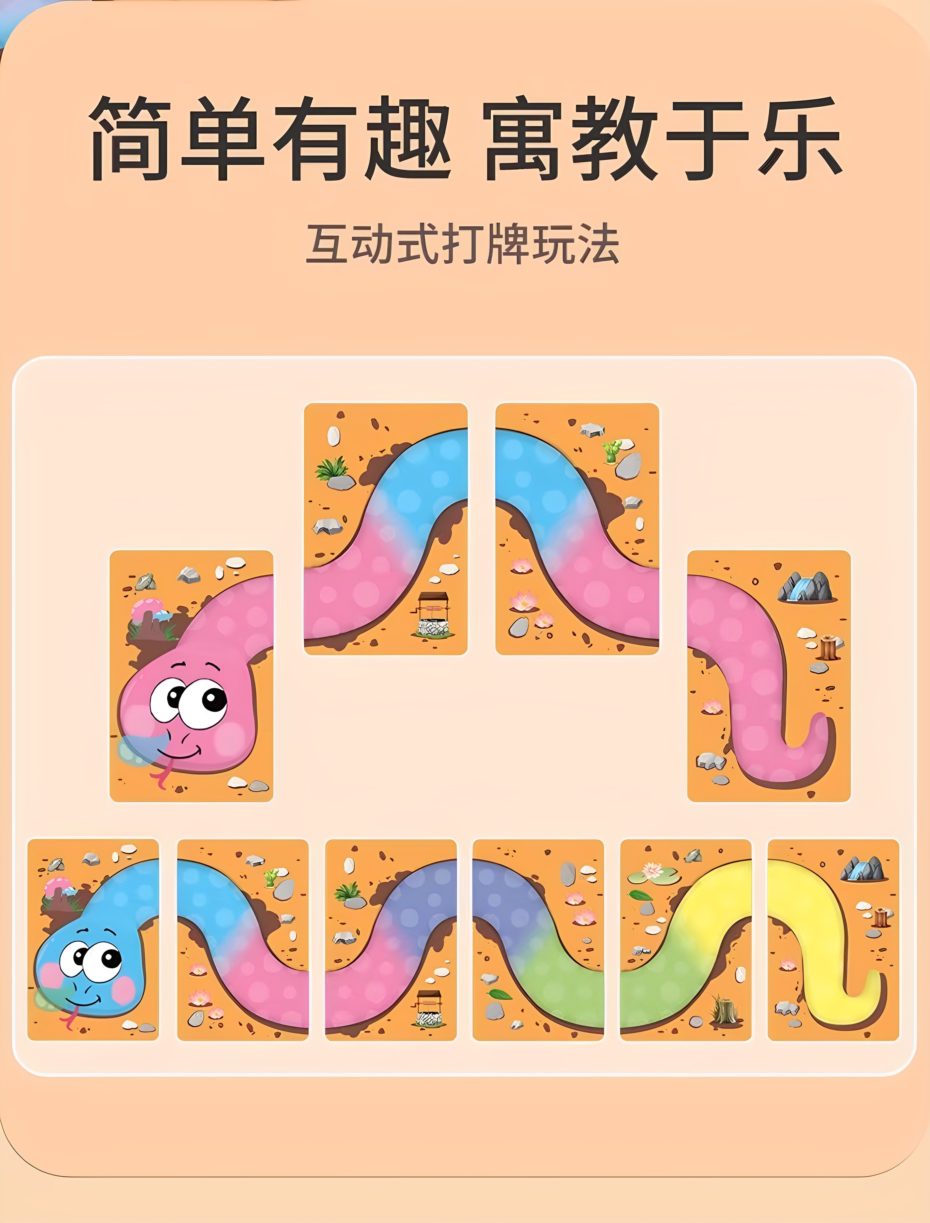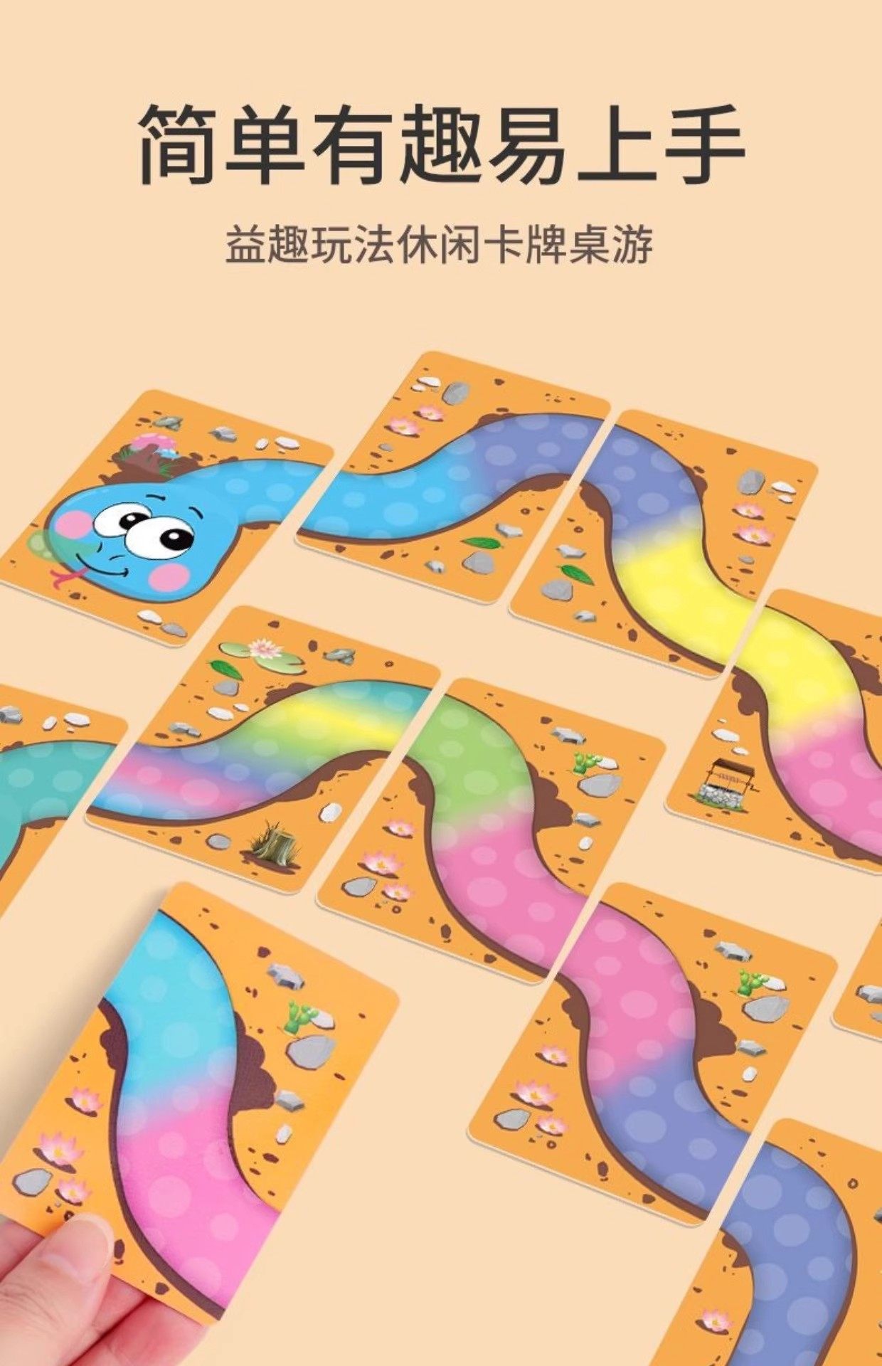 Snake Brand Board Game Parent-Child Interactive Snake Dance Solitaire Connect-The-Dots Children's Playing Cards Matching Game 3-6 Years Old Outdoor Card Game