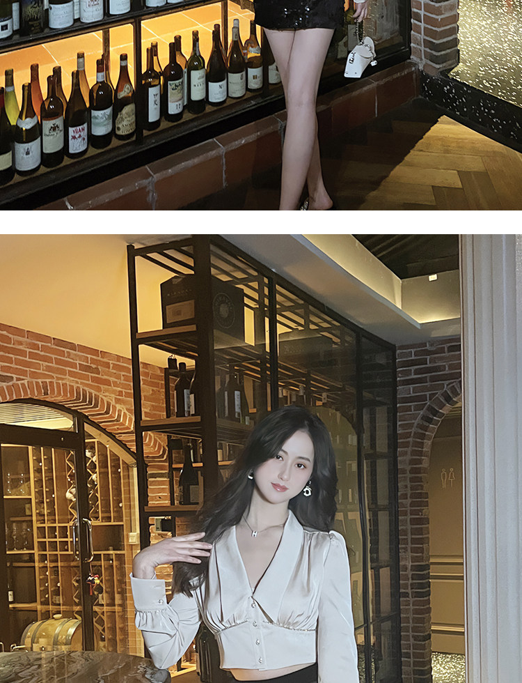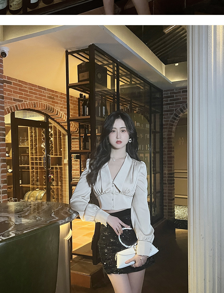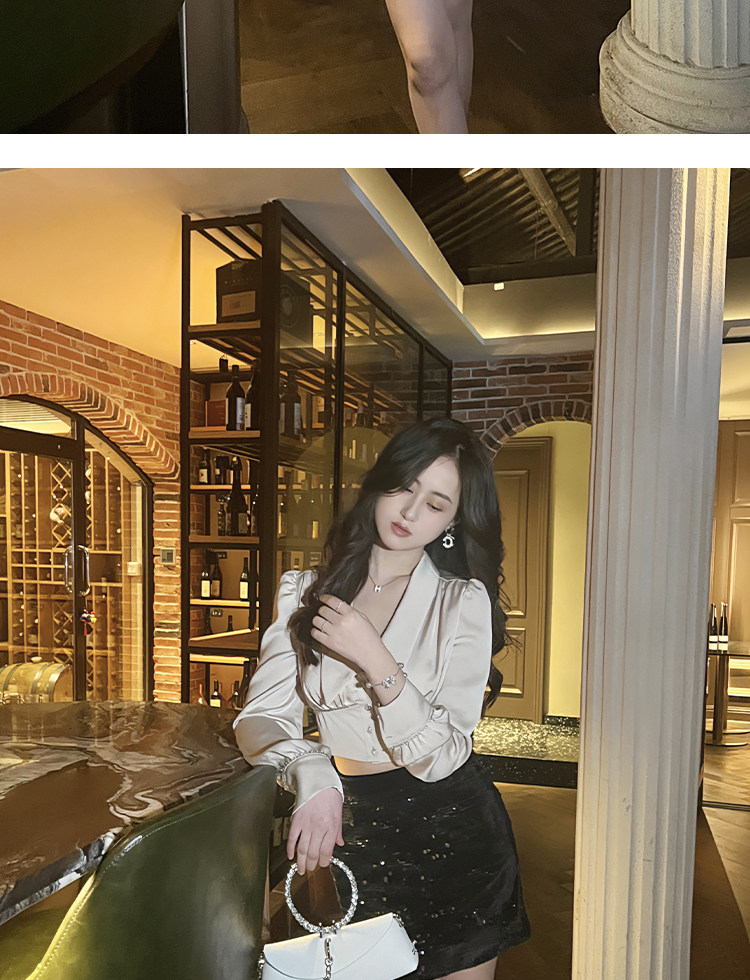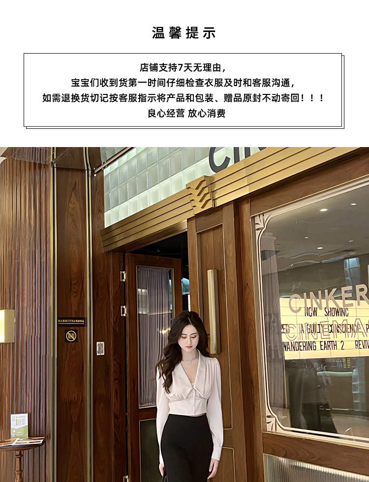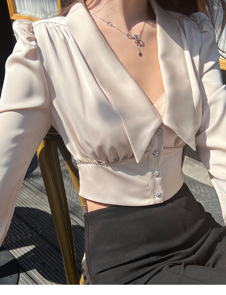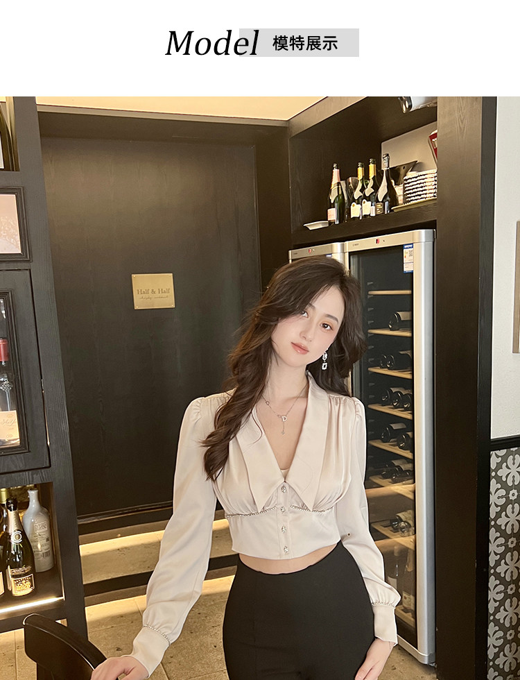 Hollin Long-Sleeved Acetate Satin Shirt for Women Spring & Fall 2025 New Design Niche V Neck Short Shirt