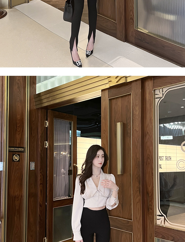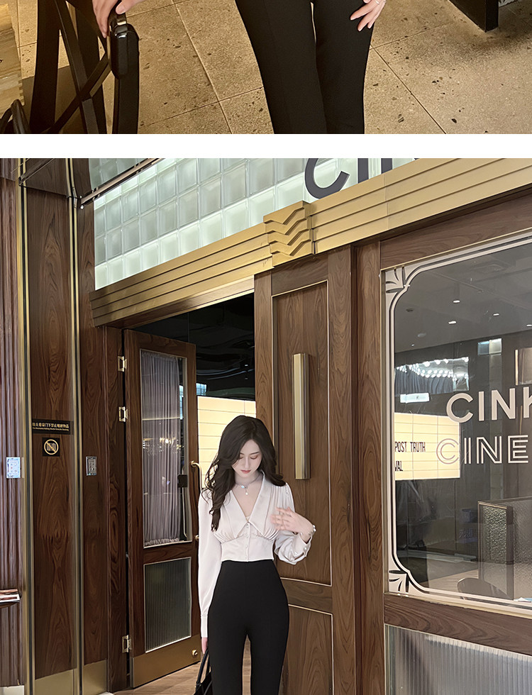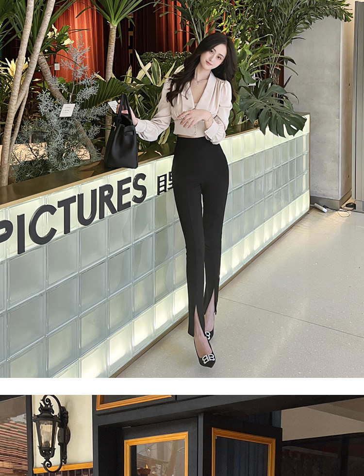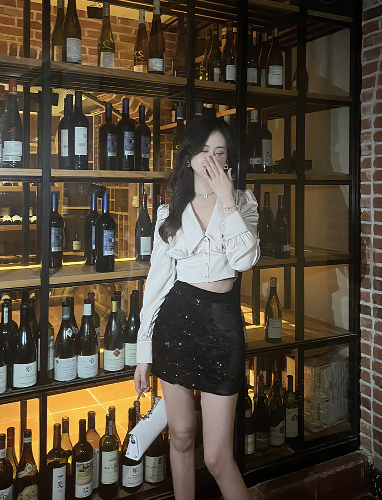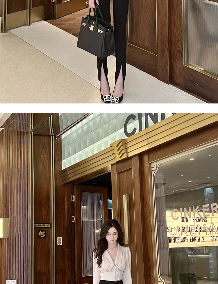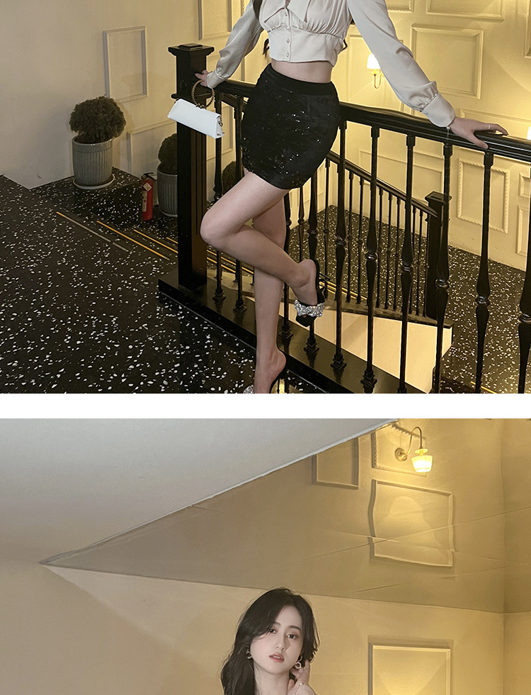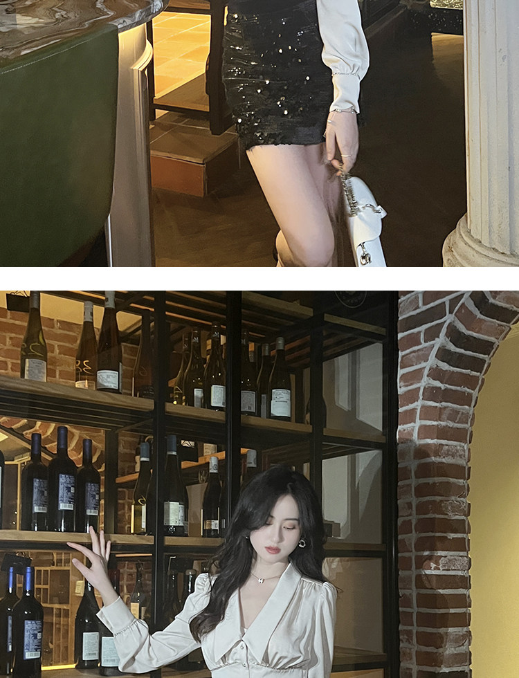 Hollin Long-Sleeved Acetate Satin Shirt for Women Spring & Fall 2025 New Design Niche V Neck Short Shirt