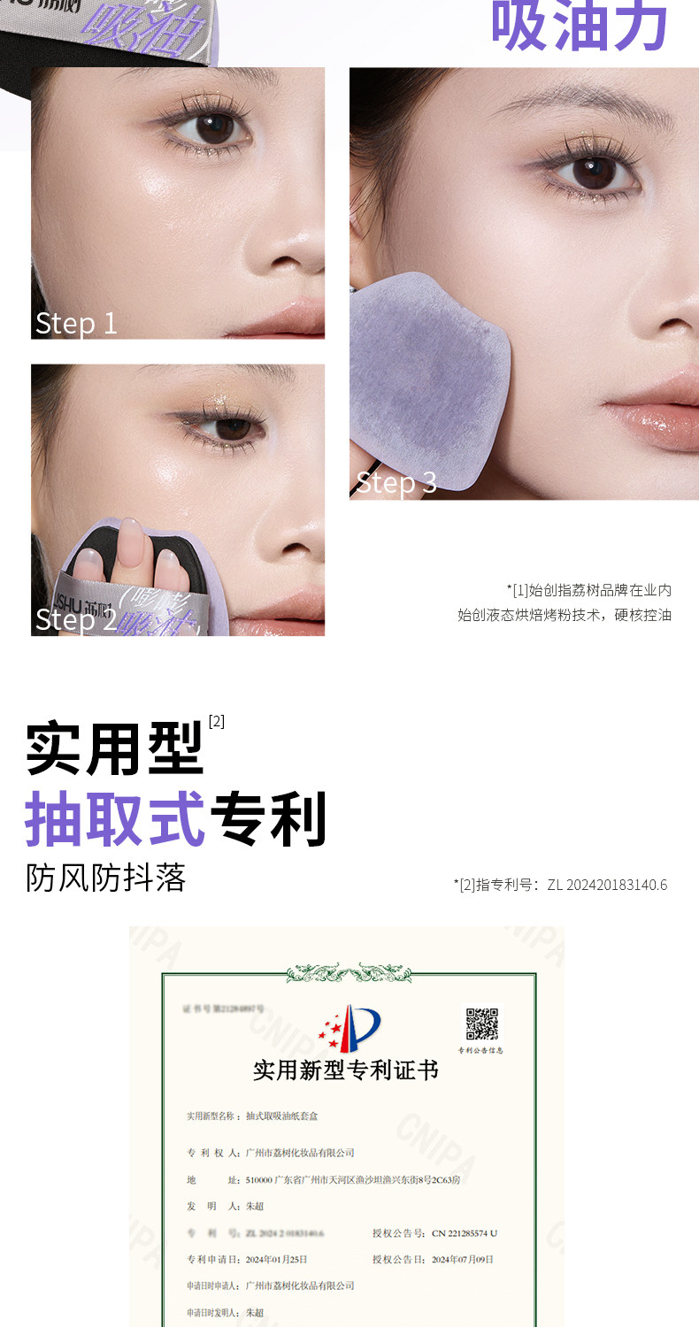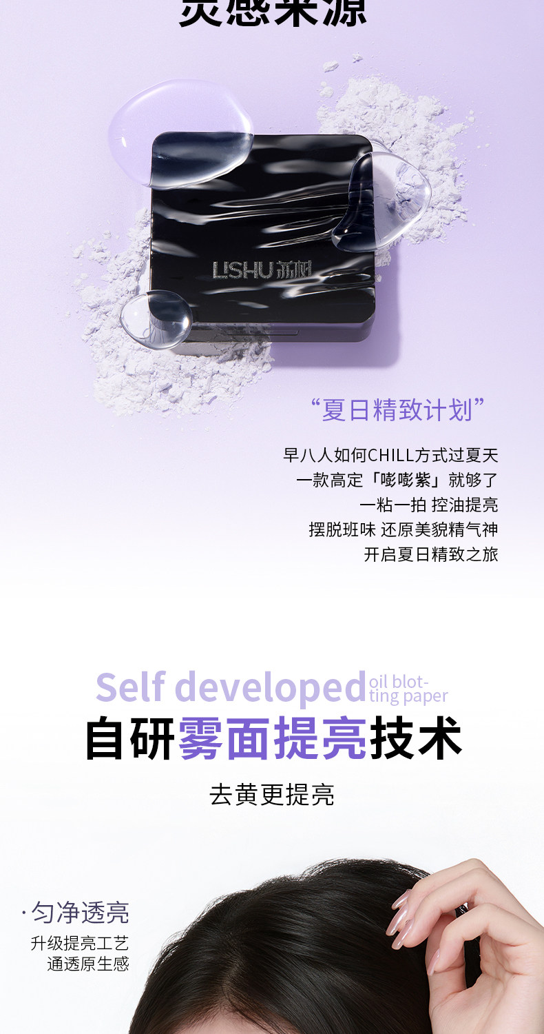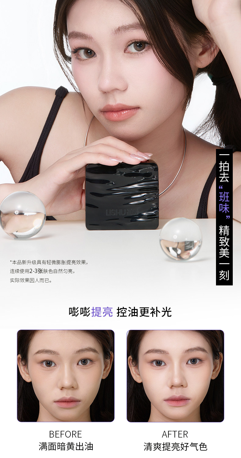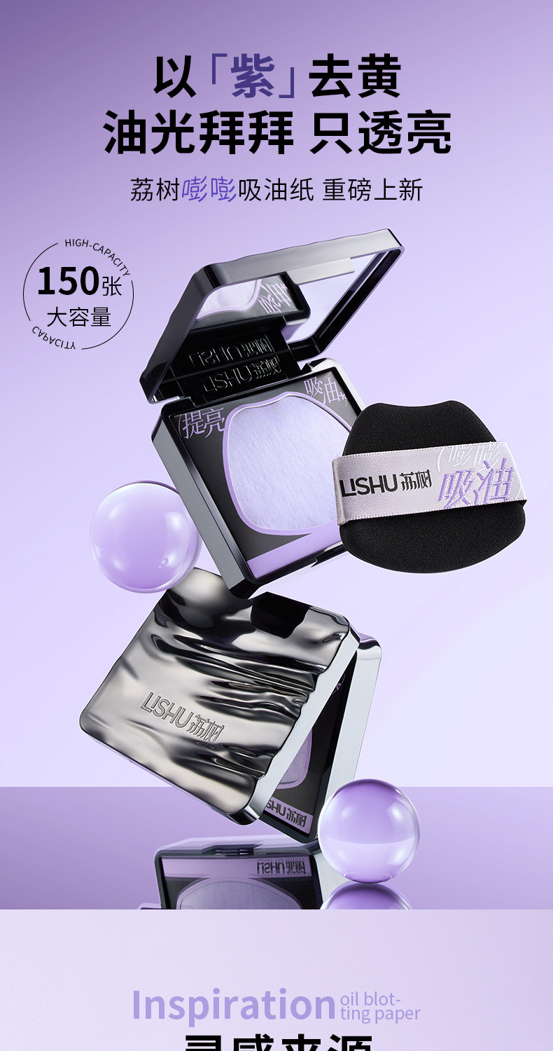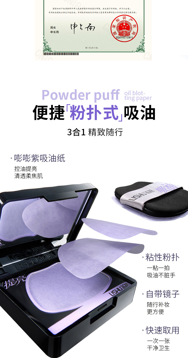 Good News for Oil Fields! Lishu Bangbang Purple Powder Puff-Style Oil-Absorbing Paper for Facial Oil Control and Brightening with Mirror for Touch-Up Makeup