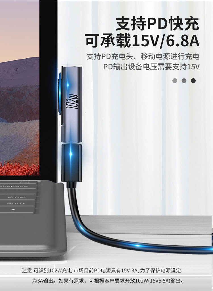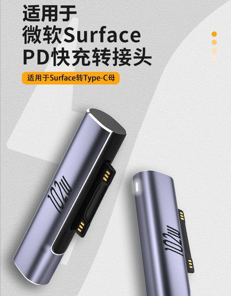 Suitable for Microsoft Surface Adapter Go Notebook 9 Charging Cable 8 Magnetic Suction 3 Fast Charge 6 Interface 5 Conversion Head 7Pd Charger Tablet Pro4 Computer 2 to Typec Power Cable Data Cable
