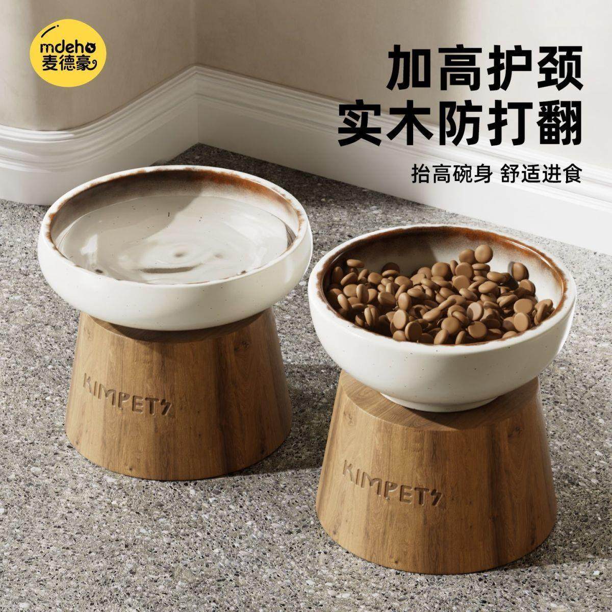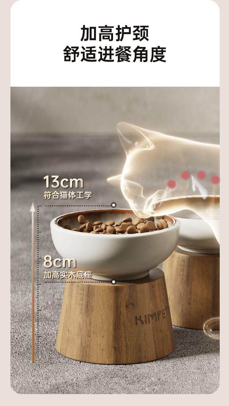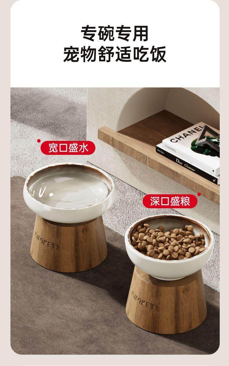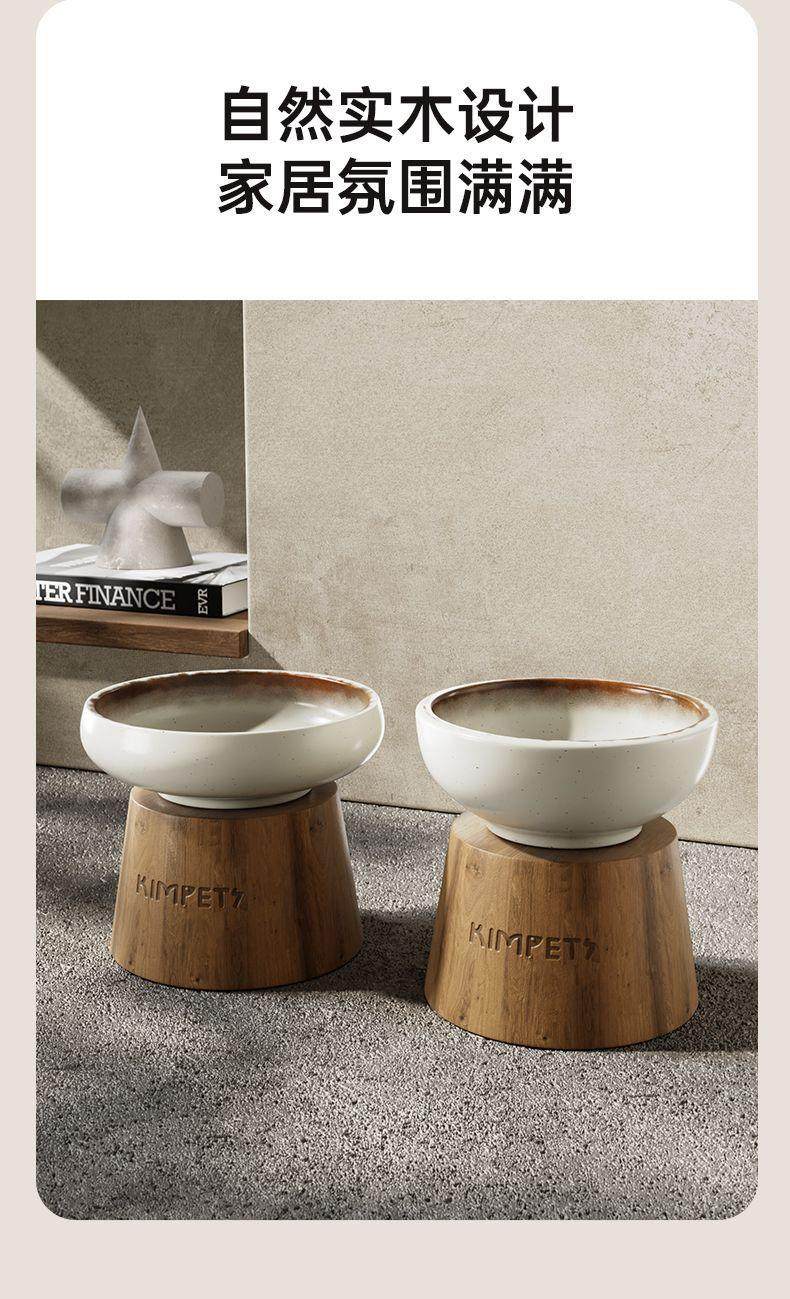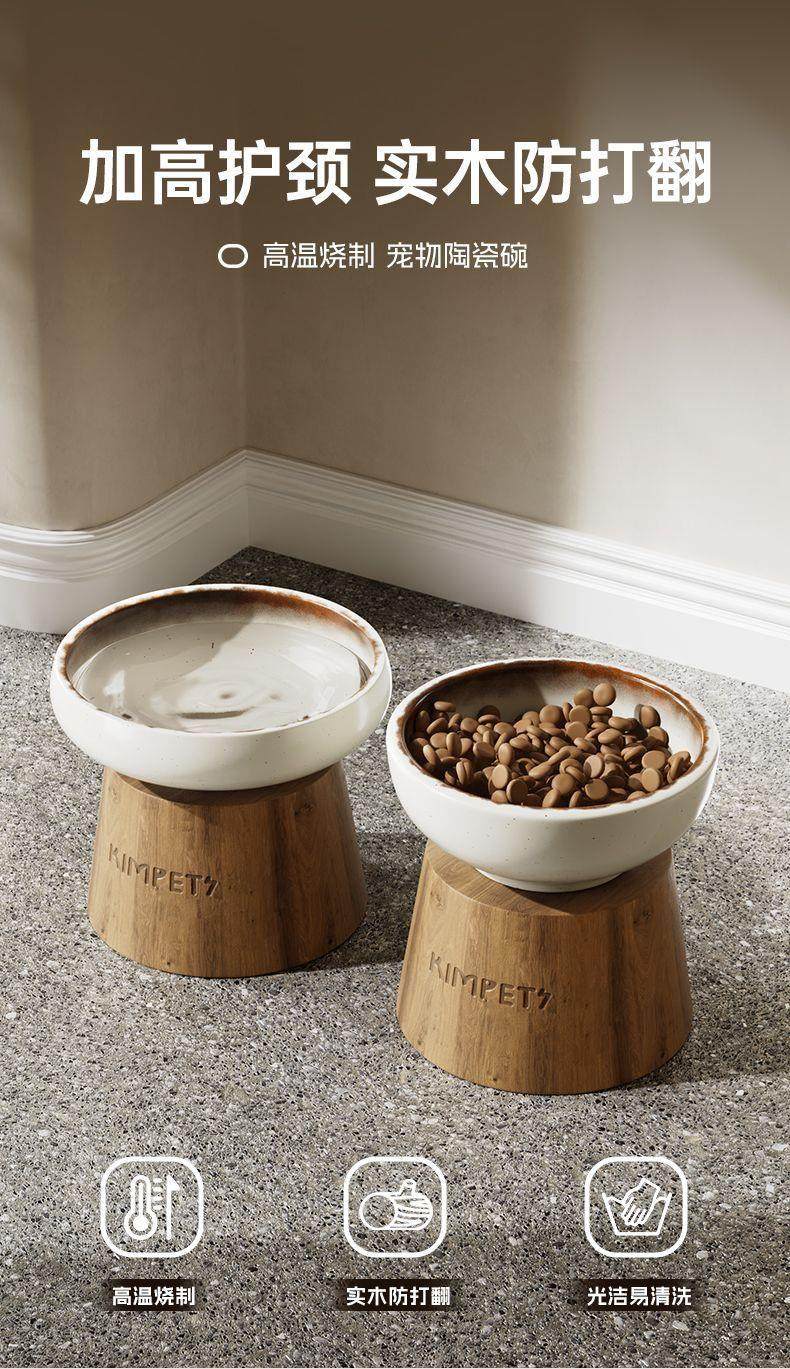 Cat Bowl, Ceramic Cat Food Bowl, Ceramic Bowl with Accessories, Solid Wood Elevated Cat Food Bowl, Dog Bowl, Cat Water Bowl, Pet Bowl
