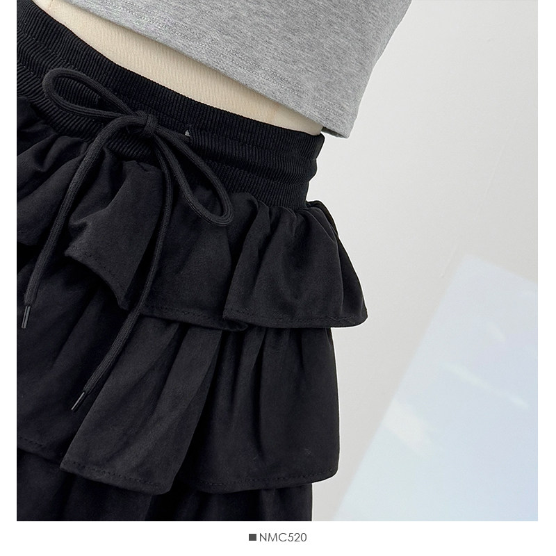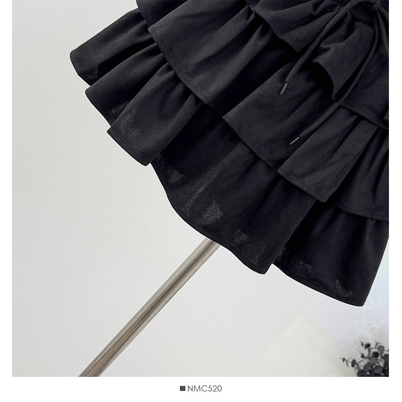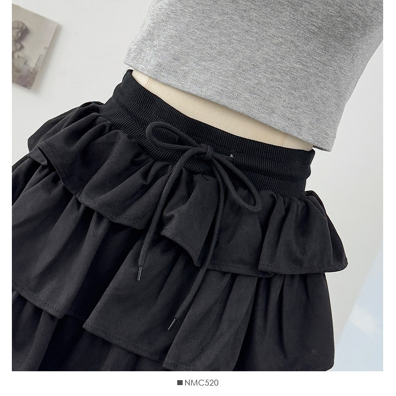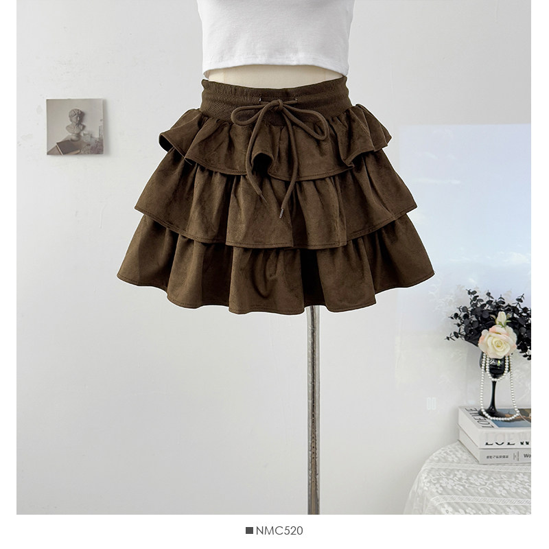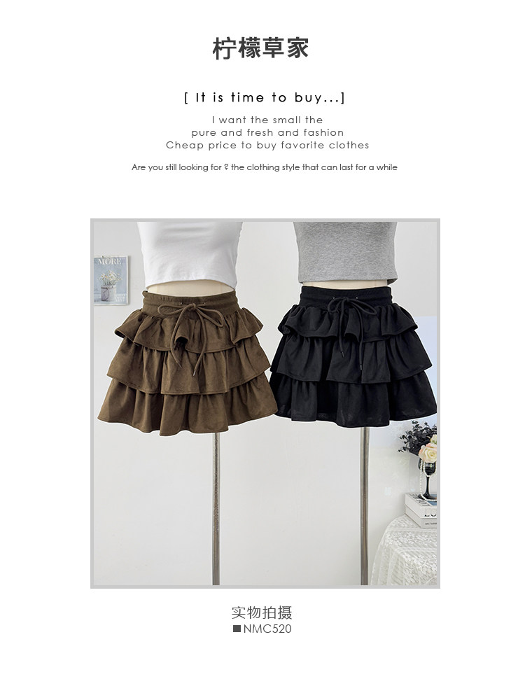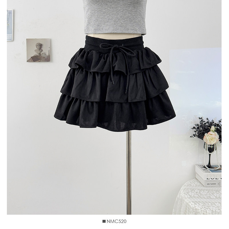 French style ruffled drawstring lace-up puffy skirt summer 2025 hot girl pleated A-line tiered cake skirt