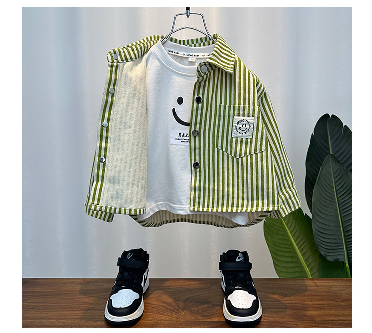 French Boys' Shirt Jacket Long-Sleeved Autumn Clothing 2025 New Spring & Fall Handsome Shirt Kidsren's Clothing Boy's Top