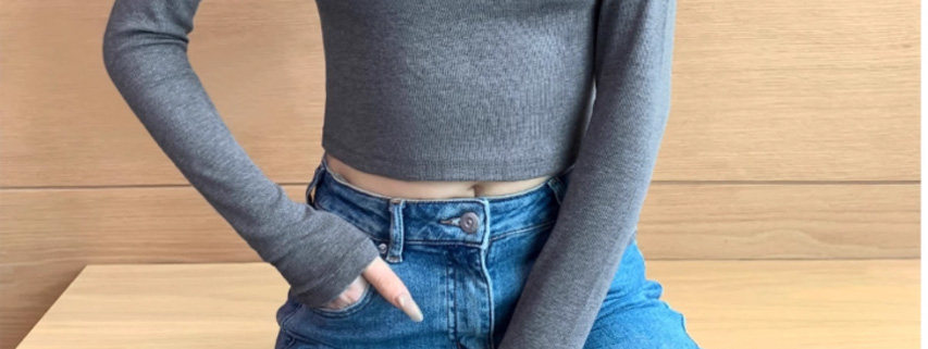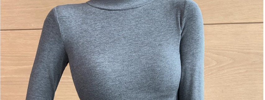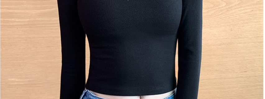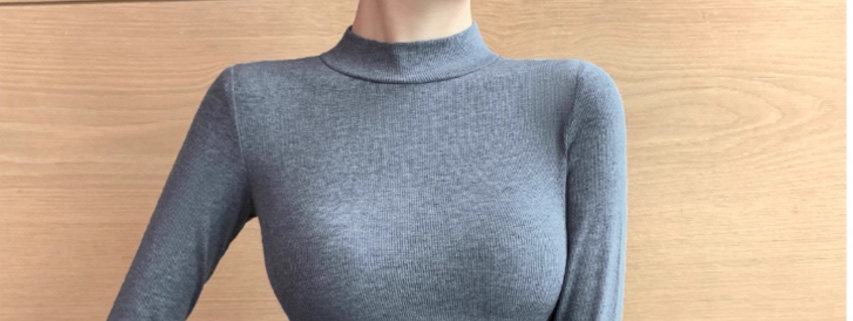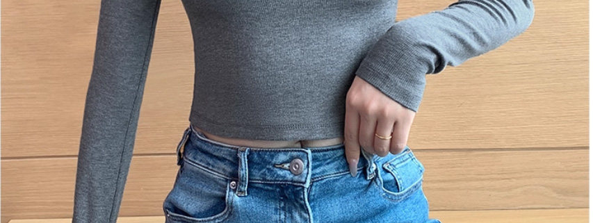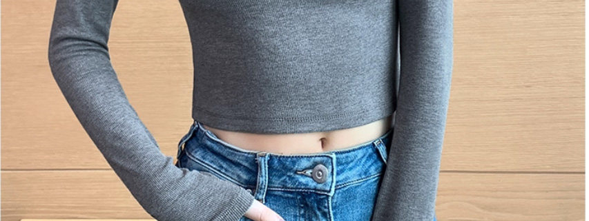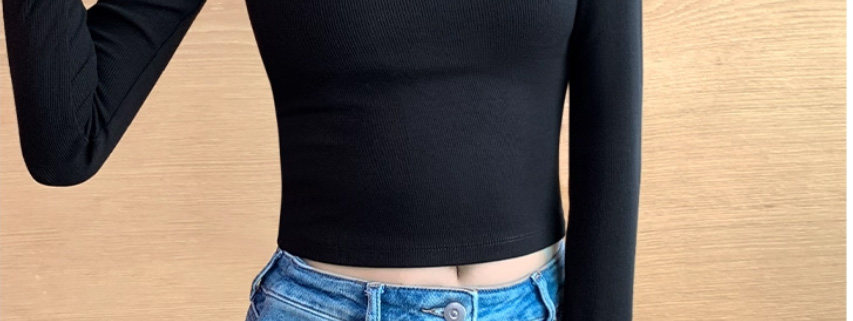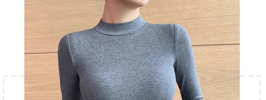 Threaded Half-High Collar Long-Sleeve T-Shirt for Women, New Spring and Autumn Style, Slim Fit, Stylish, Versatile, Short Base Shirt Top, Trendy