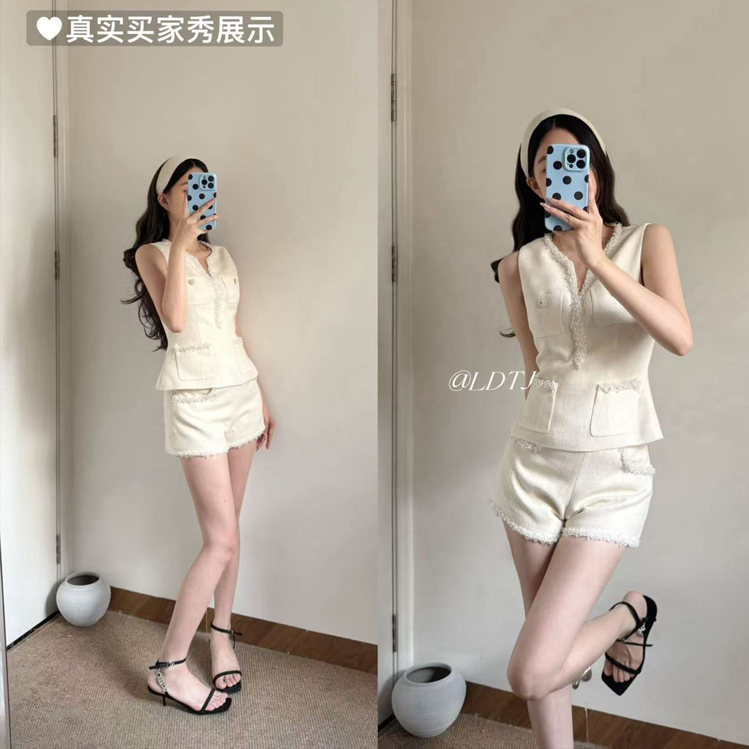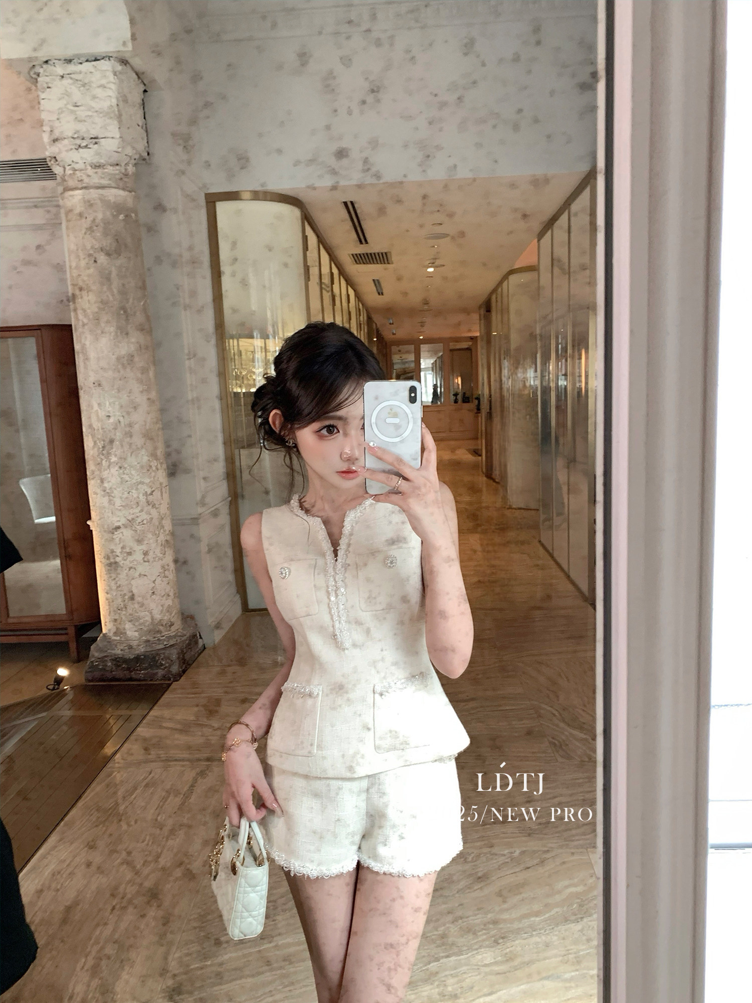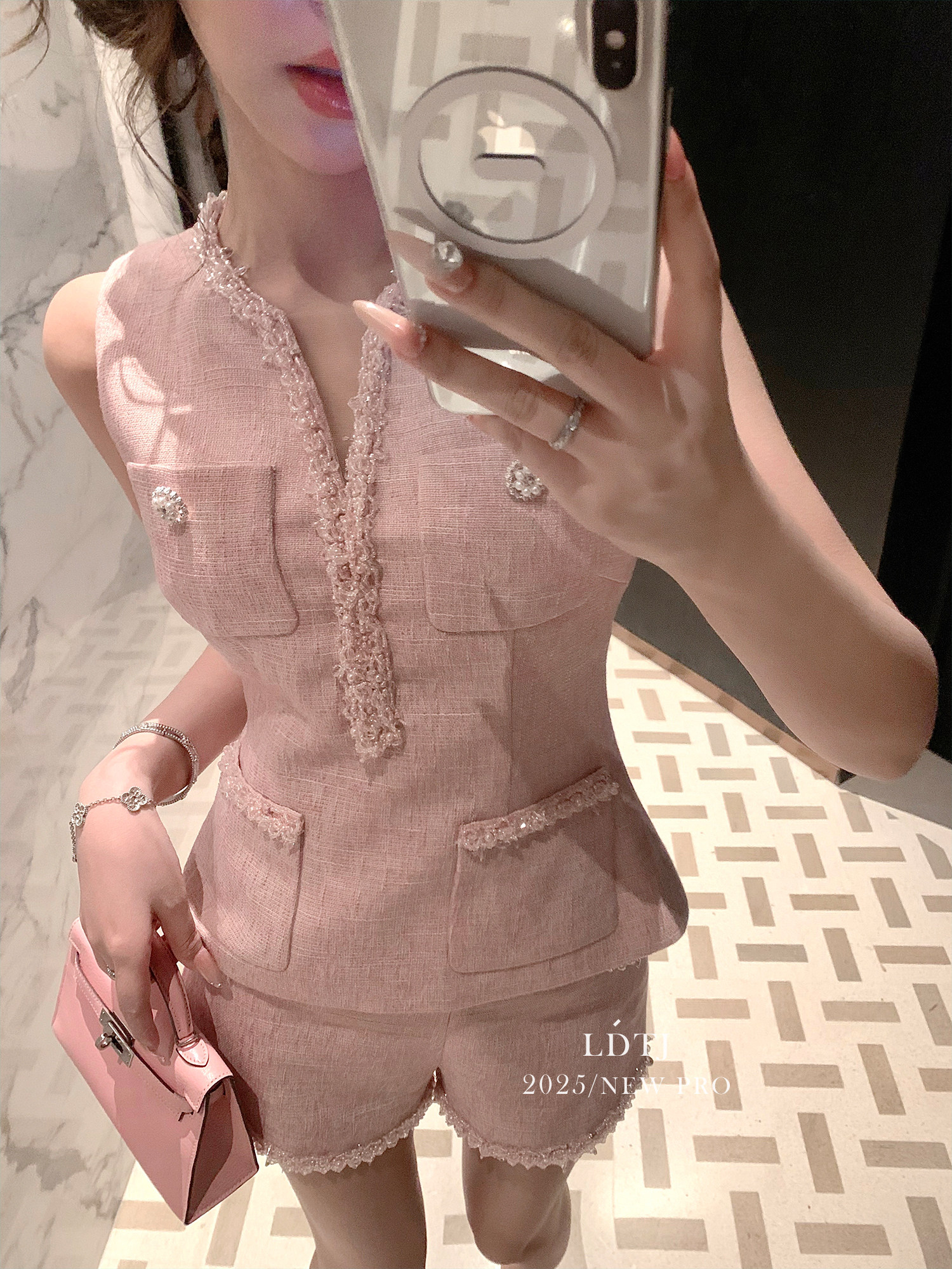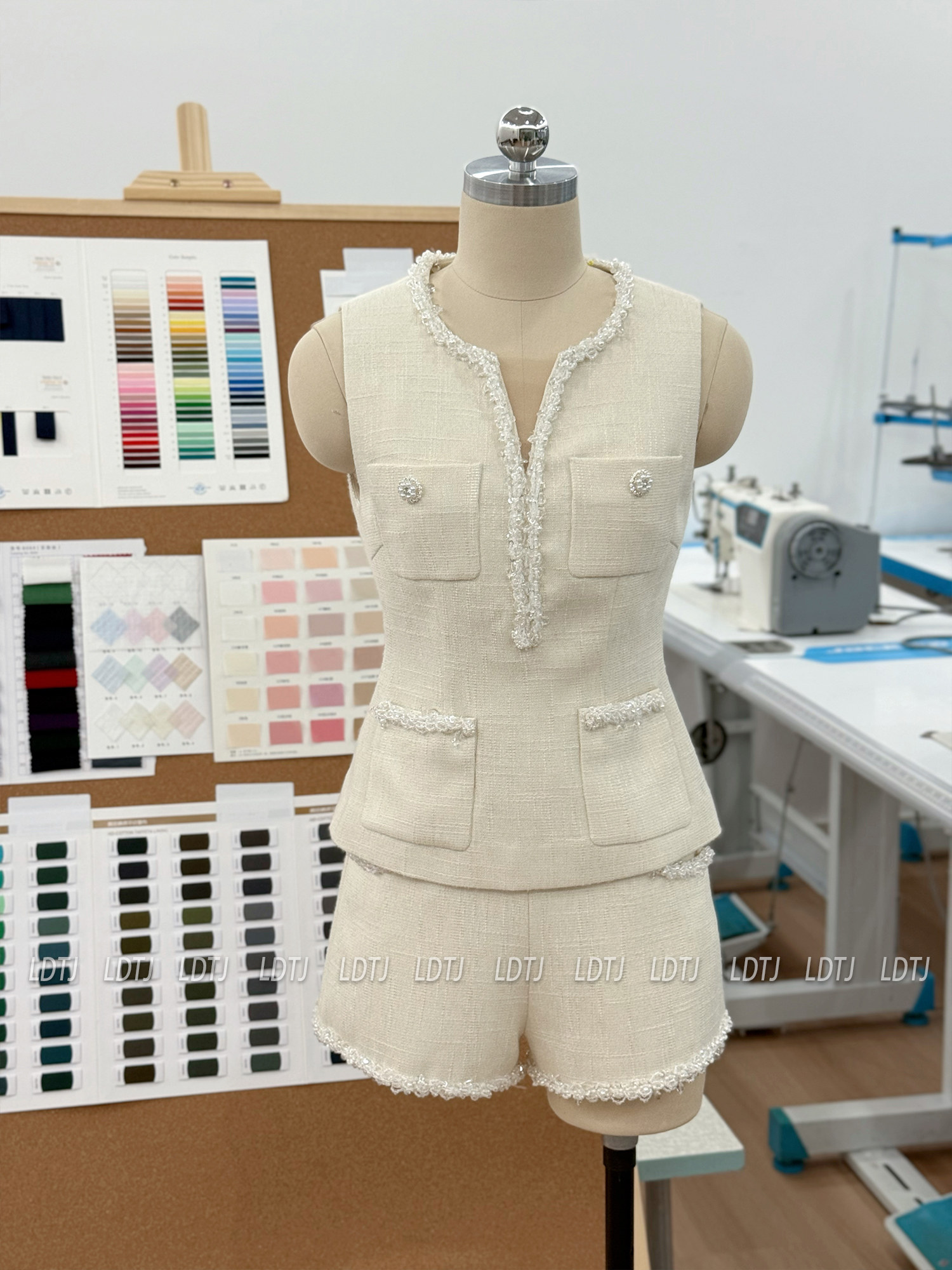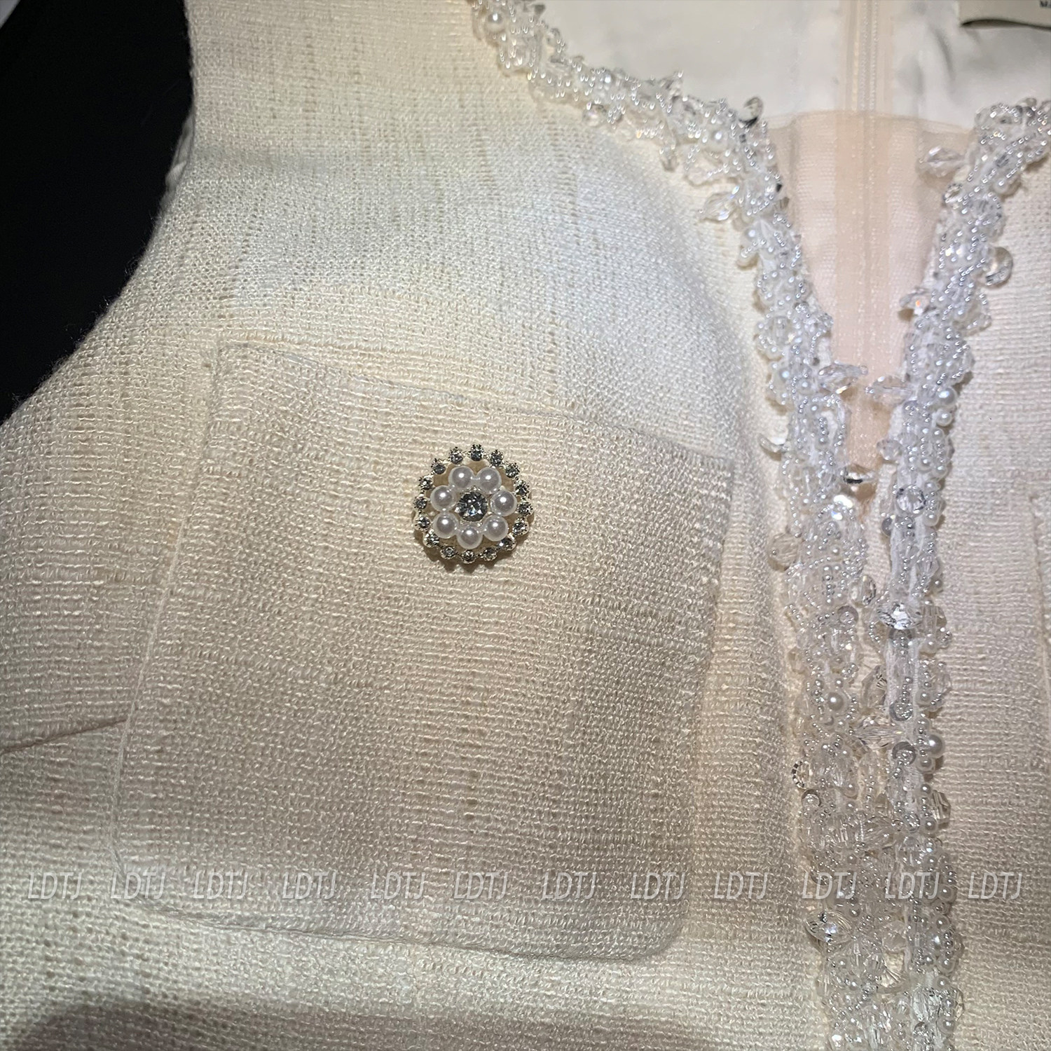 Ldtj Original [Jiangnan Noble Lady] Autumn Style Little Chanel Handmade Beaded Embroidery Sleeveless Top and Shorts Set