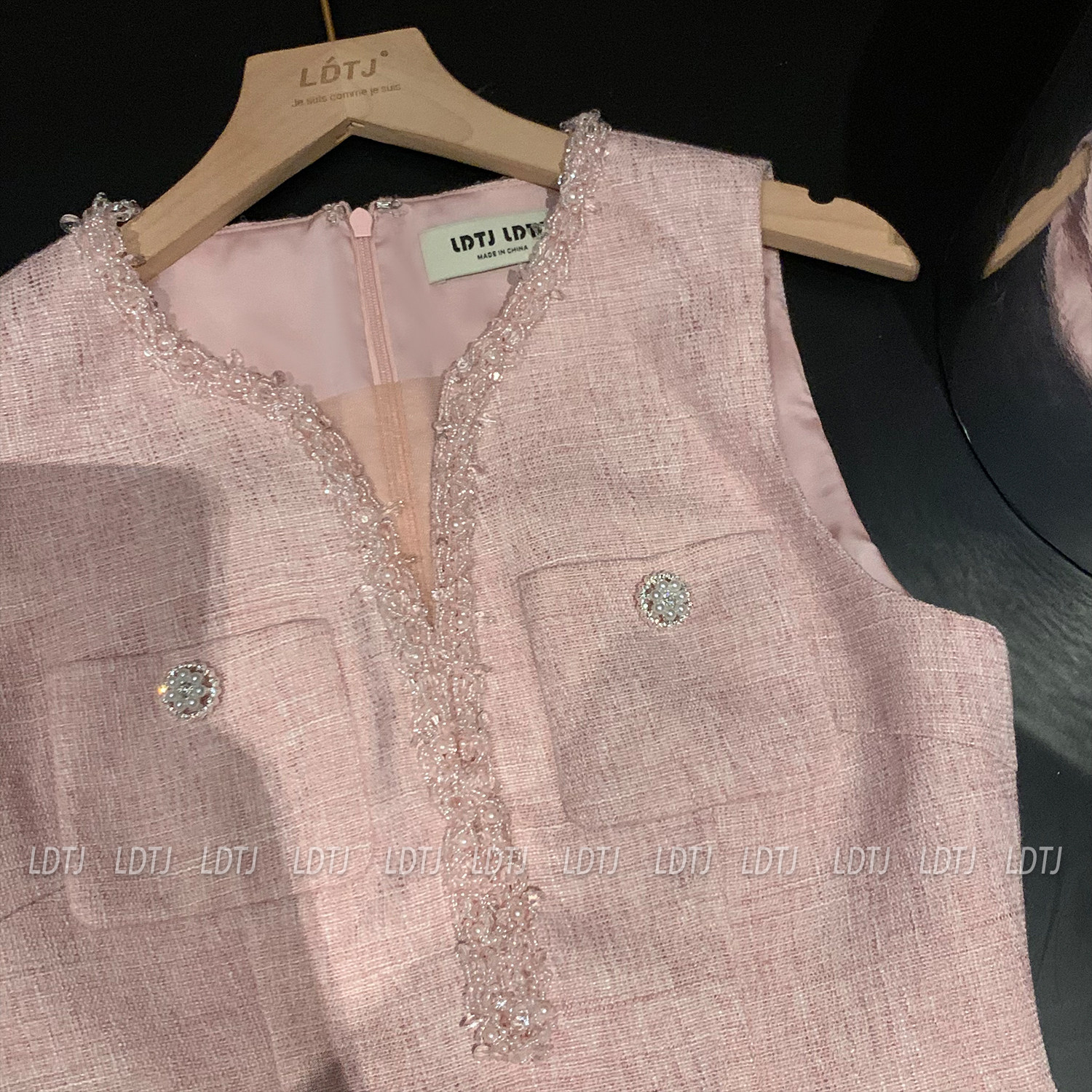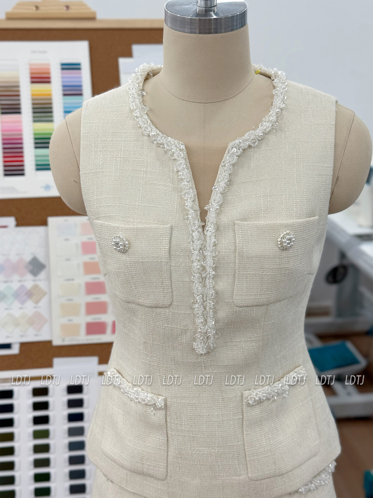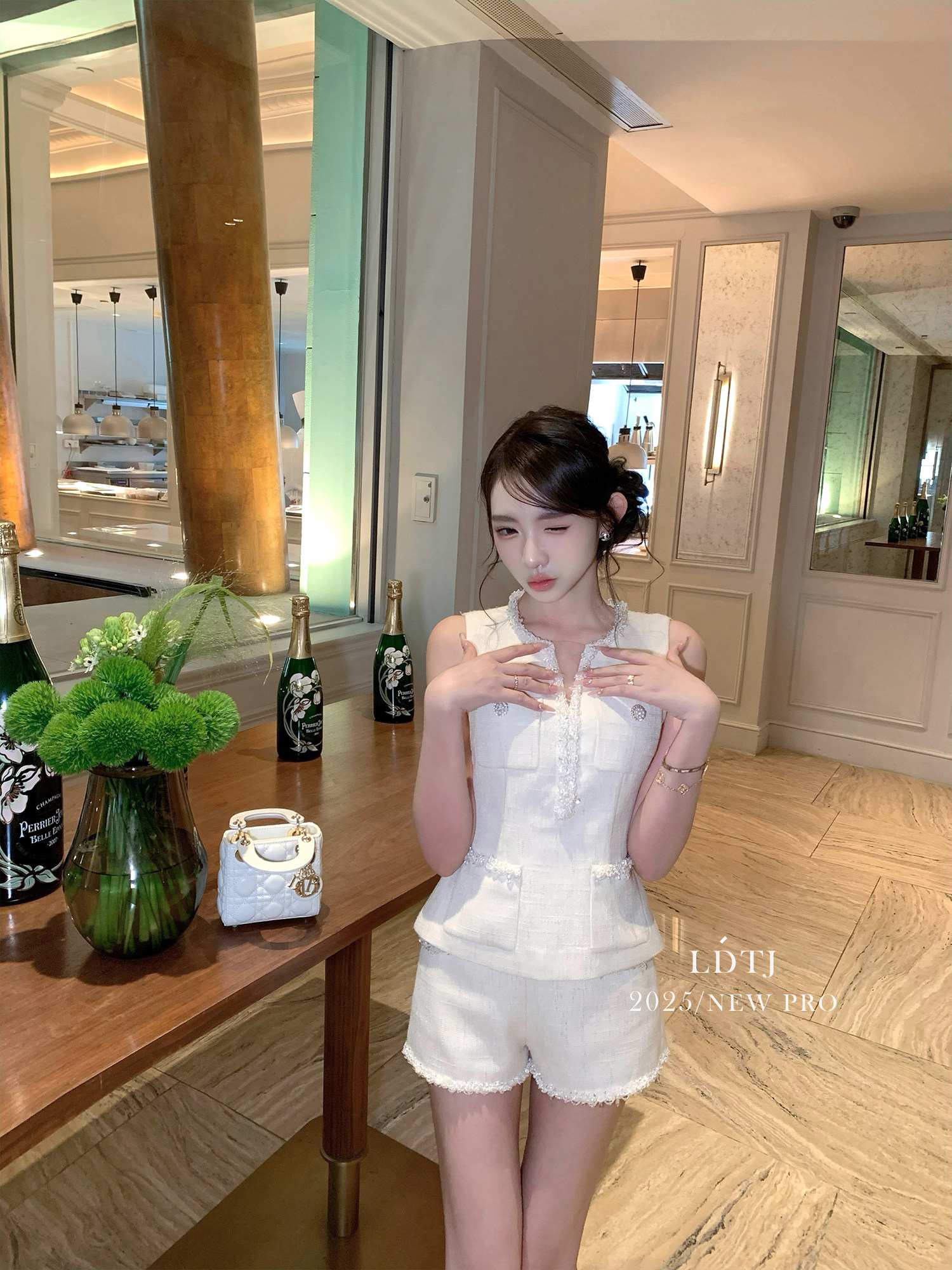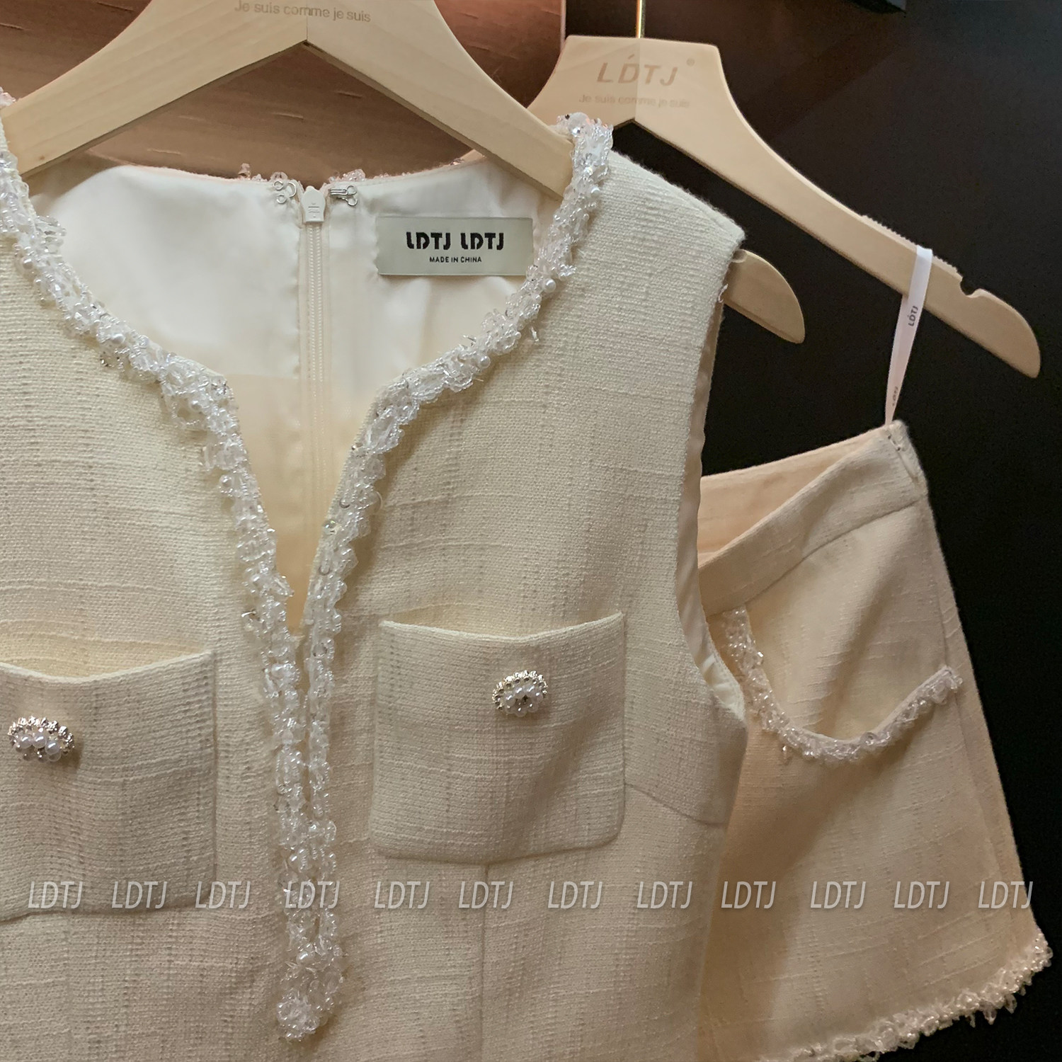 Ldtj Original [Jiangnan Noble Lady] Autumn Style Little Chanel Handmade Beaded Embroidery Sleeveless Top and Shorts Set