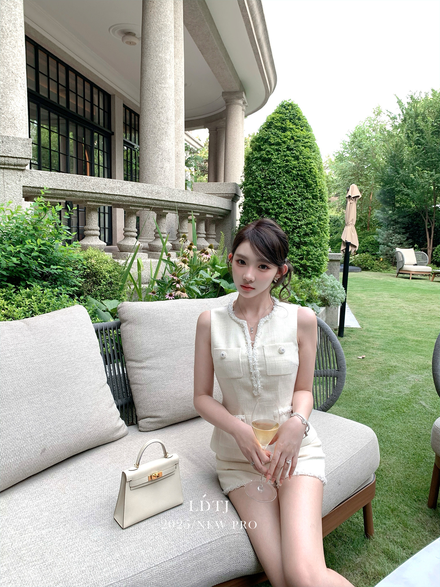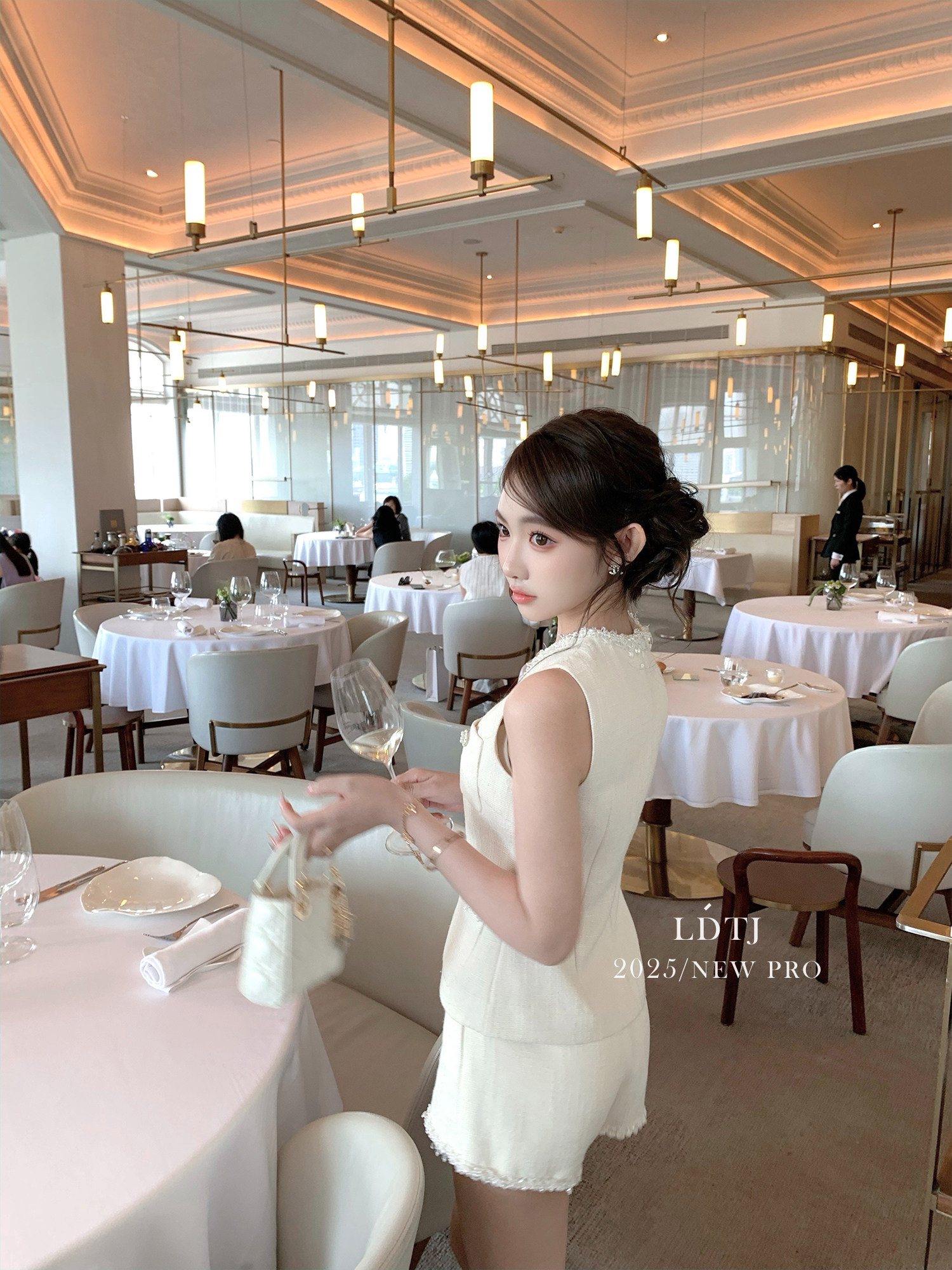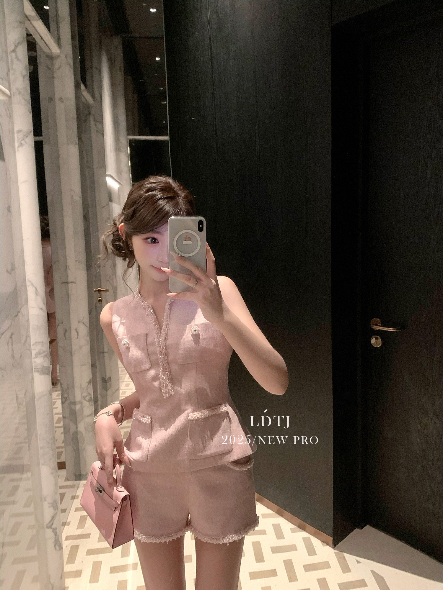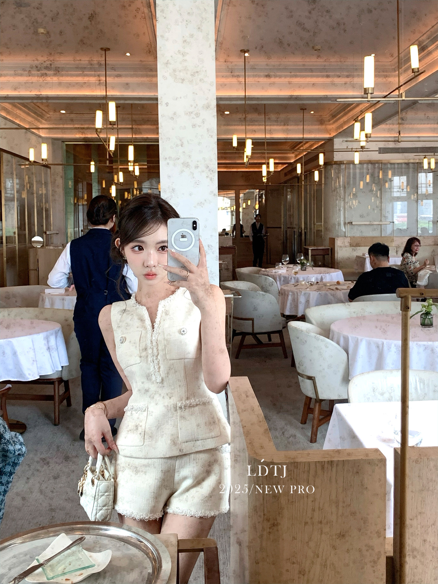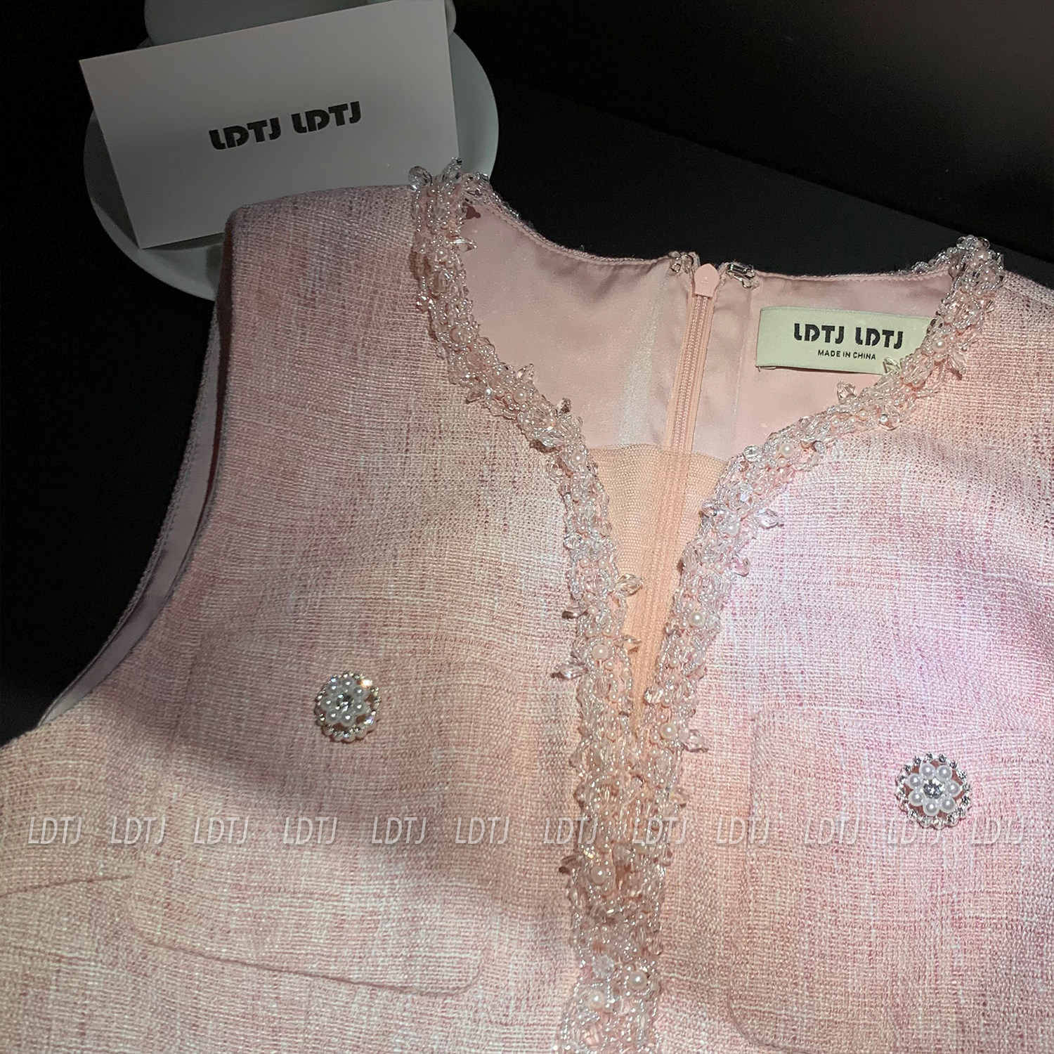 Ldtj Original [Jiangnan Noble Lady] Autumn Style Little Chanel Handmade Beaded Embroidery Sleeveless Top and Shorts Set