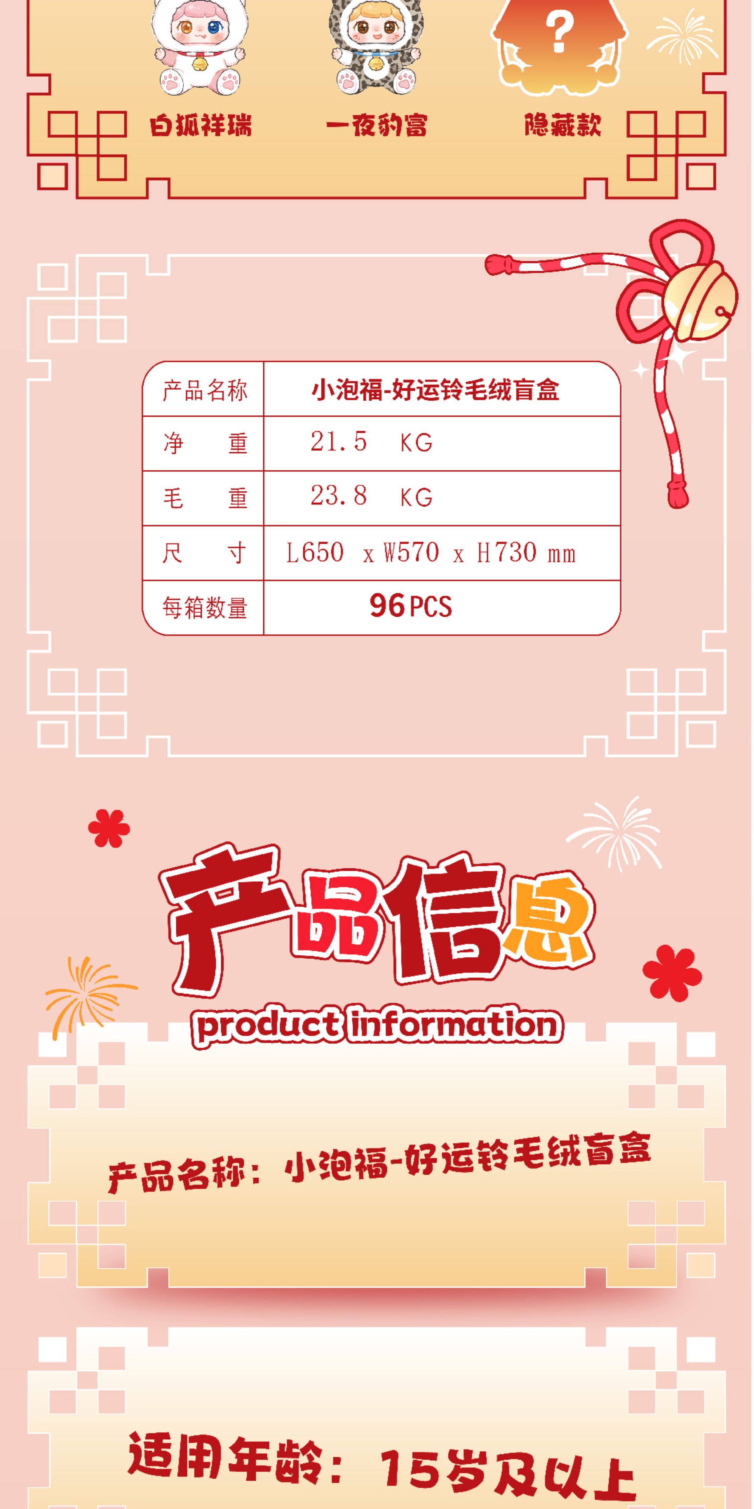 Baby Three 3-Year-Old Little Lucky Bell Vinyl Plush Blind Box Doll Pendant Gift for Girls