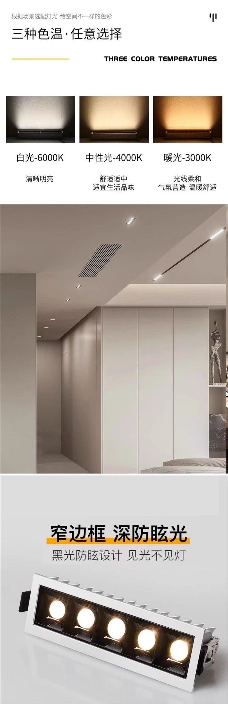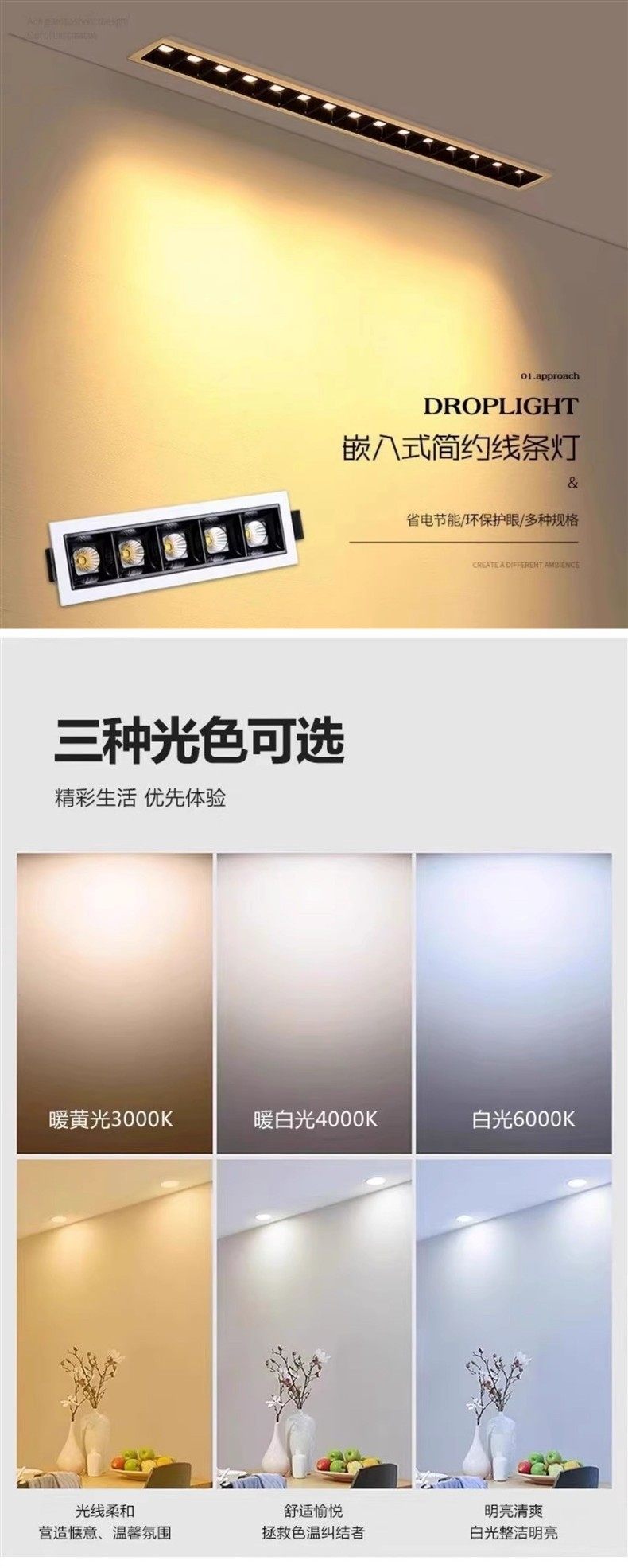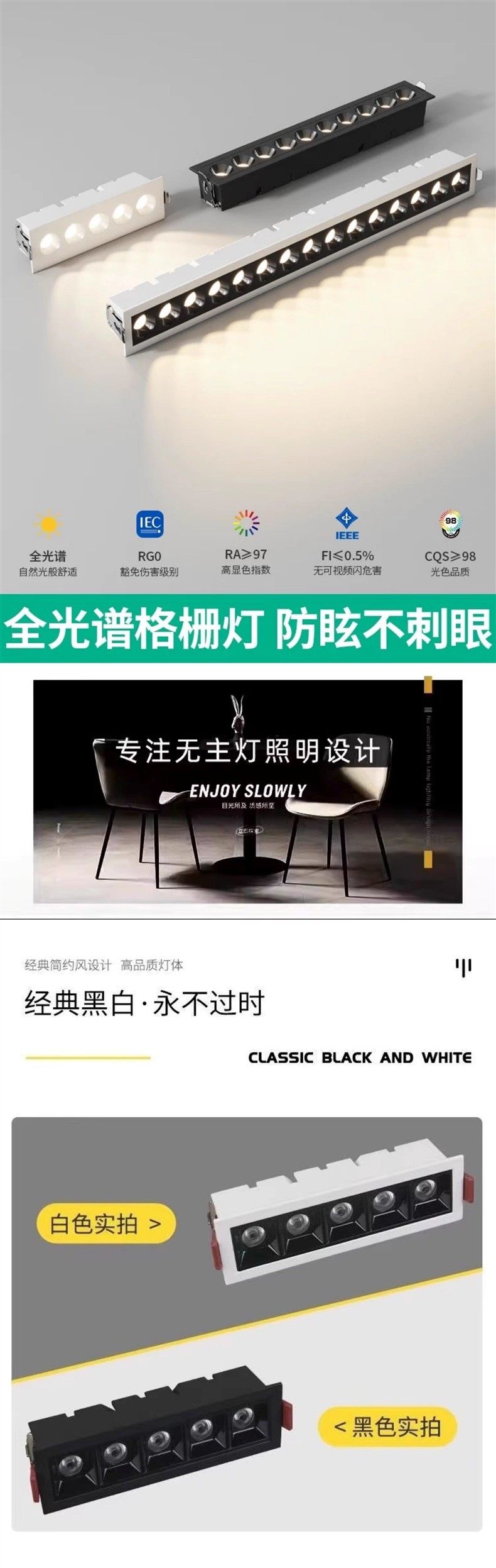 New Led Grille Light, Linear Light, Embedded Strip Spotlight, Office Conference Room Cob Spotlight, No Main Light Lighting