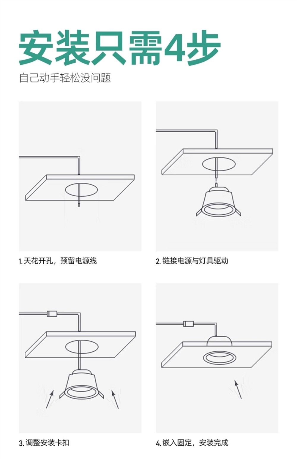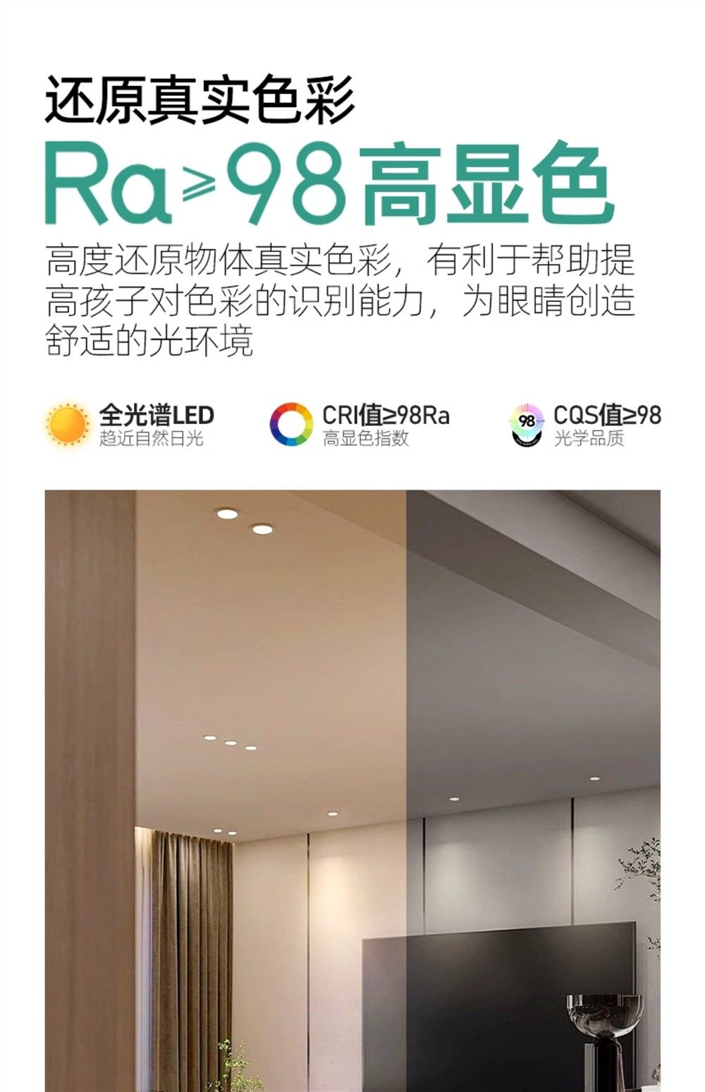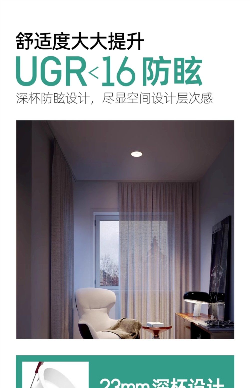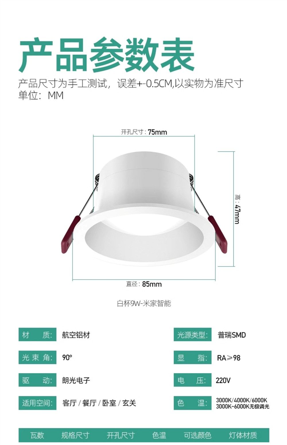 Minimalist Downlight with Deep Cup, Anti-Glare, Embedded 75mm, Antibacterial, Low Blue Light, Full Spectrum, Eye Protection, for Home Use in Living Room