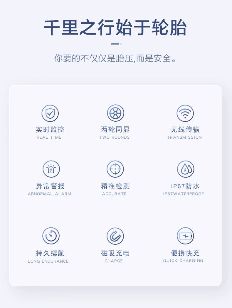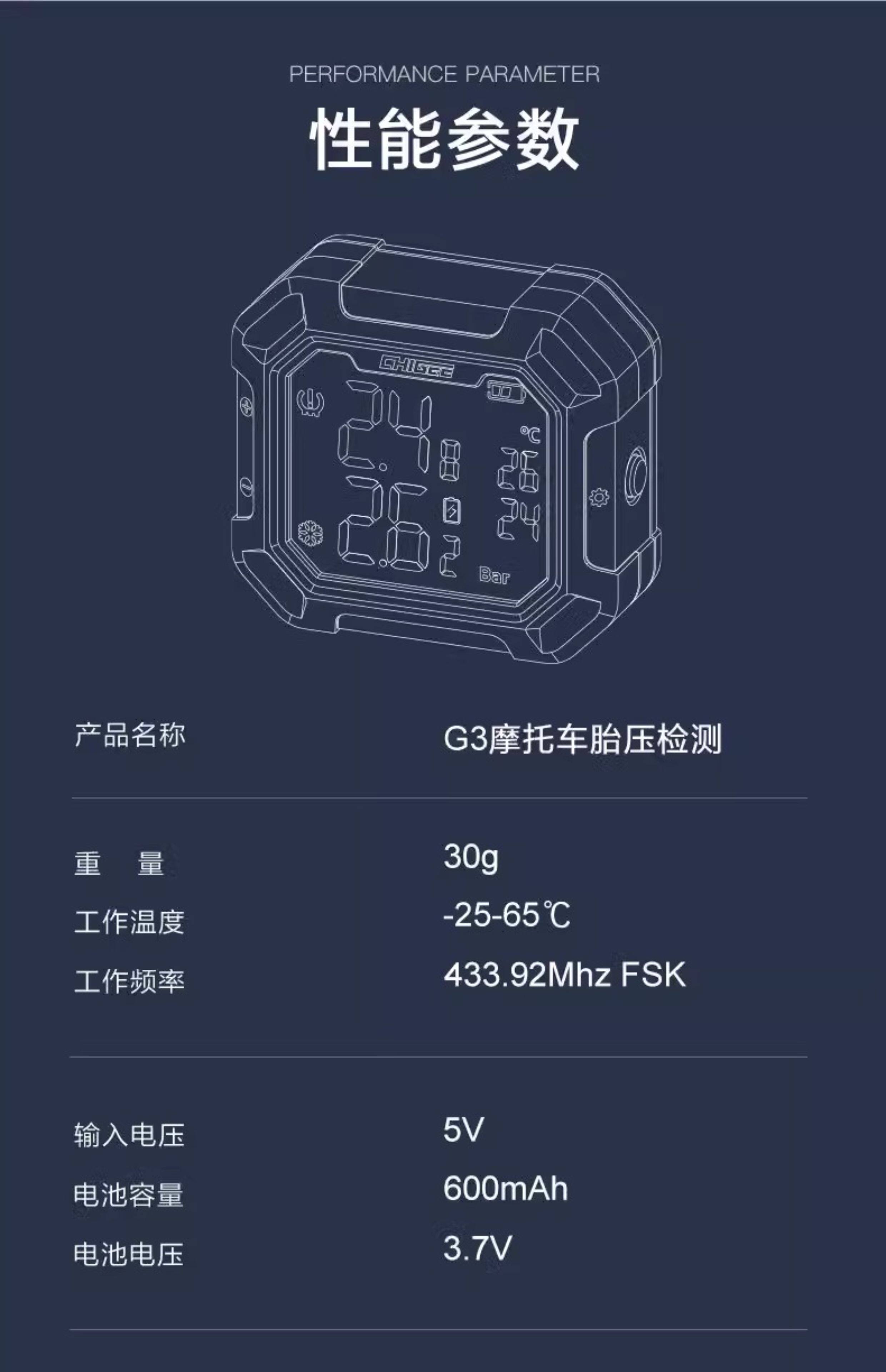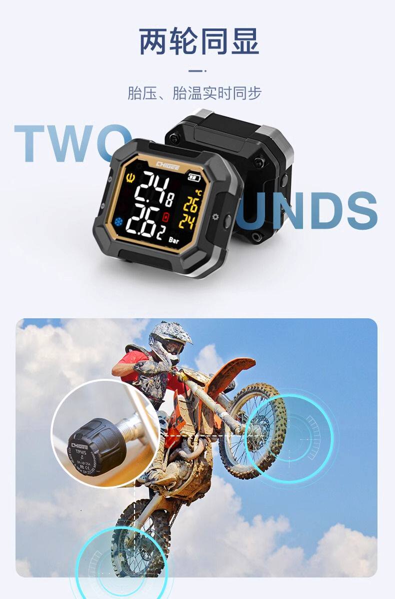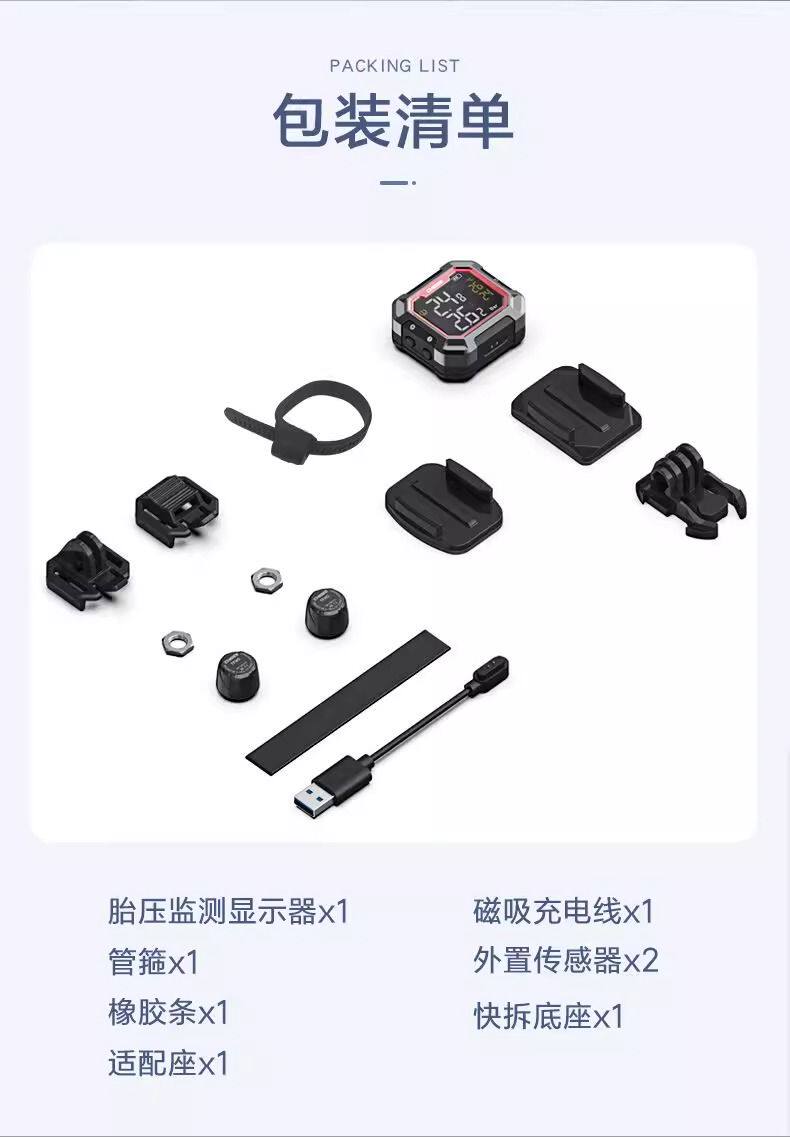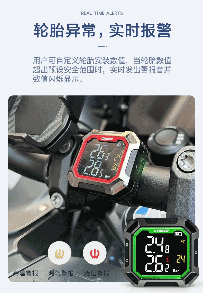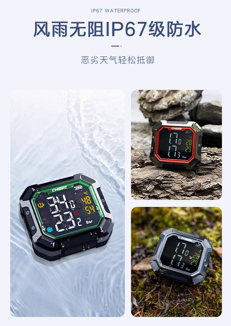 Motorcycle Tire Pressure Monitoring System Host Unit with Five-Color Built-In and External Sensors, Magnetic Charging Cable, and 3 Accessories