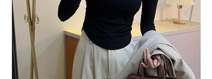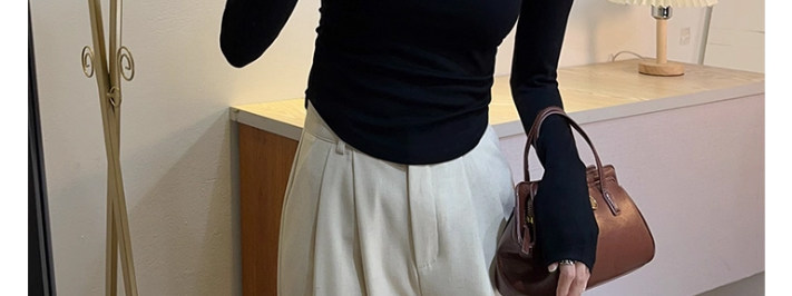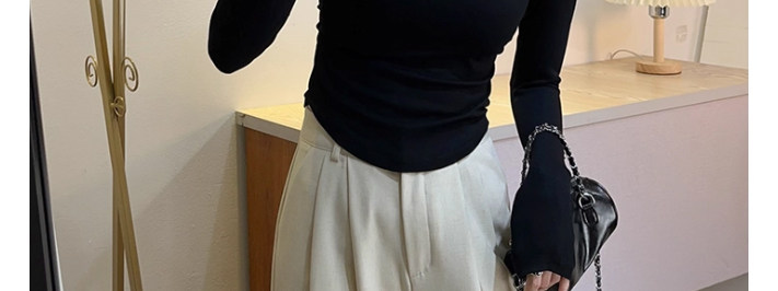 Half-High Collar Pleated Long-Sleeve T-Shirt for Women, New Spring and Autumn Korean Style, U-Shaped Hem, Slim Fit, Short Base Layer Top