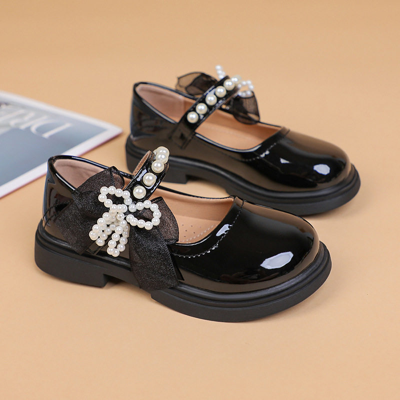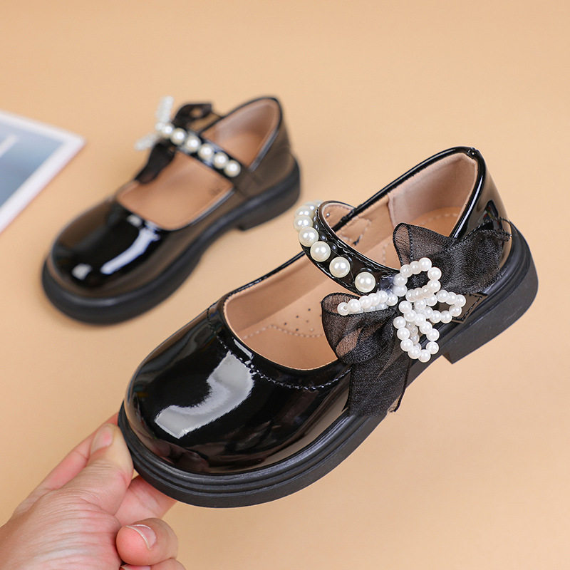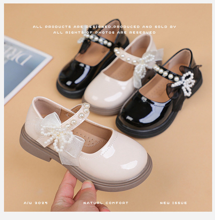 Girls' Small Leather Shoes 2025 Spring and Autumn New Black Mary Jane Princess Shoes for Older Children and Primary School Students Campus Performance Shoes