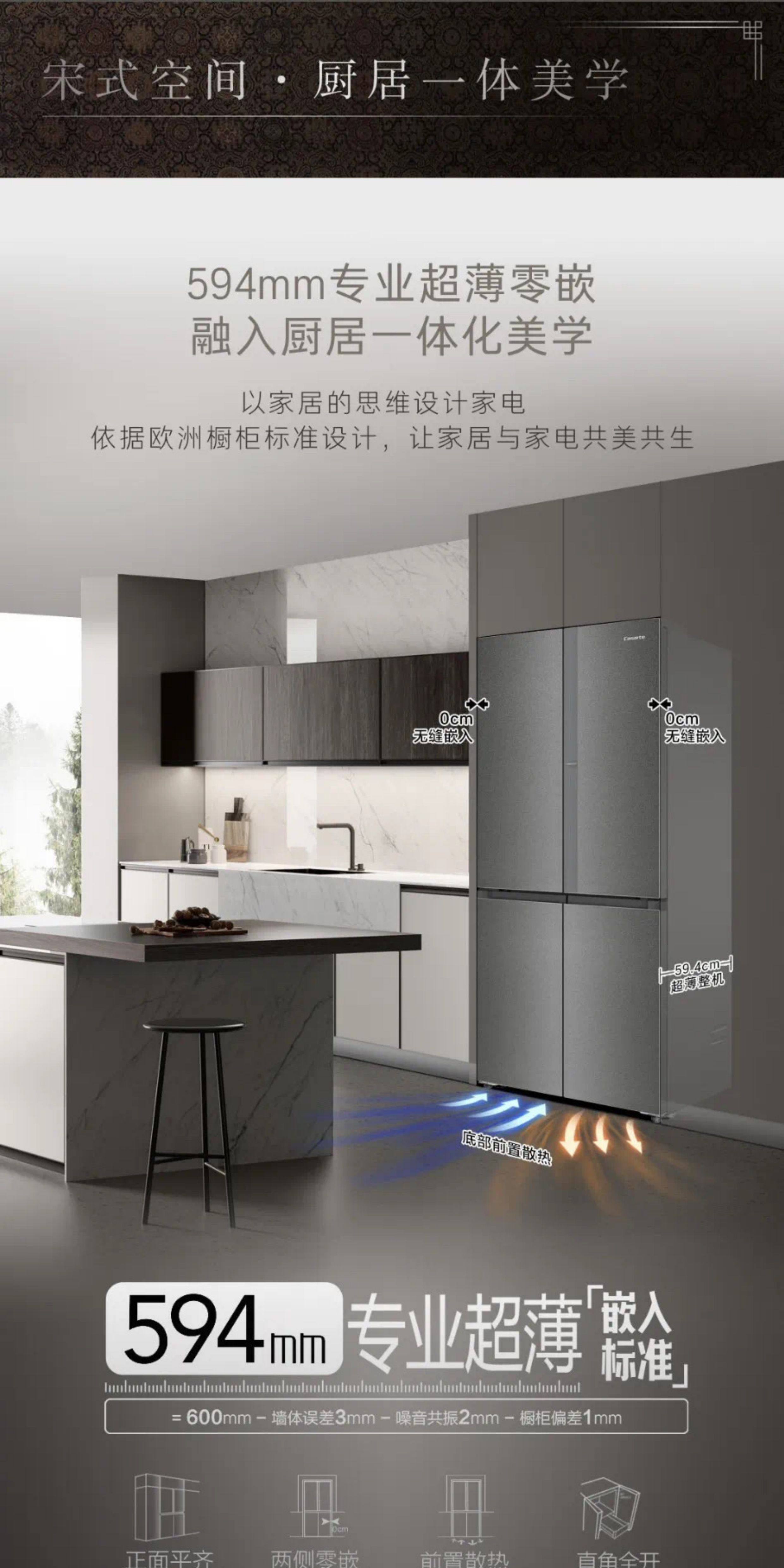 Casarte 519-liter flat-zero built-in refrigerator 519WGCTDM4DCU1 gray light and shadow white ultra-thin ice making 600mm
