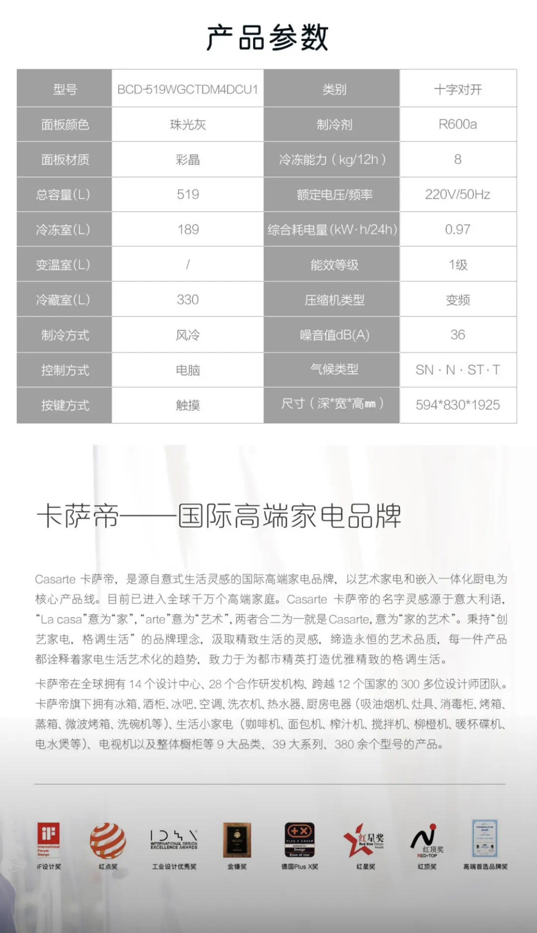 Refrigerator freezer brands Casarte/Casarte