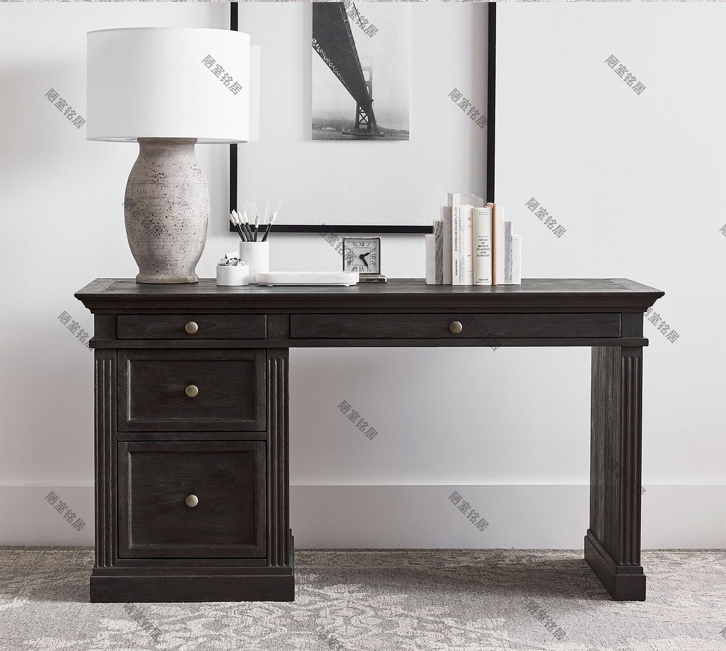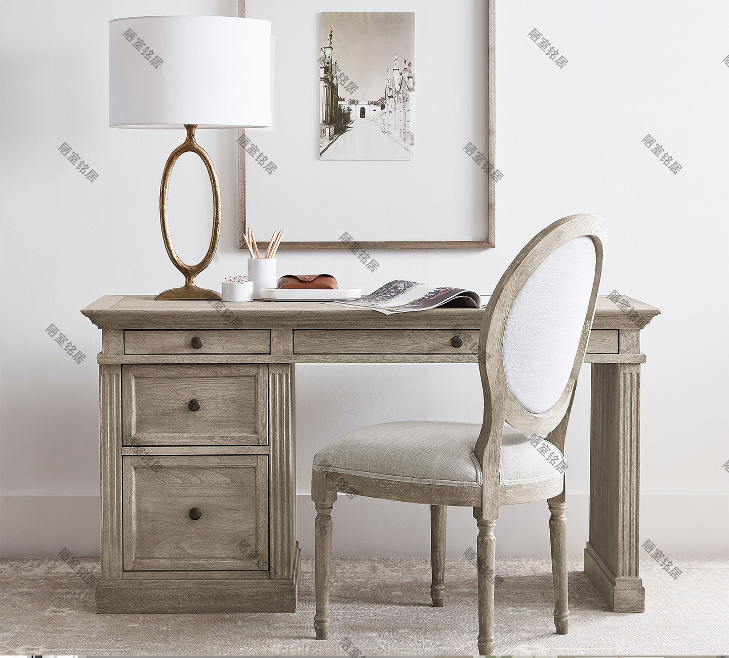 American country retro distressed solid wood desk French high-end oak computer desk simple writing desk office desk