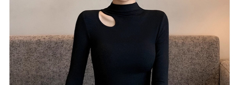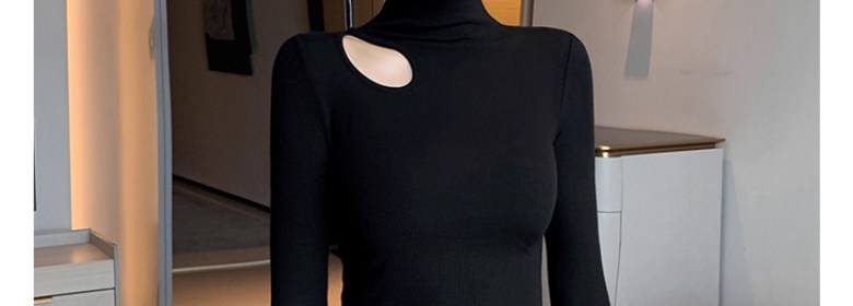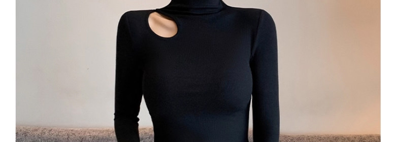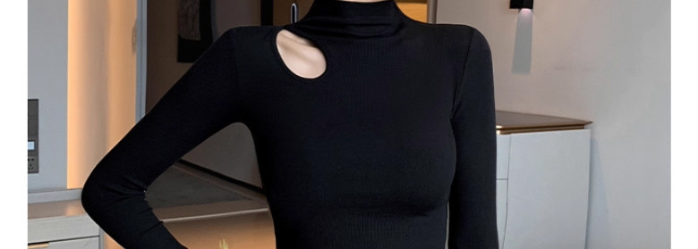 Half Turtleneck Long-Sleeved Bottoming Shirt for Women in Autumn and Winter New Style Threaded High-Bottom Cut Out Slim Fit Inner T-Shirt Top