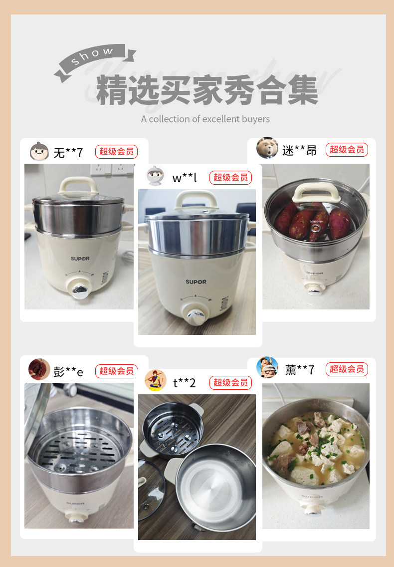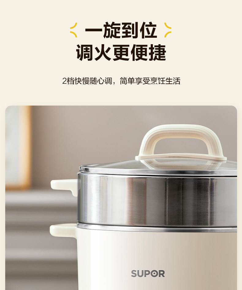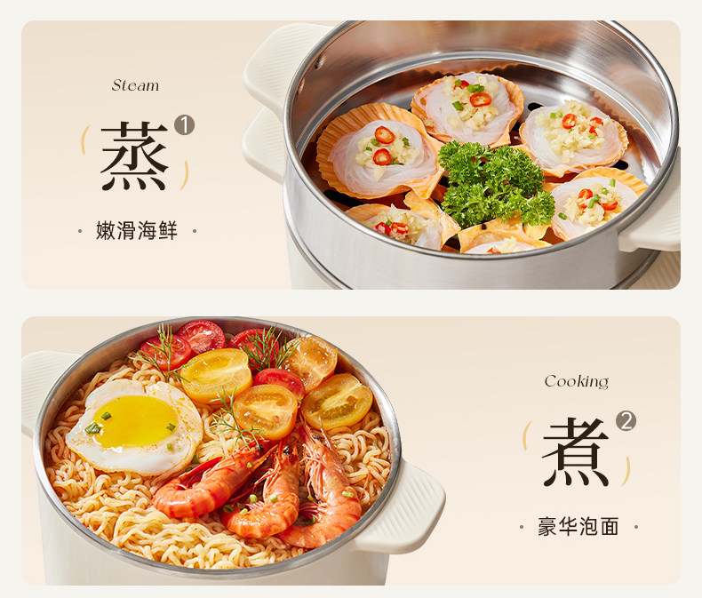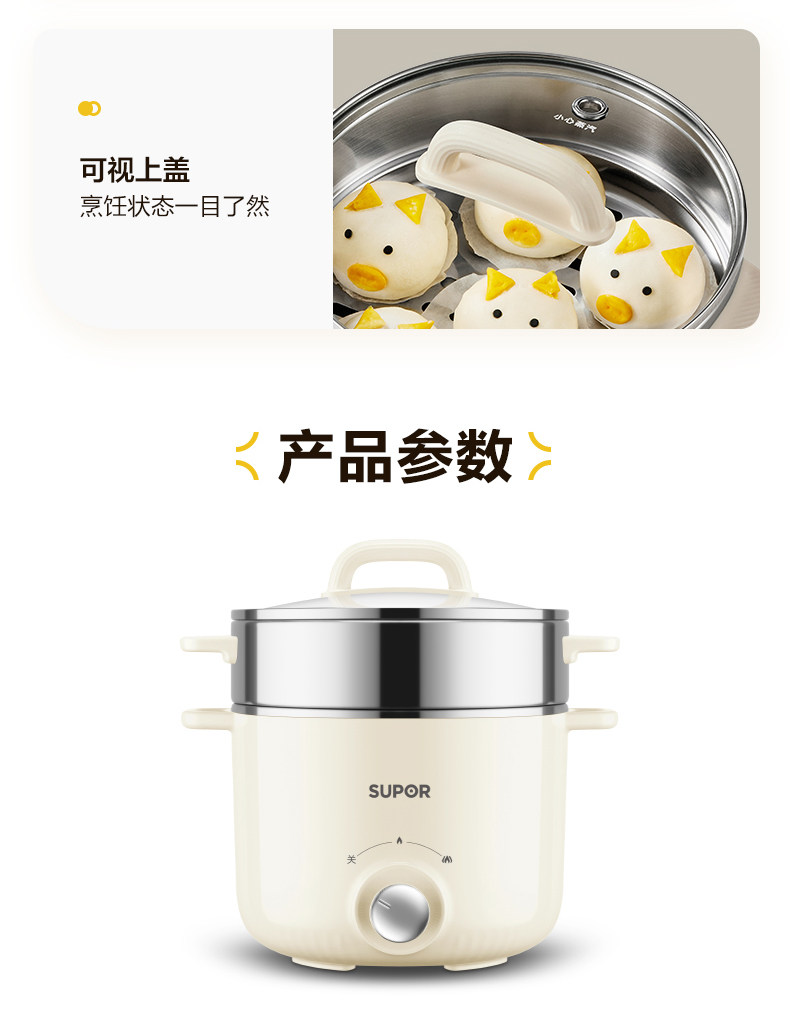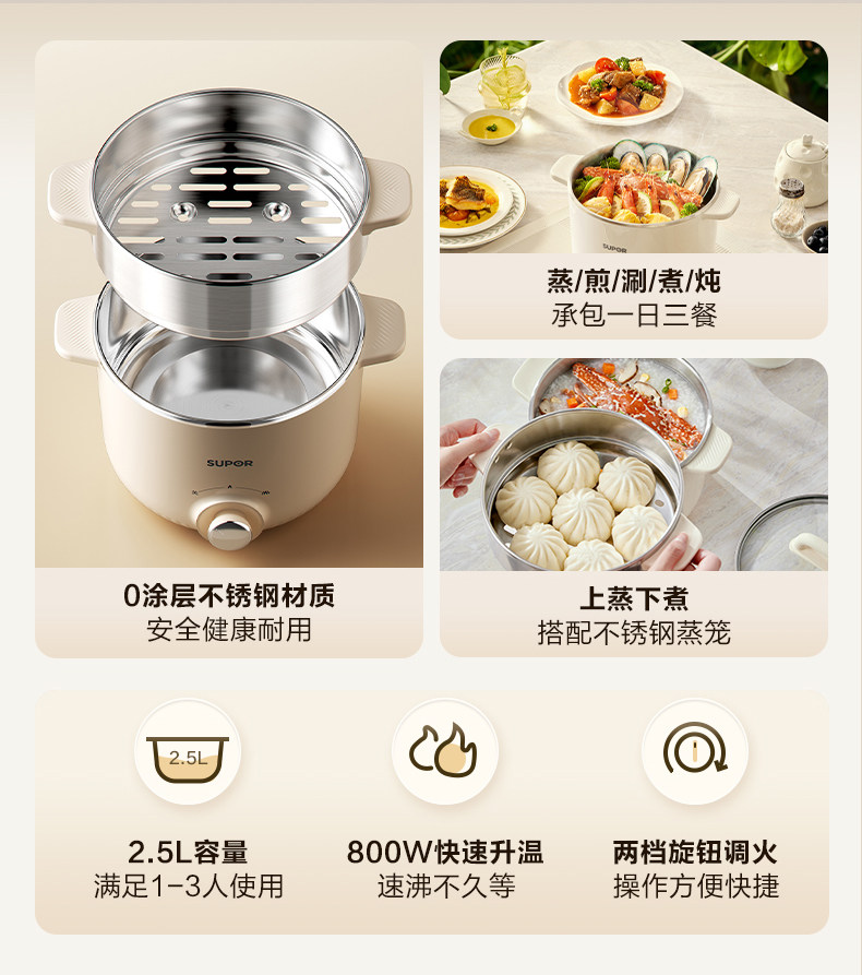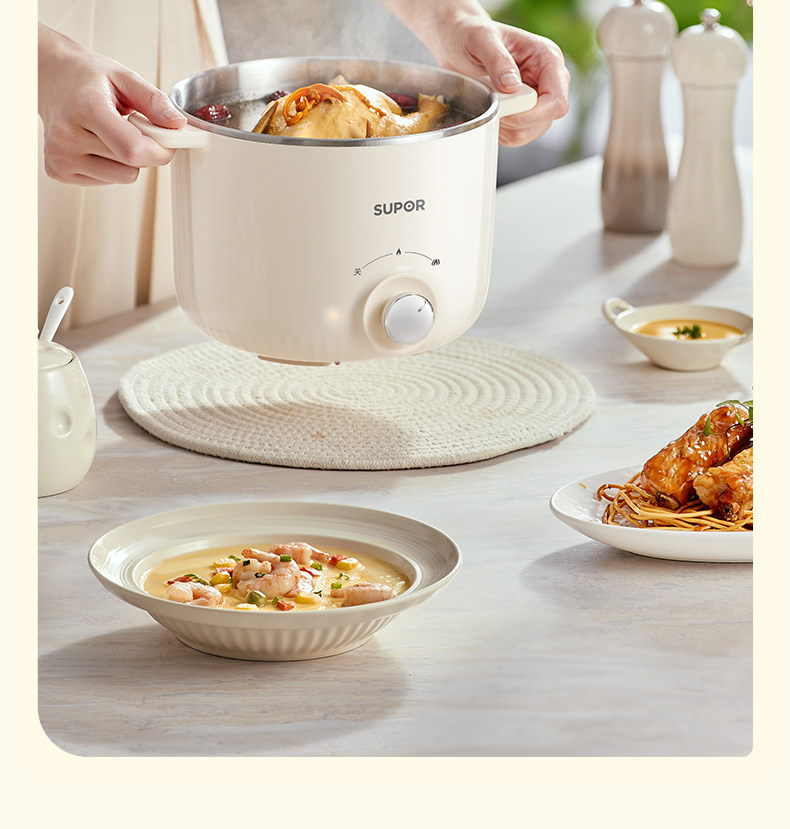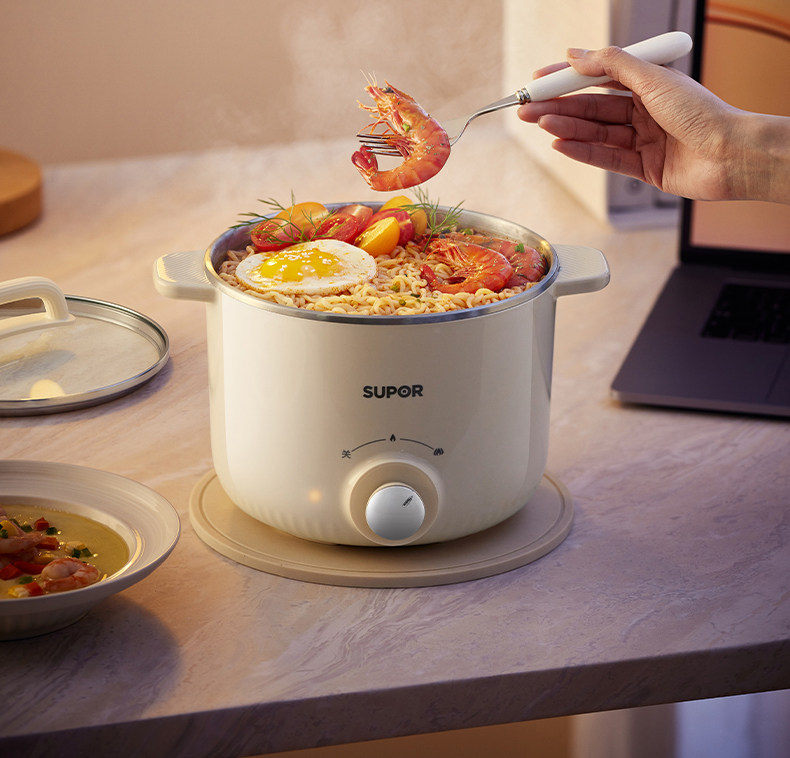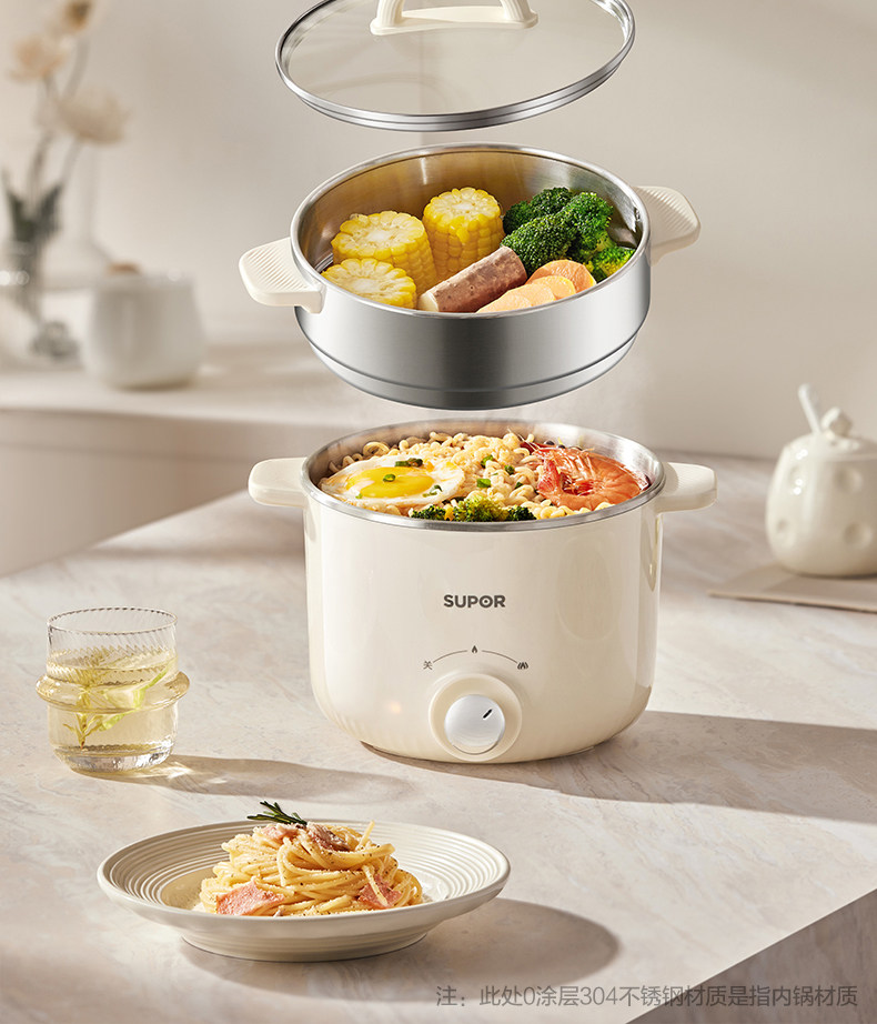 Supor Electric Cooking Pot Dormitory Instant Noodle Pot Steaming and Cooking All-In-One Multifunctional Non-Coating Hot Pot Household Small Cooking Machine