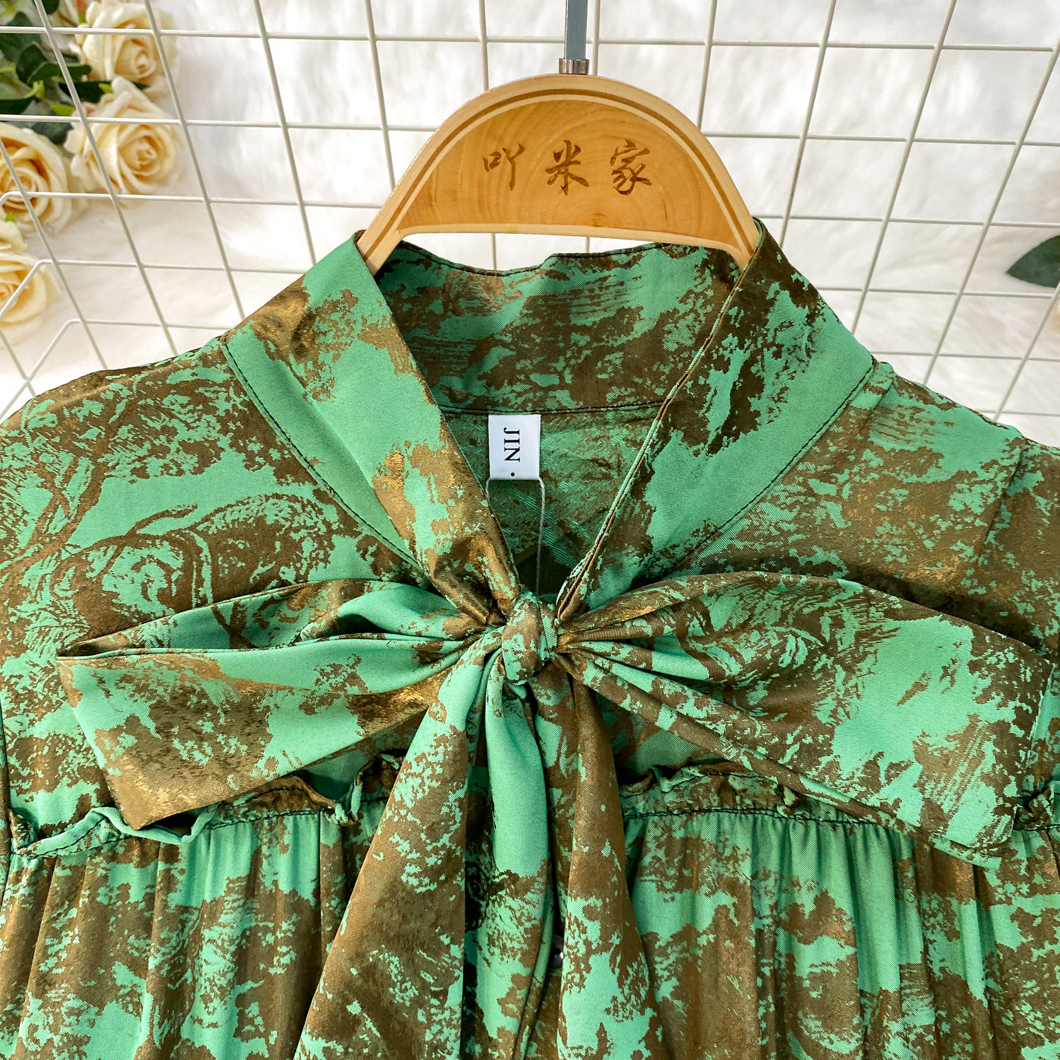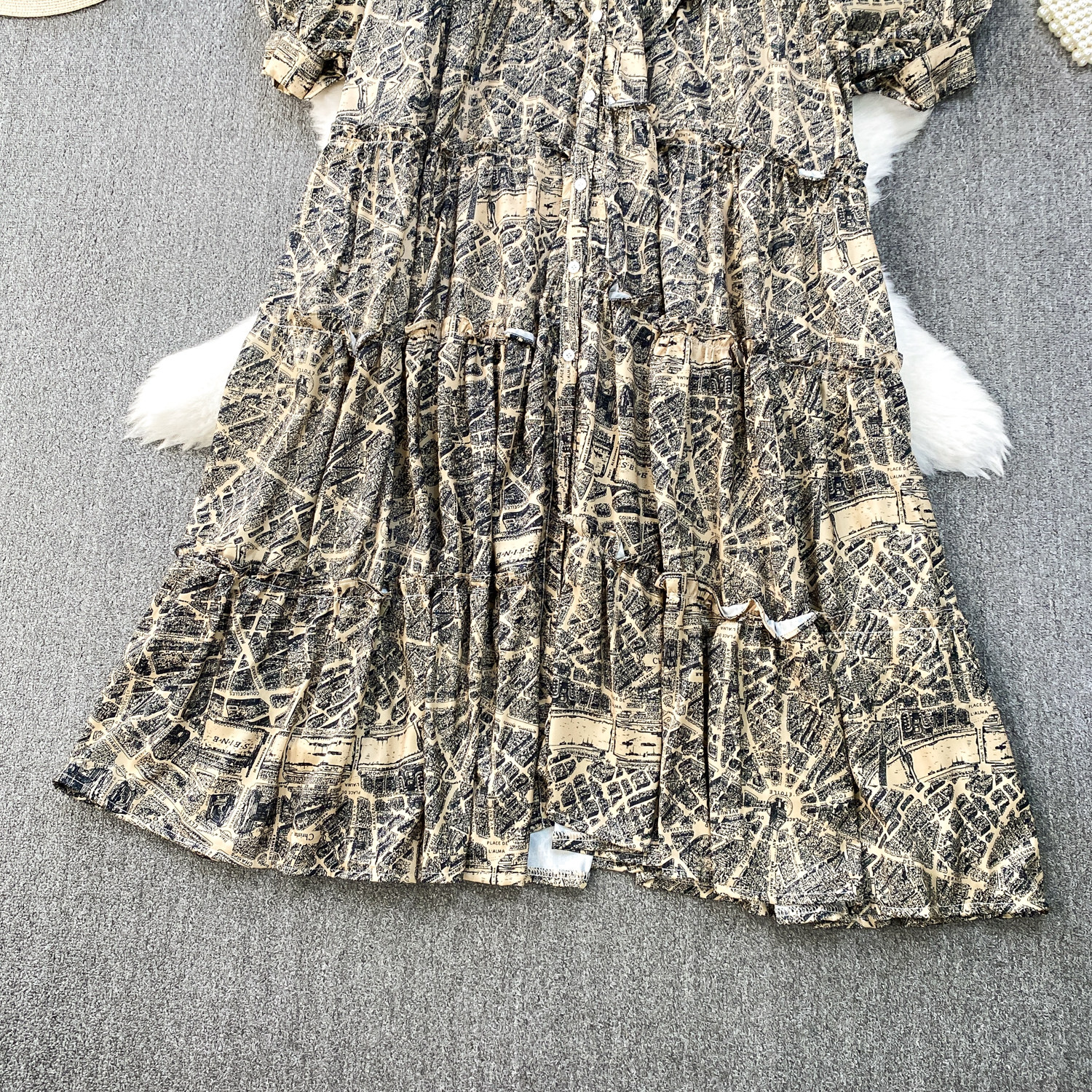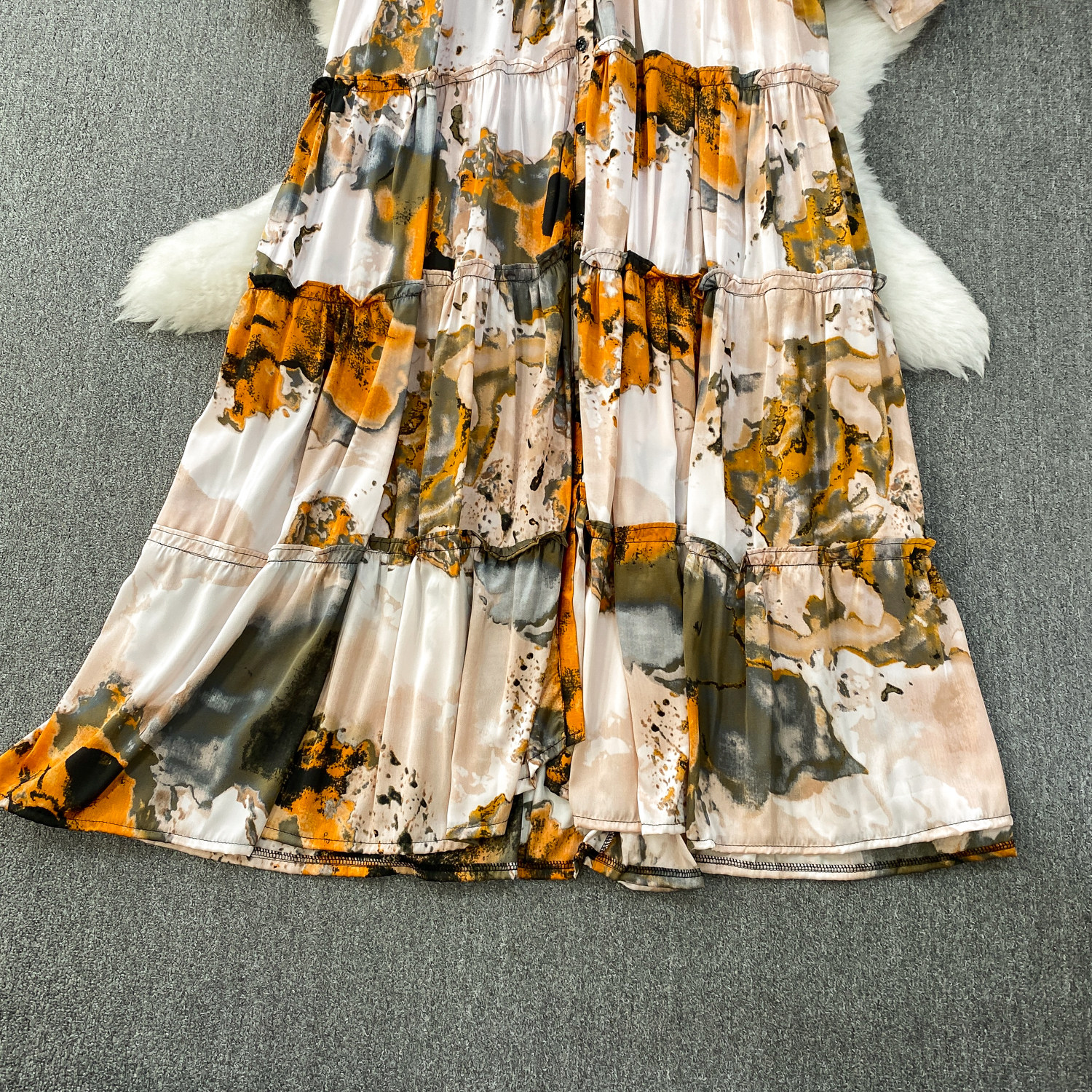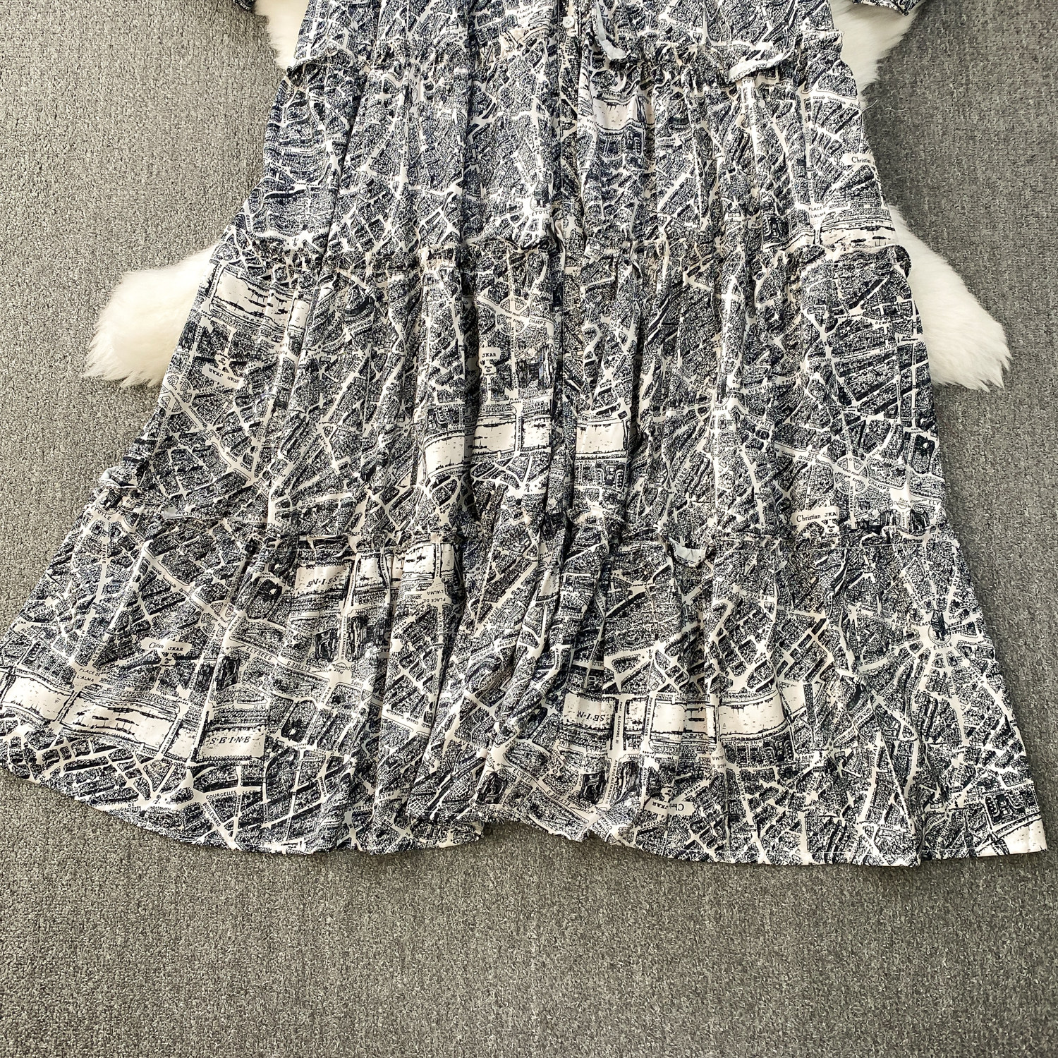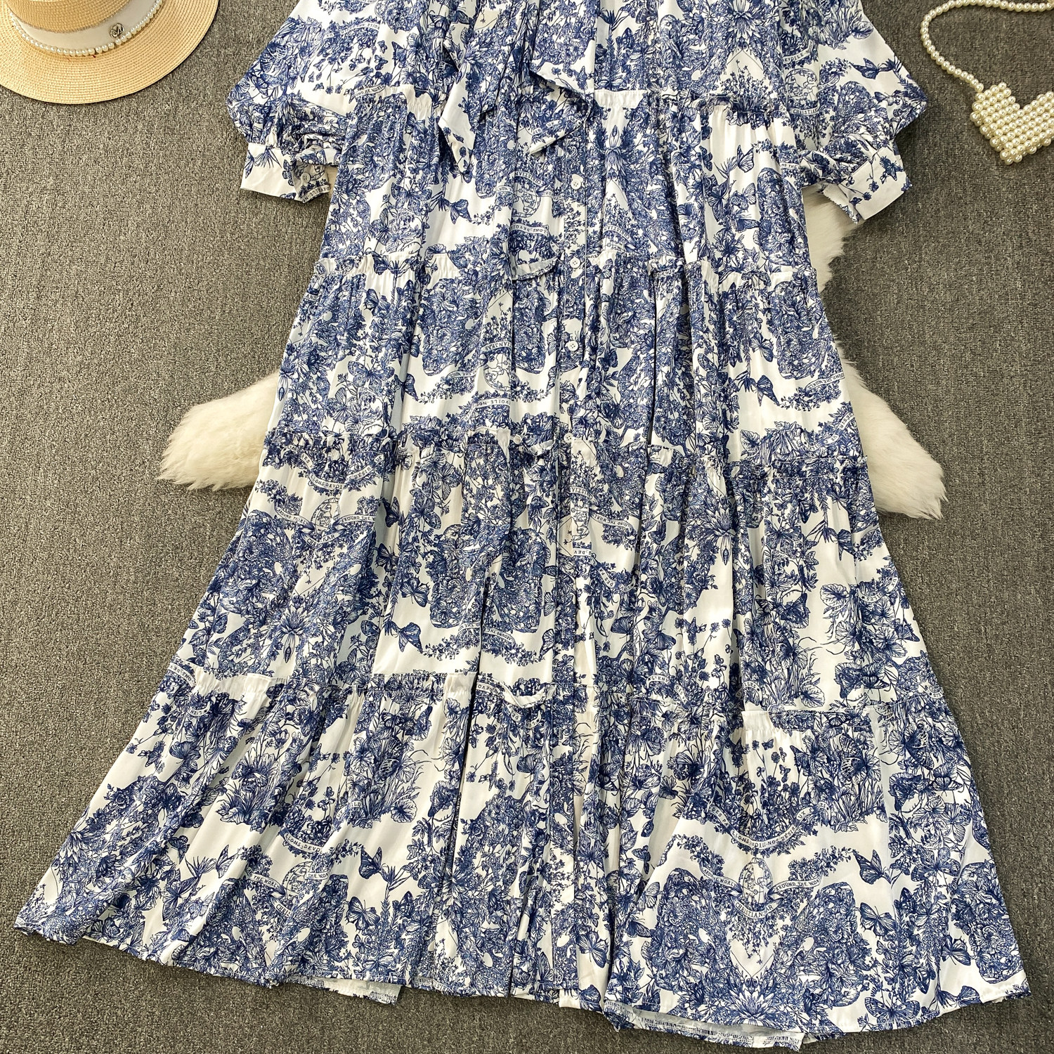 French-Style Light Mature Print Lace-Up V-Neck Long-Sleeve Dress for Women, Autumn Loose Fit, Tummy-Concealing, Slimming, Ruffled Long Dress