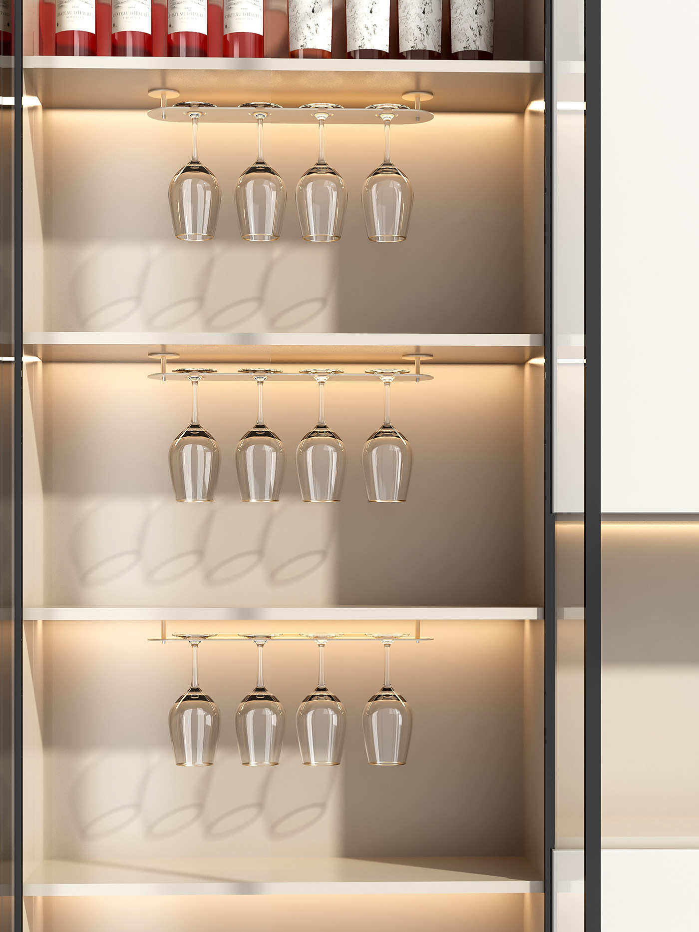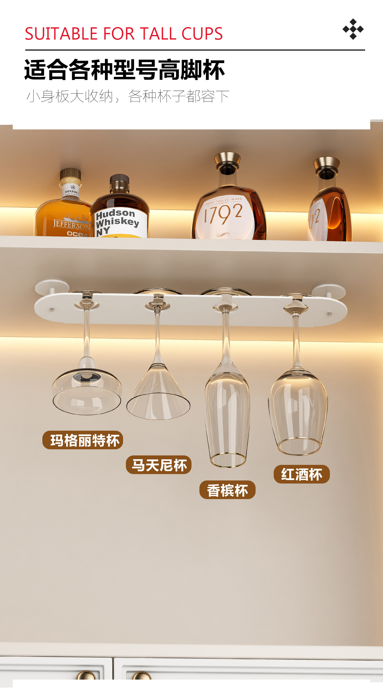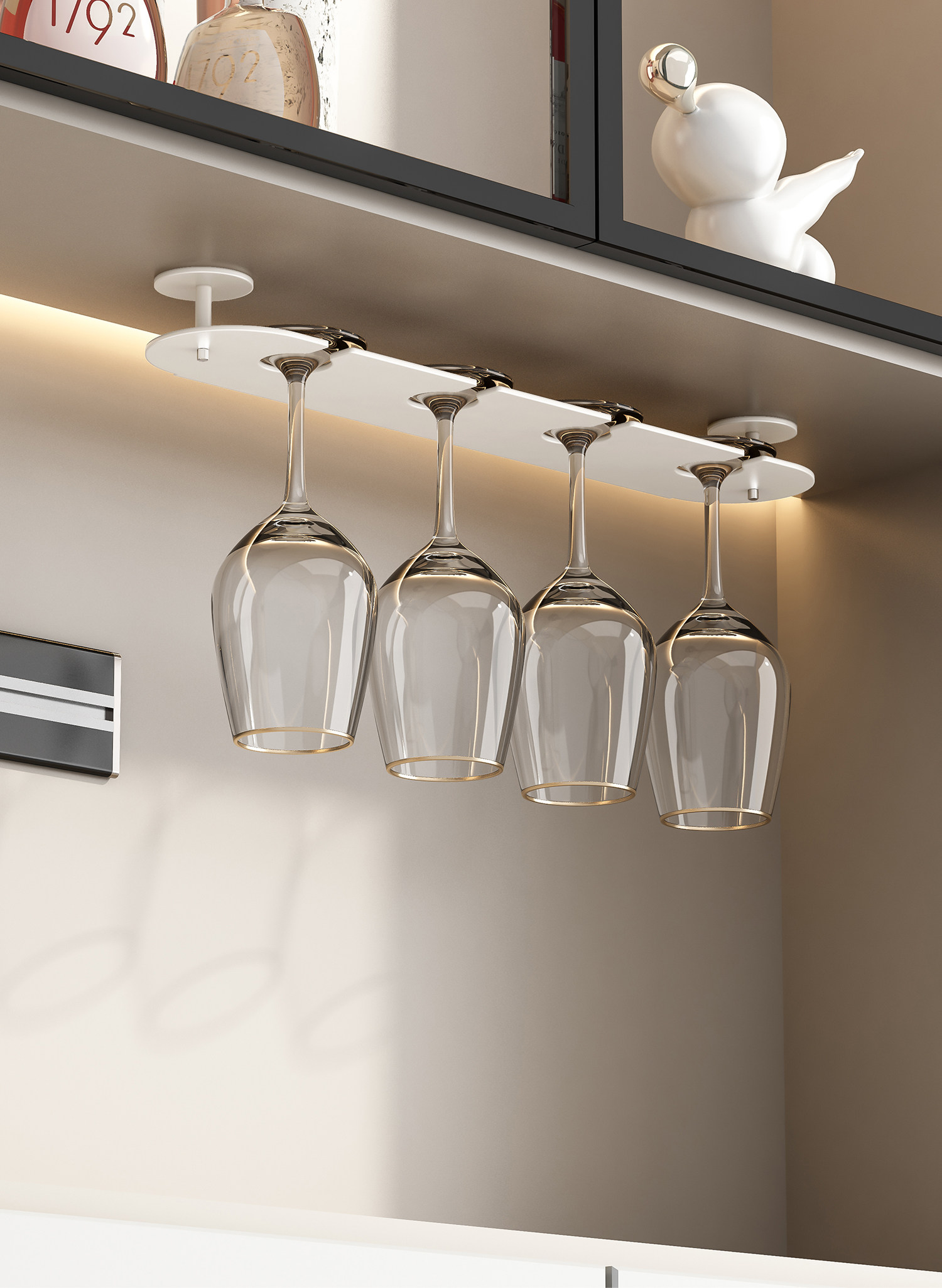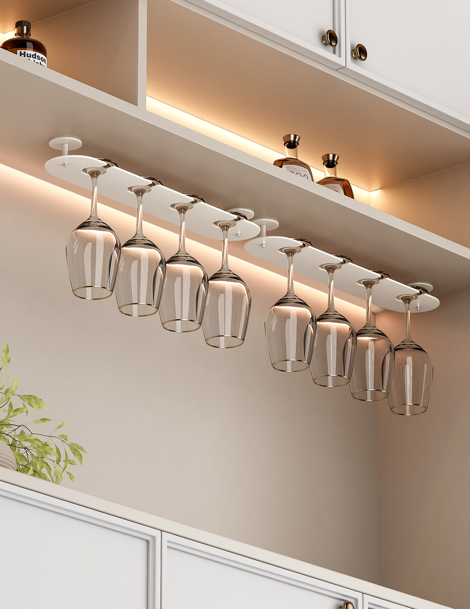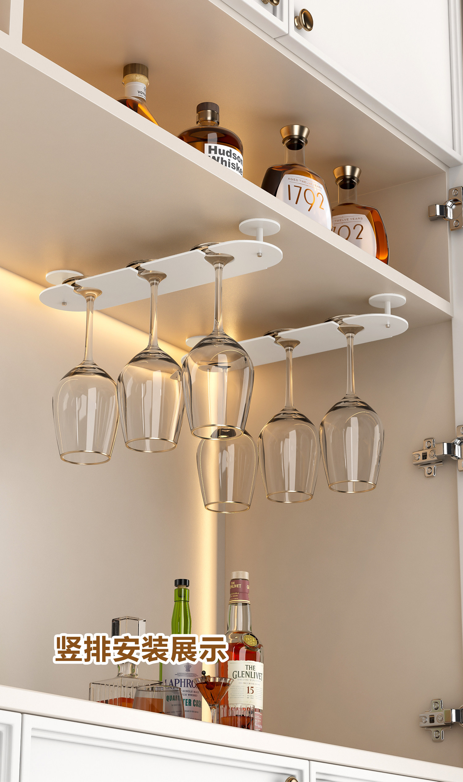 Swey Er Ye Wine Glass Rack, Inverted Champagne Glass and Goblet Hanging Storage, Light Luxury Single-Row Hanging Cup Rack, Cream Style