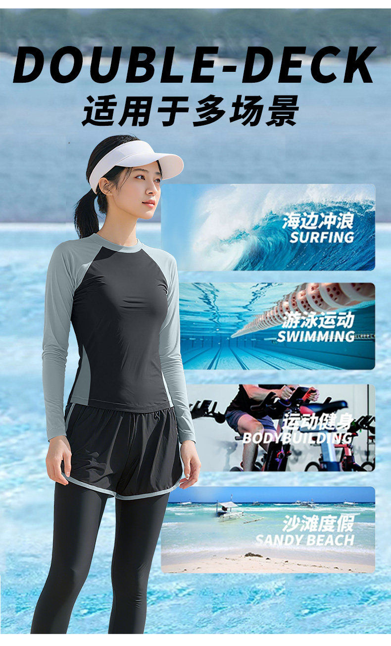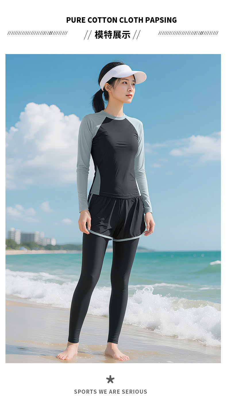 Style Trousers Swimsuit,Long Sleeve Split,Casual Surf Swimsuit,Long Swimming Trunks