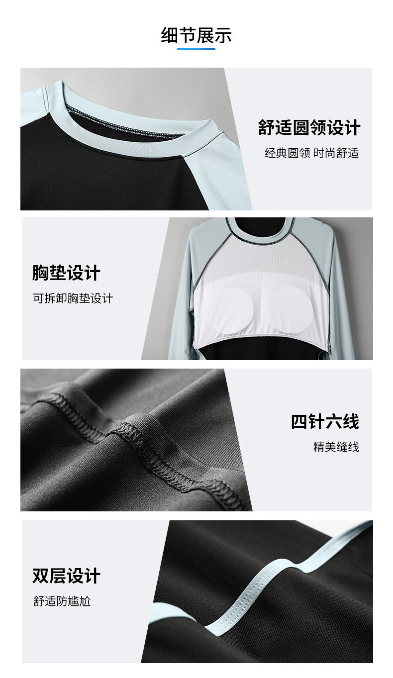 Women's Two-Piece Conservative Slimming Swimsuit Set, New Long-Sleeve and Long-Pants for Swimming, Student Sun Protection, Hot Spring with Chest Pad