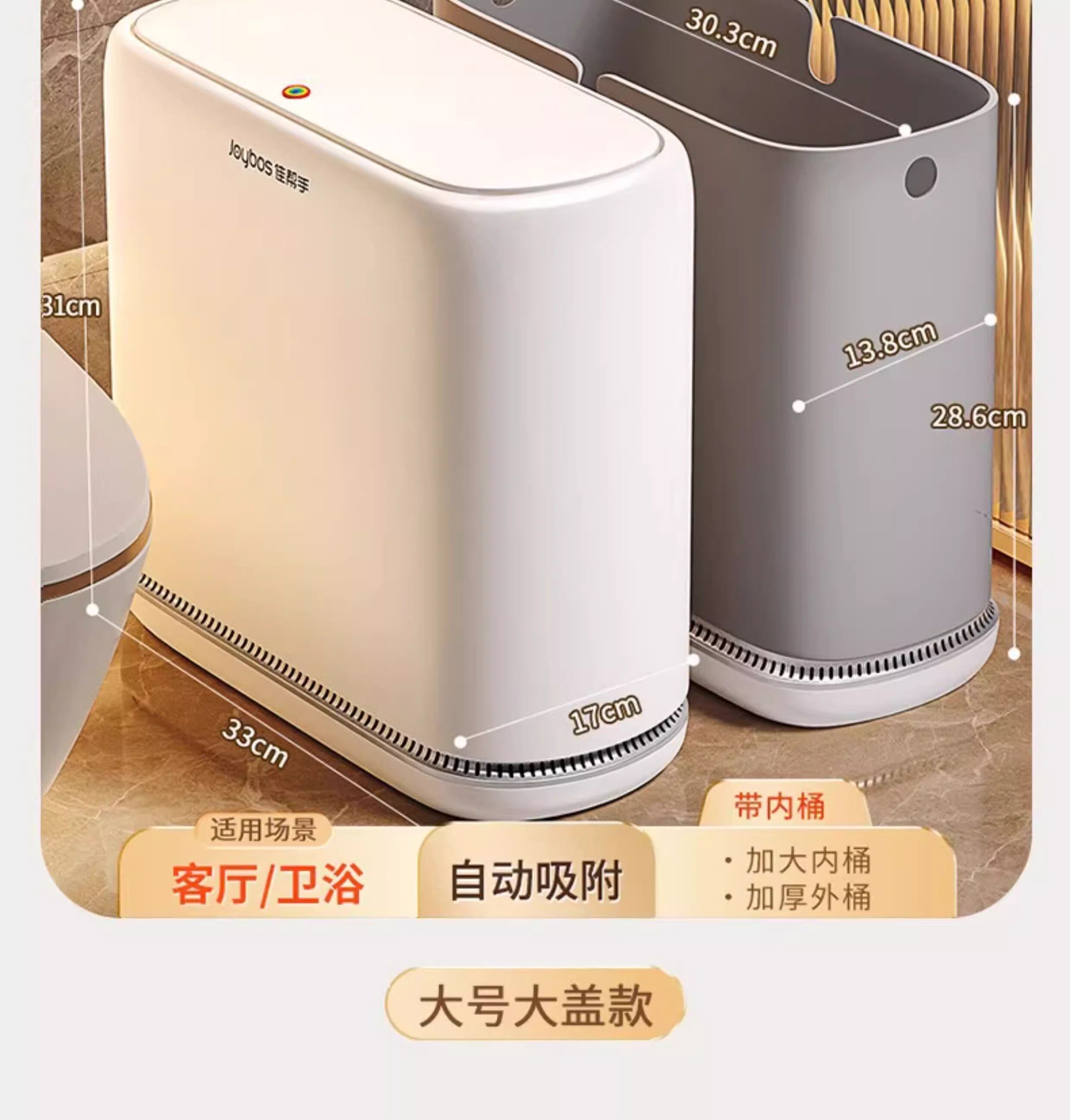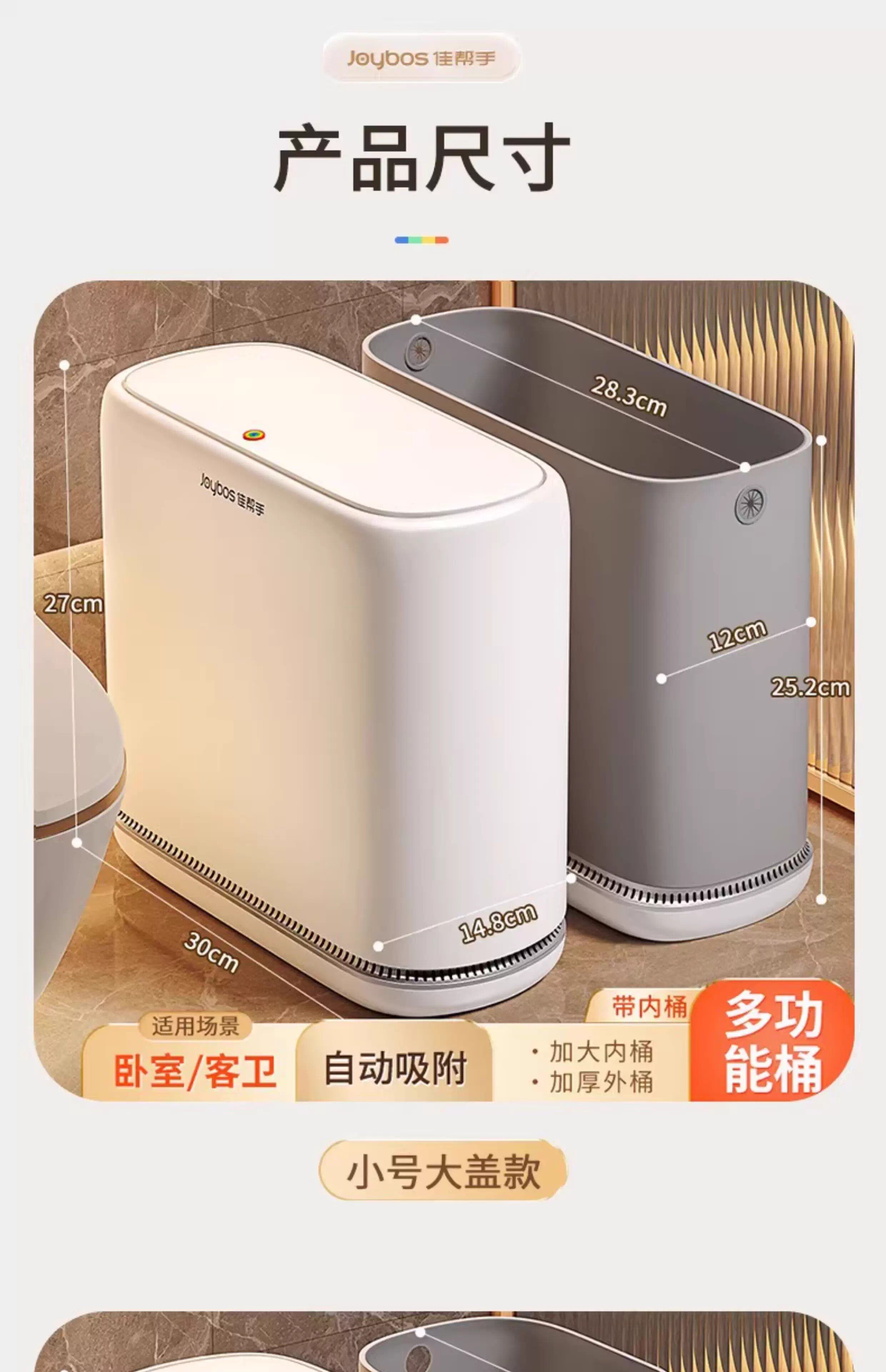 Sort by color Small large cover, automatic adsorption, 14.8cm narrow slit for storage,Recommended for the whole house, large lid with wide mouth, automatic adsorption, large capacity, no need to change the bag for 7 days,Small lid privacy bucket*1, automatic adsorption, small lid and small mouth to protect privacy, bathroom and bedroom,Small cover with legs*1, automatic adsorption, raised legs, clean bottom, bathroom and kitchen,Large cover with leg*1, automatic adsorption, heightened leg, wide mouth, easy to throw away, bathroom and living room,Small size with large cover*2, automatic adsorption, universal and convenient for the whole house,Large lid wide mouth bucket*2 automatic adsorption Large open mouth garbage can be easily thrown away,Large cover leg bucket*2, automatic adsorption, heightened legs, wide mouth, easy to throw away,300 drawstring garbage bags, enough for one year