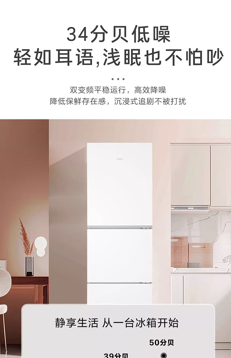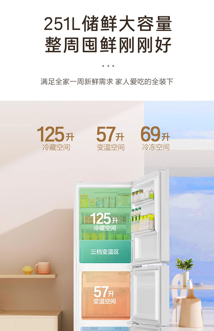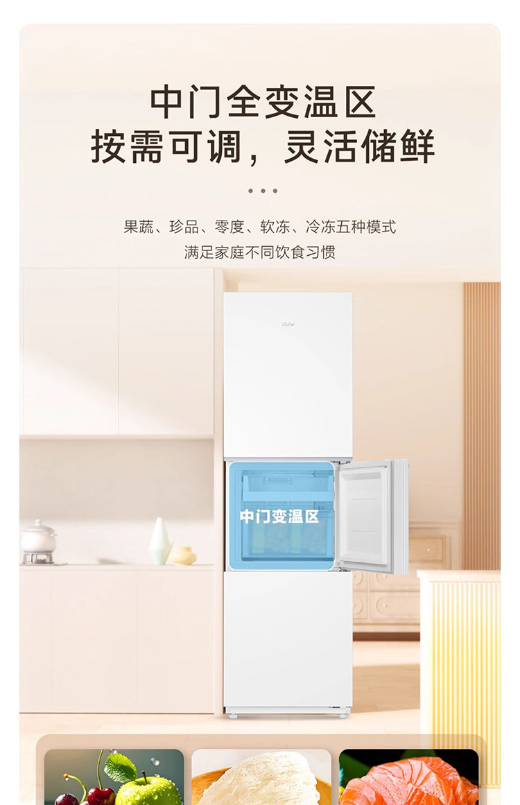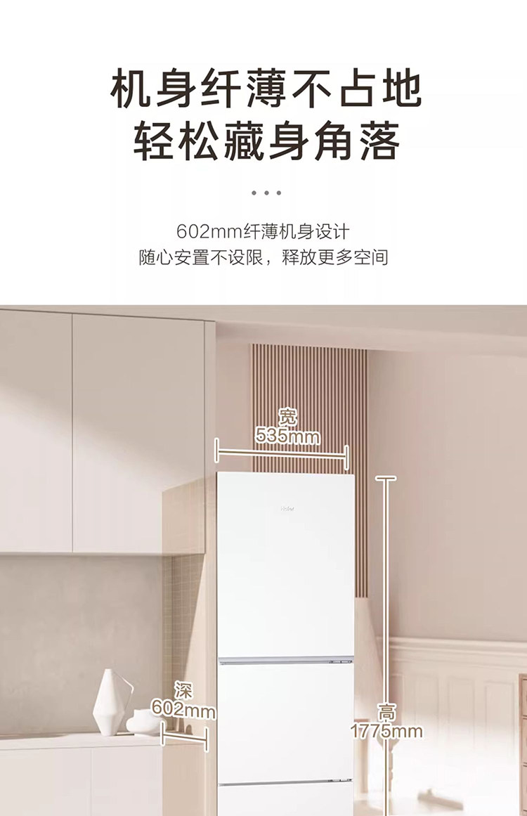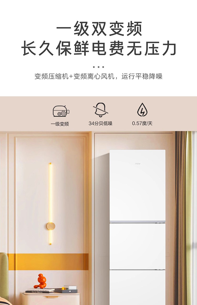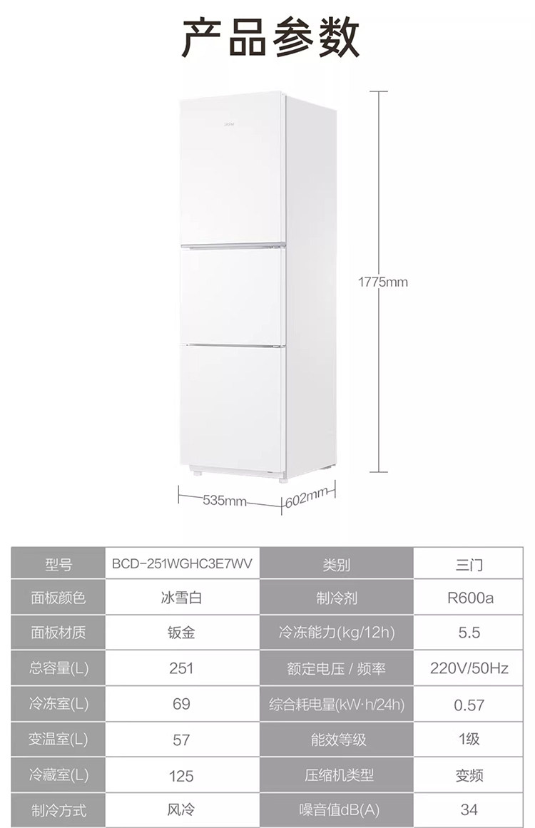 Haier Bcd-251Wghc3E7Wv Three-Door Household Refrigerator for Rental Use, Air-Cooled, First-Class Dual Inverter