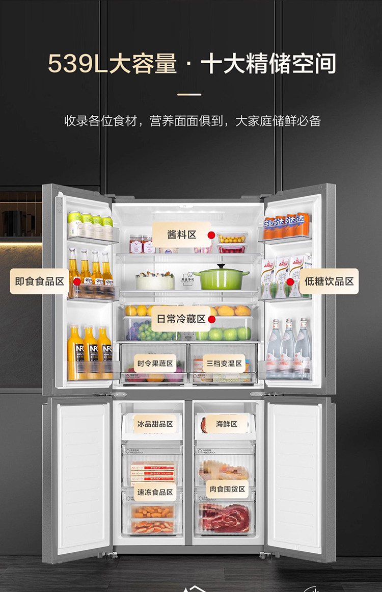 Haier Bcd-539Wghtdedh9U1 Household Large-Capacity Frost-Free Side-By-Side Refrigerator