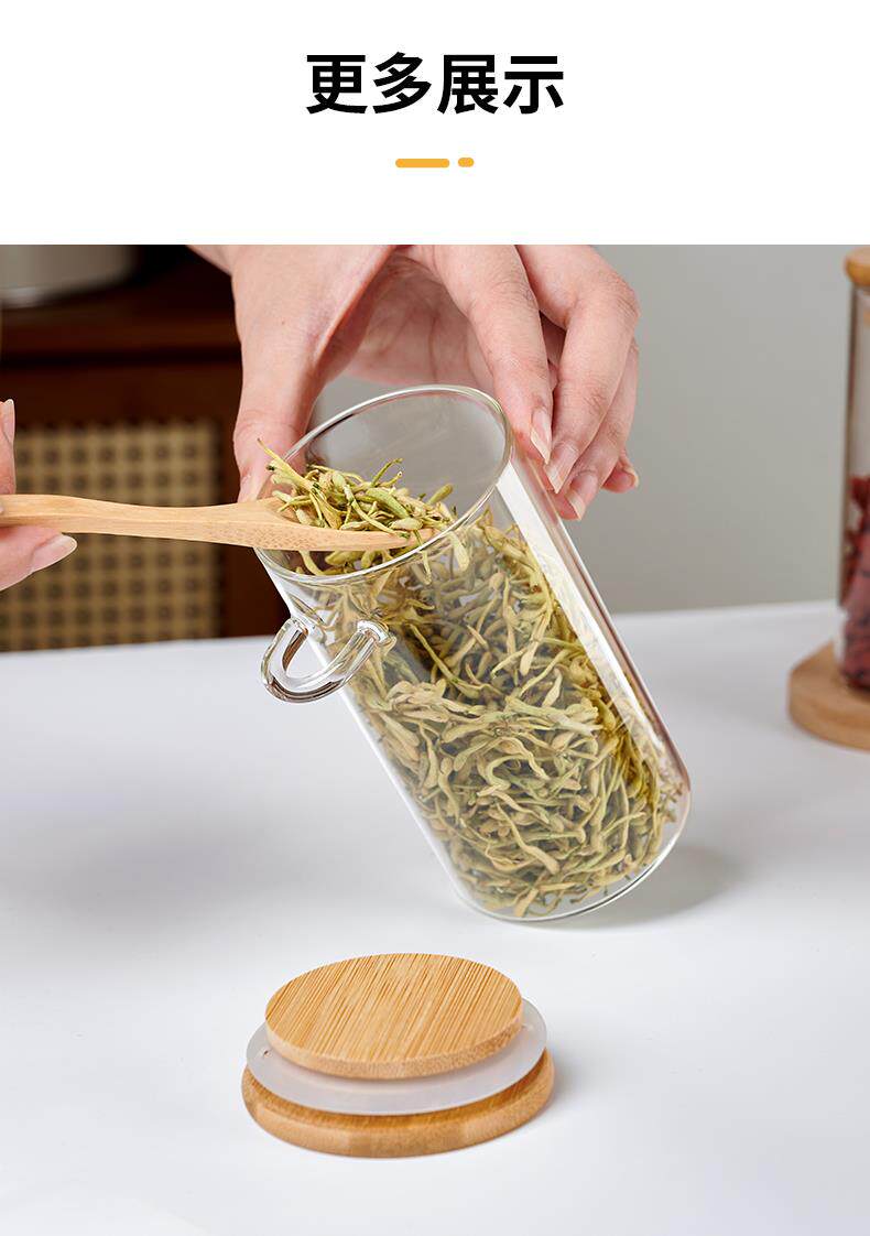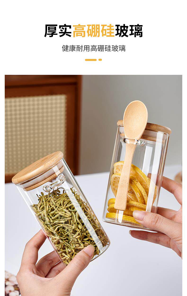 Glass Flower Tea Storage Jar, Tea Canister, Food Storage Jar, Transparent Sealed Jar, Storage Jar, Empty Bottle with Spoon