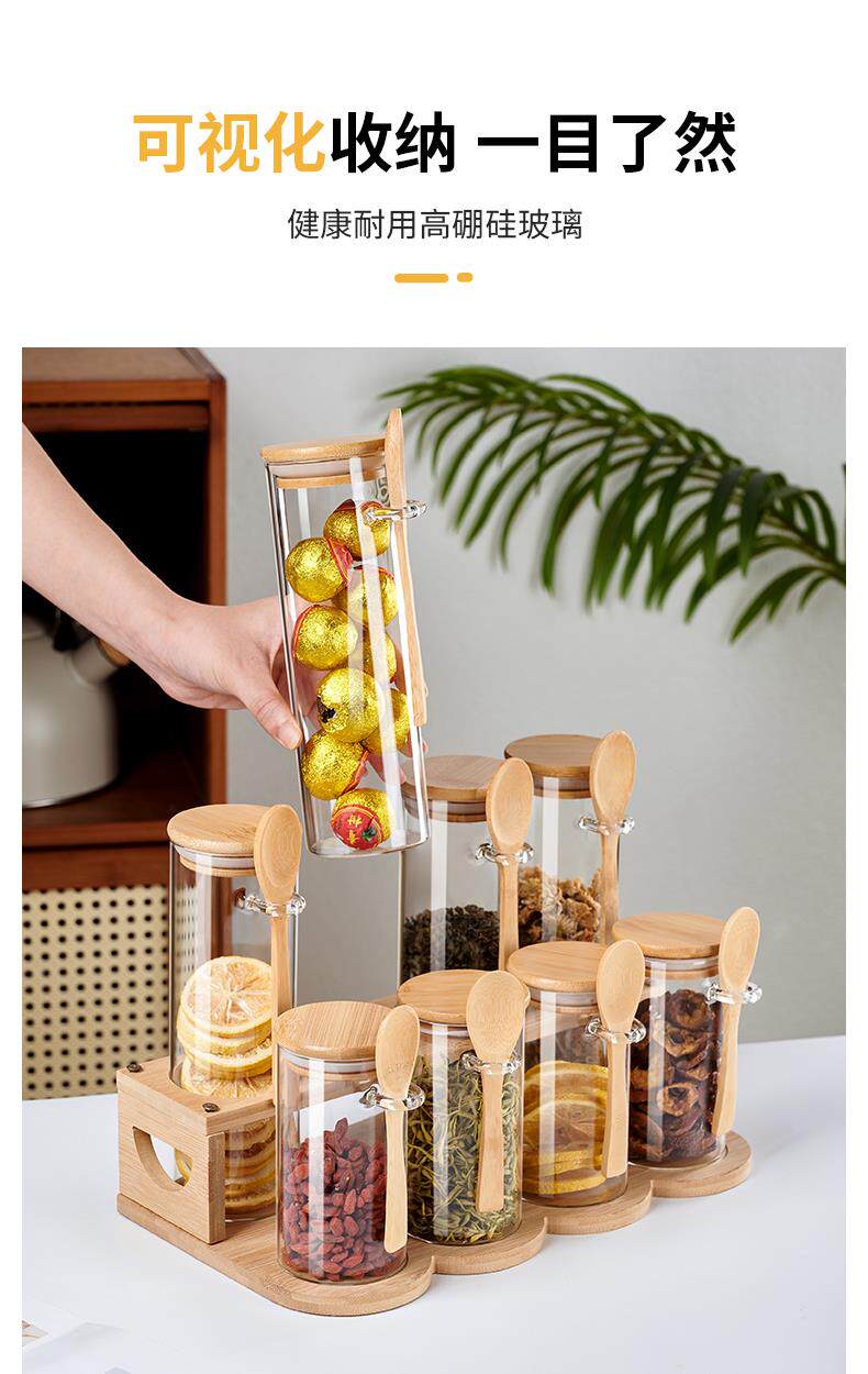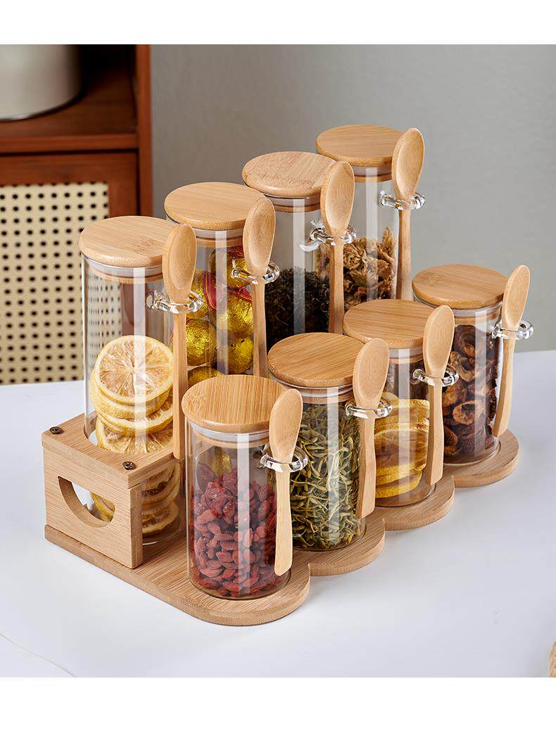 Color Classification 【5-Piece Set】Tall Tea Canister Set with Spoons *4 + 4-Slot Storage Rack,【9-Piece Set】Tea Canister Set with Spoons: Short * 4 + Tall * 4 + 8-Hole Storage Rack