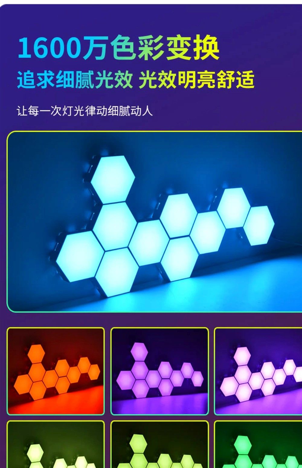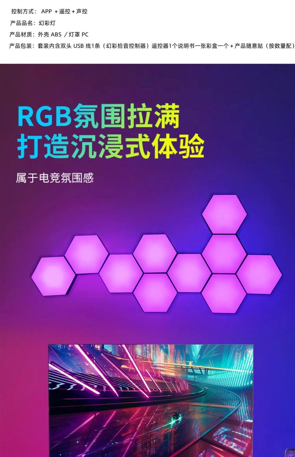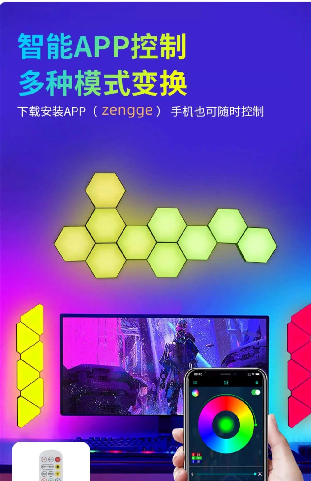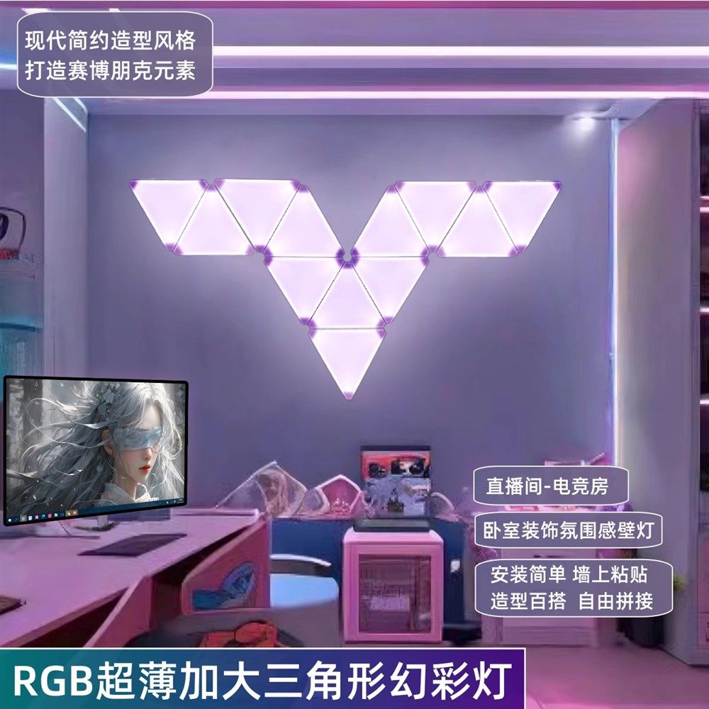 E-Sports Room Atmosphere Light, Computer Desktop Background Wall Decoration, Splicing Light, Honeycomb Light, Triangular Hexagonal Quantum Light