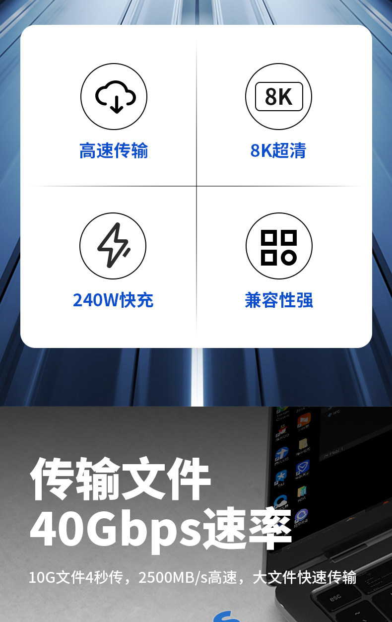 Color Classification [0.5m]Usb5 Data Cable●80Gbps Transmission●240W Fast Charging●16K Screen Projection,[1m]Usb5 Data Cable●80Gbps Transmission●240W Fast Charging●16K Screen Projection,[1.5m]Usb5 Data Cable●80Gbps Transmission●240W Fast Charging●16K Screen Projection,The Following Is the Usb4 Data Cable,[0.5m]Usb4 Data Cable●40Gbps Transmission●240W Fast Charging●8K Screen Projection,[1m]Usb4 Data Cable●40Gbps Transmission●240W Fast Charging●8K Screen Projection,[1.5m]Usb4 Data Cable●40Gbps Transmission●240W Fast Charging●8K Screen Projection