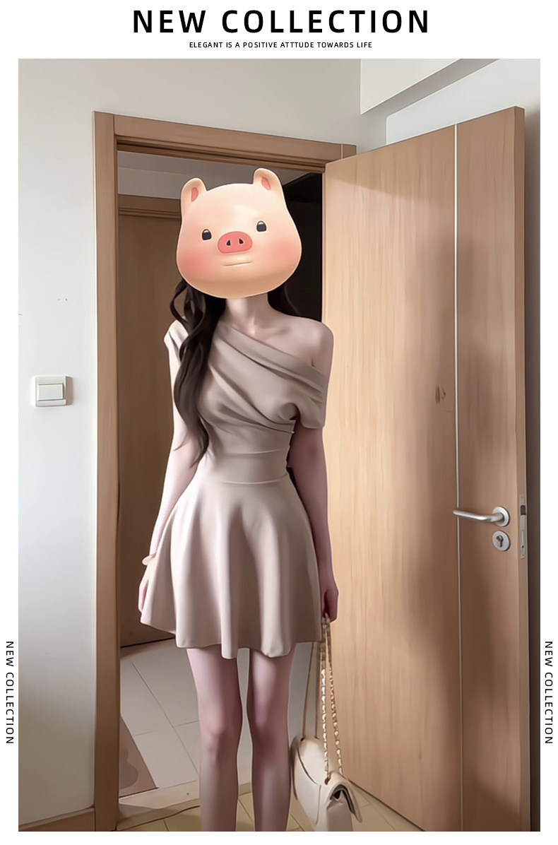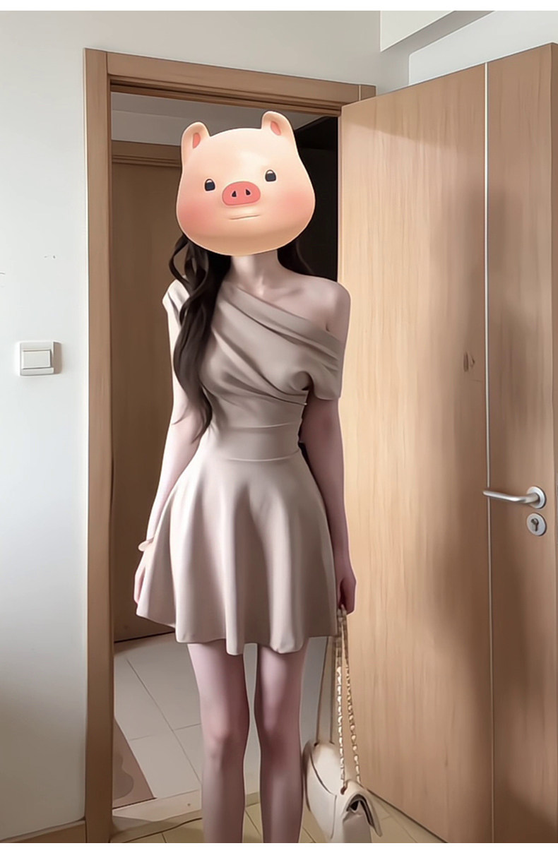 French slanted shoulder dress for women, summer temperament, petite, high-end, off-shoulder, one-shoulder, waist-slimming short skirt