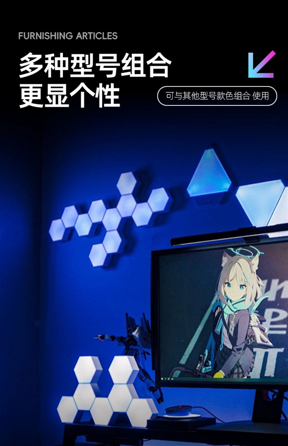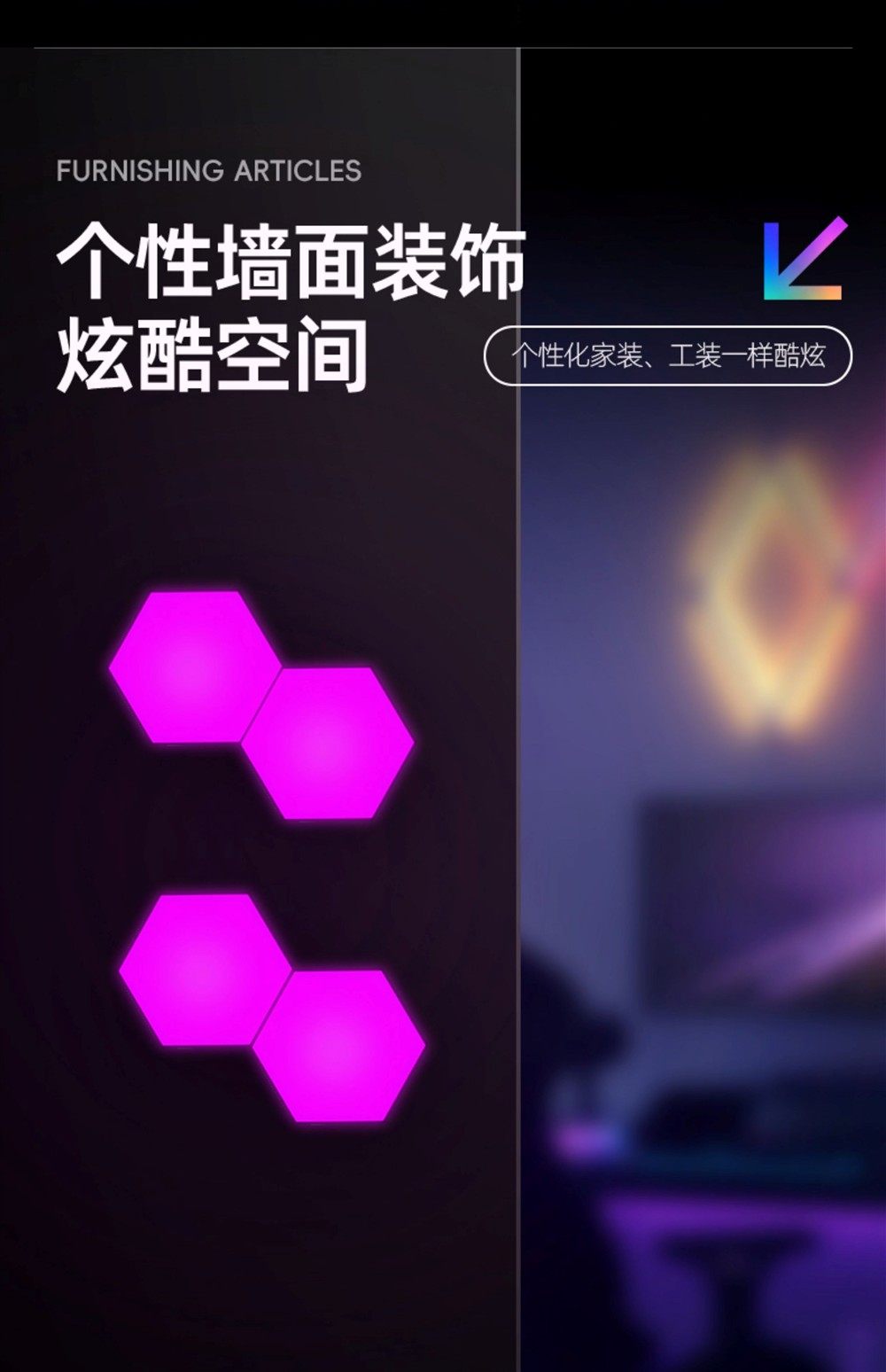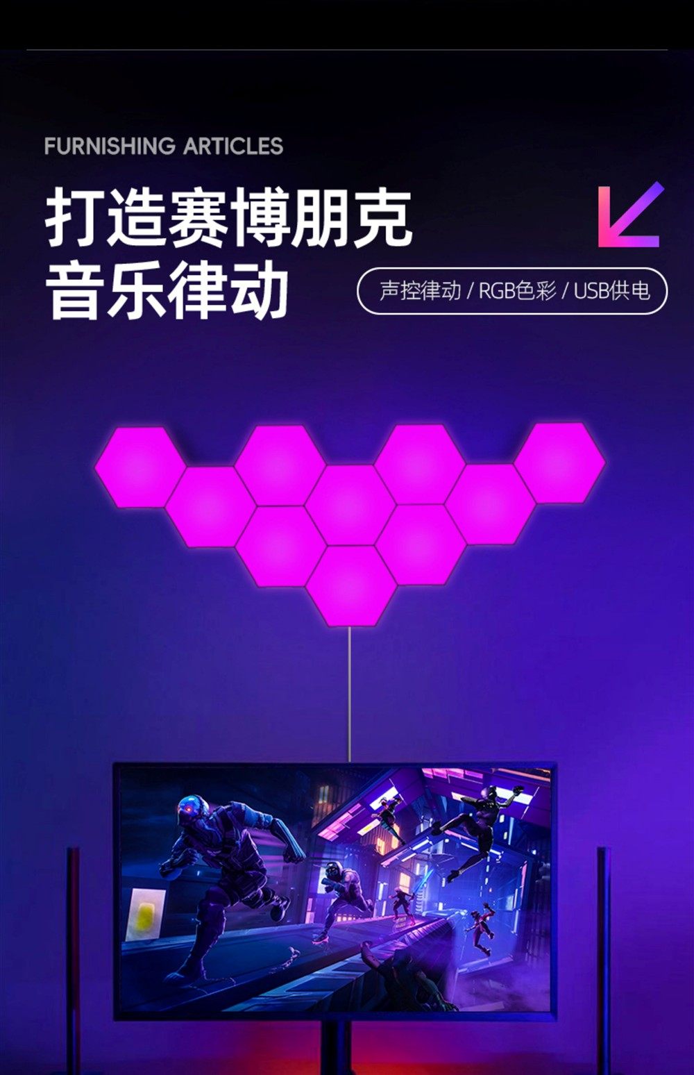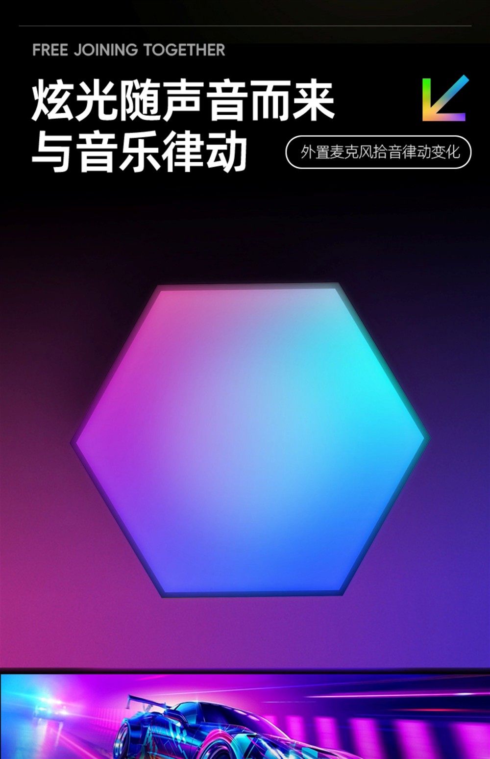 E-Sports Atmosphere Light, Smart Light Panel, Background Wall, Quantum Light, Voice Control, Sensor Remote Control, Hexagonal Honeycomb Bedroom Wall Light