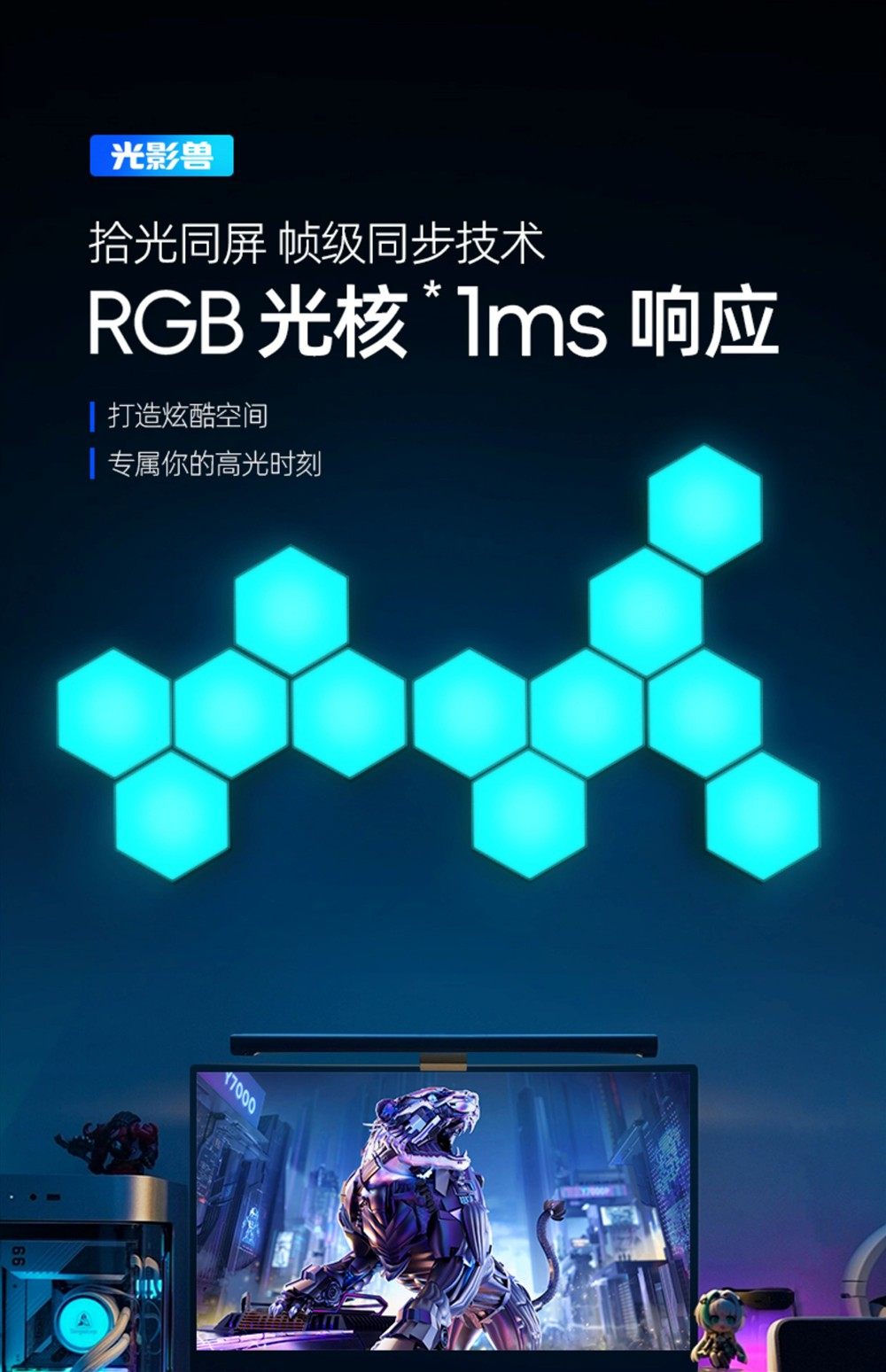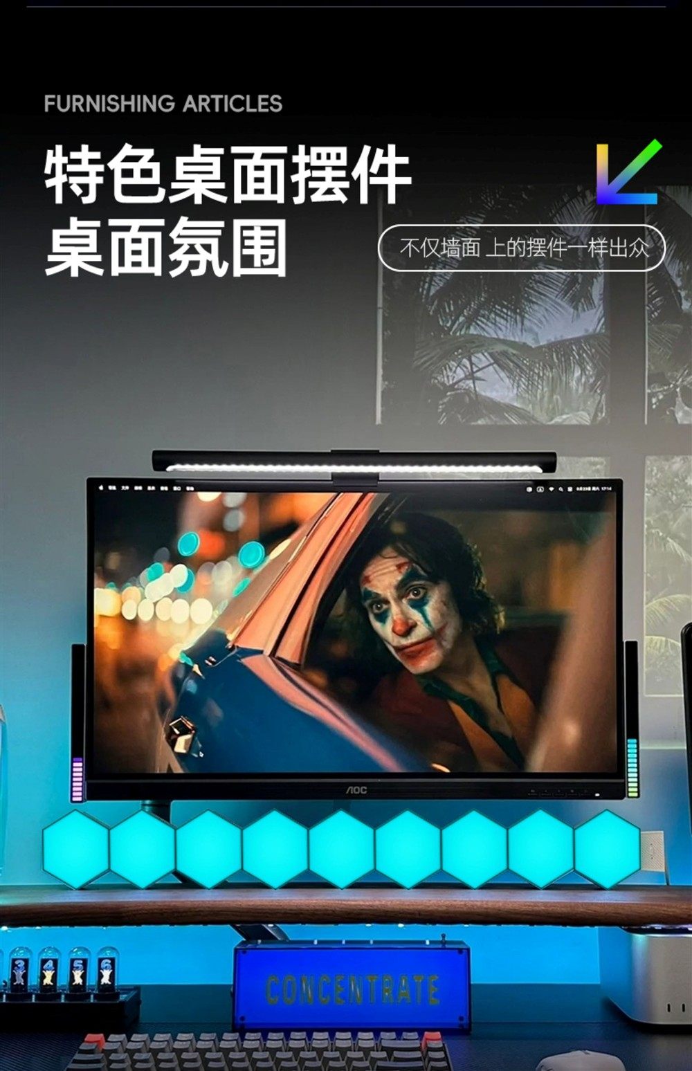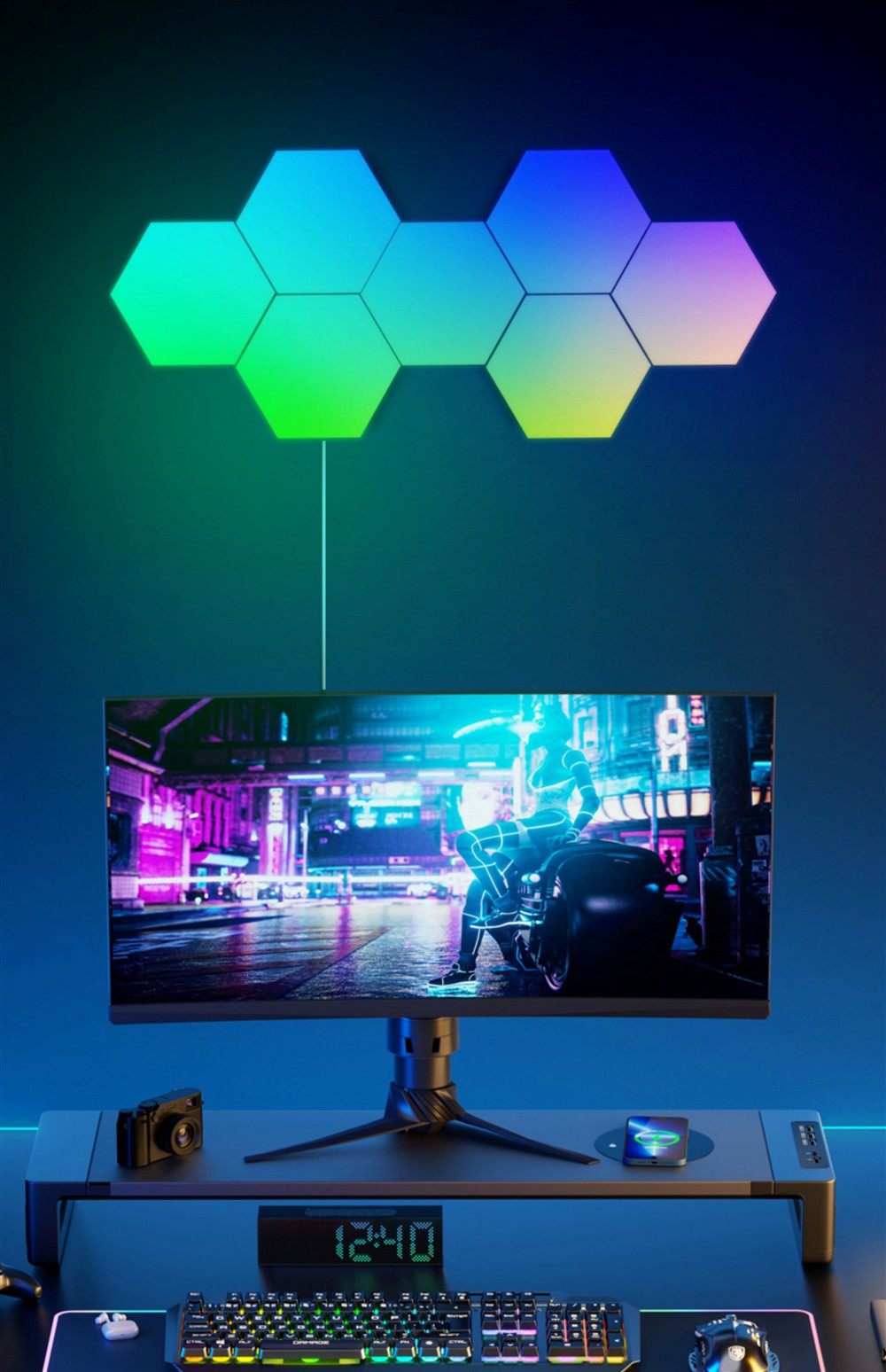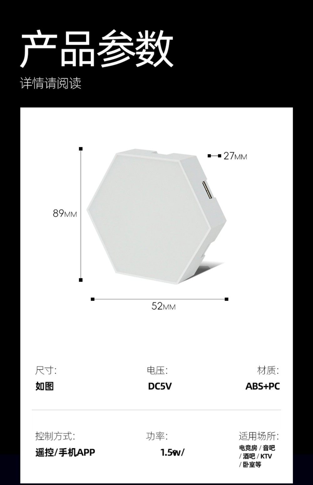 E-Sports Atmosphere Light, Smart Light Panel, Background Wall, Quantum Light, Voice Control, Sensor Remote Control, Hexagonal Honeycomb Bedroom Wall Light