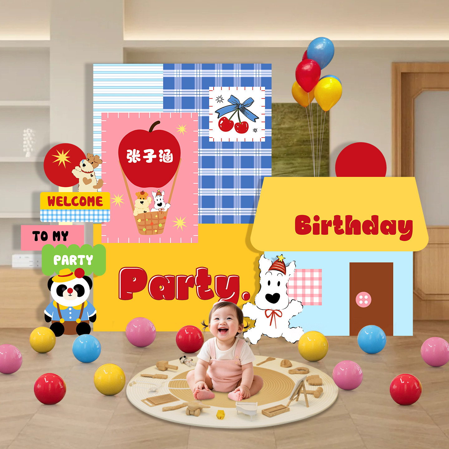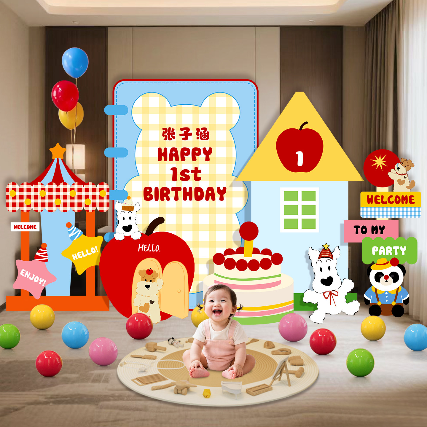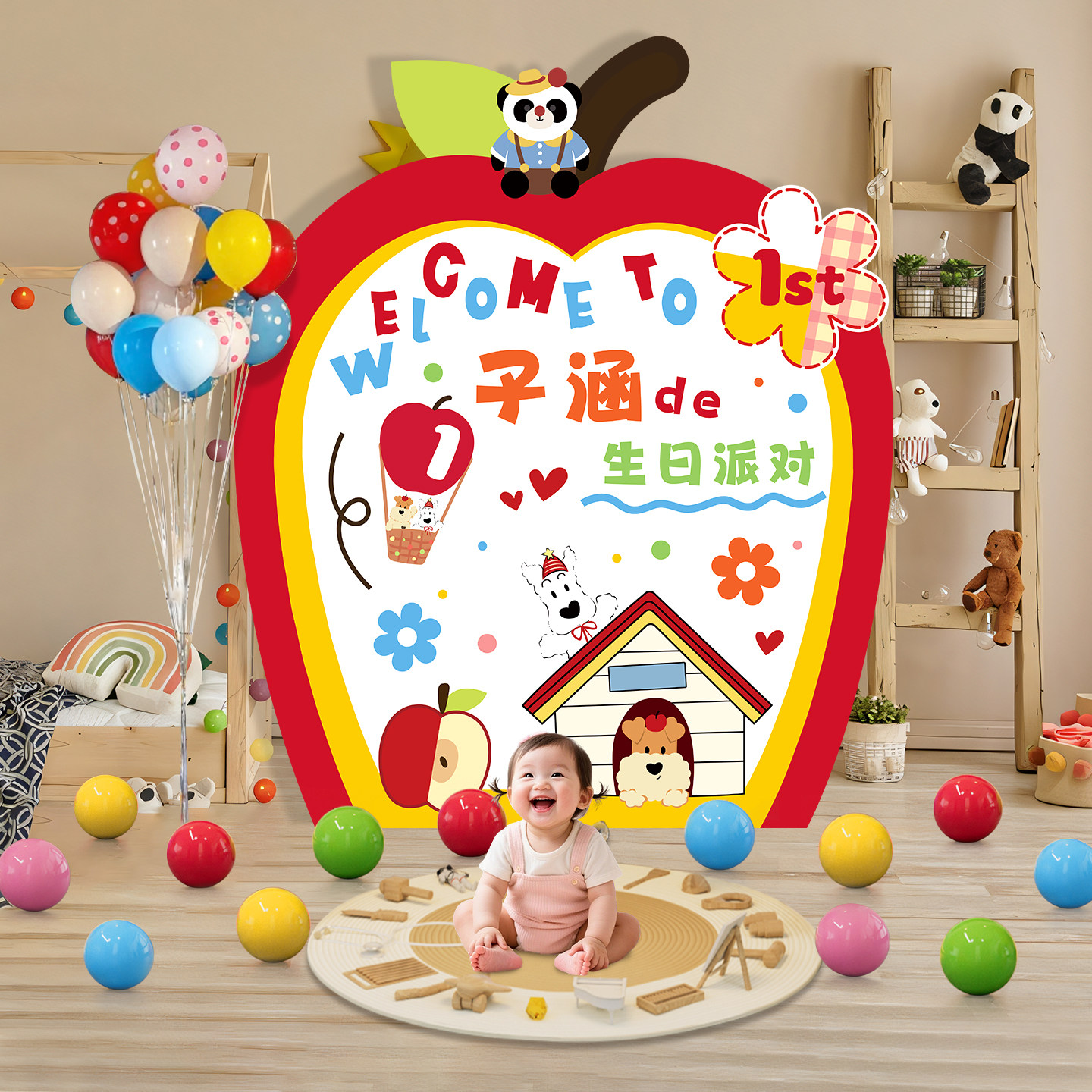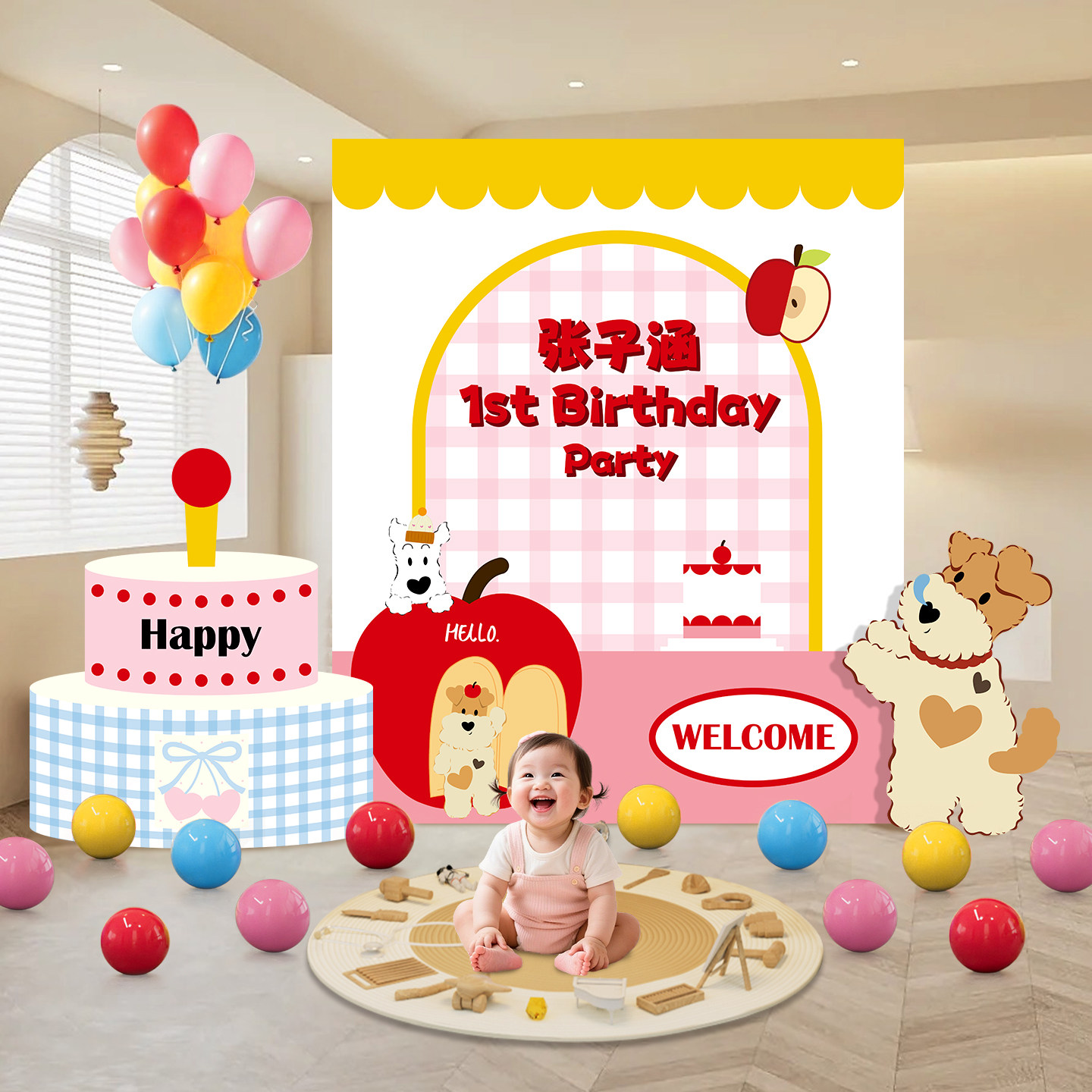 Male and Female Baby's First Birthday Party Birthday Party Layout Background Wall Dopamine Kt Board Scene Decoration Atmosphere