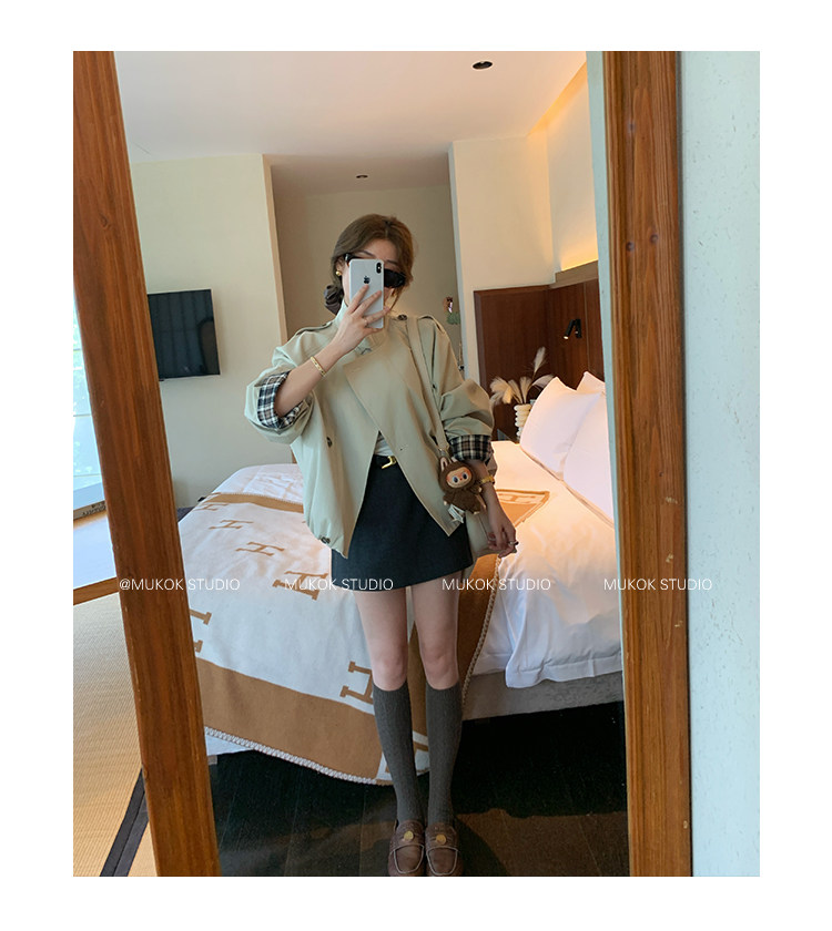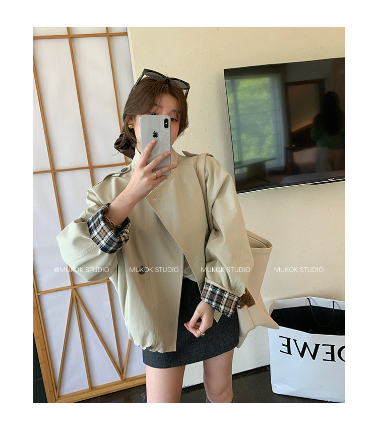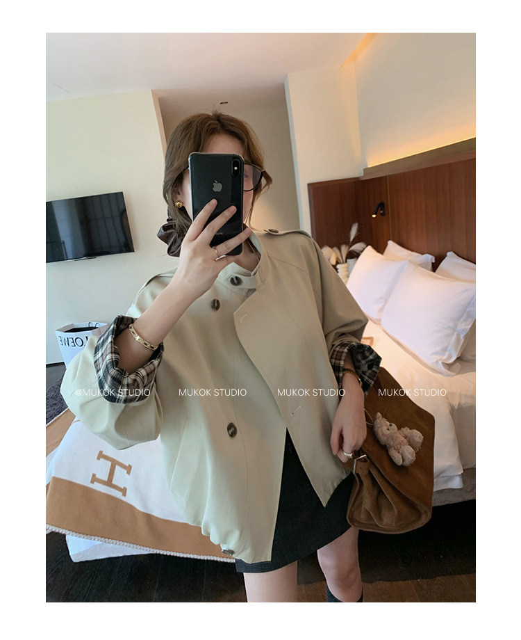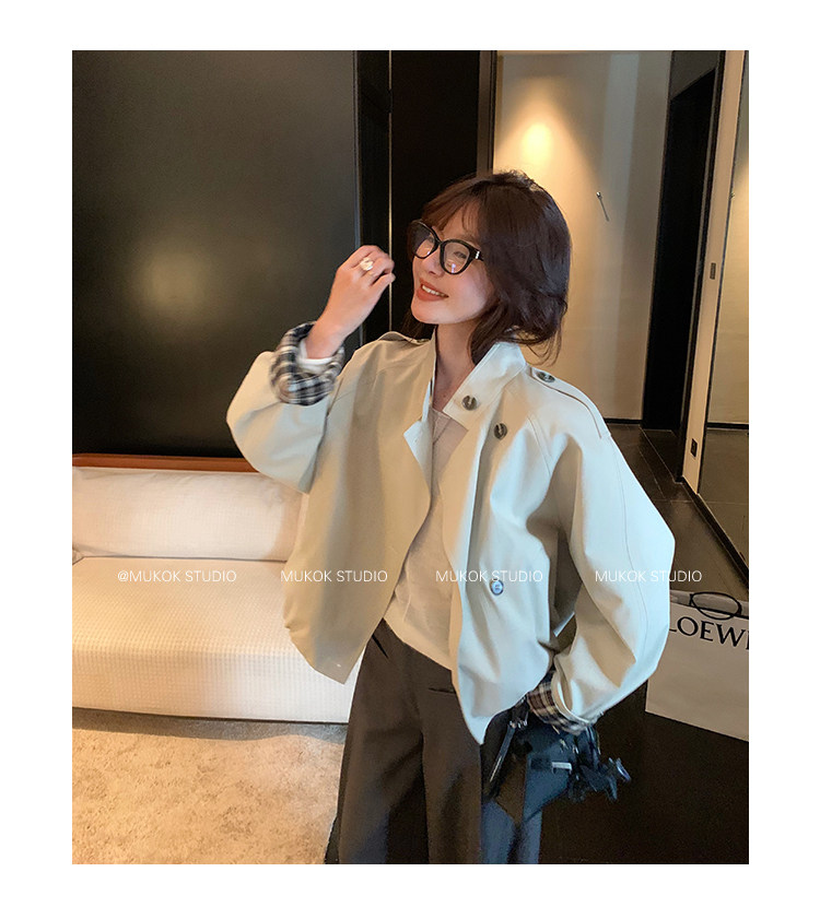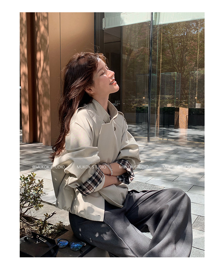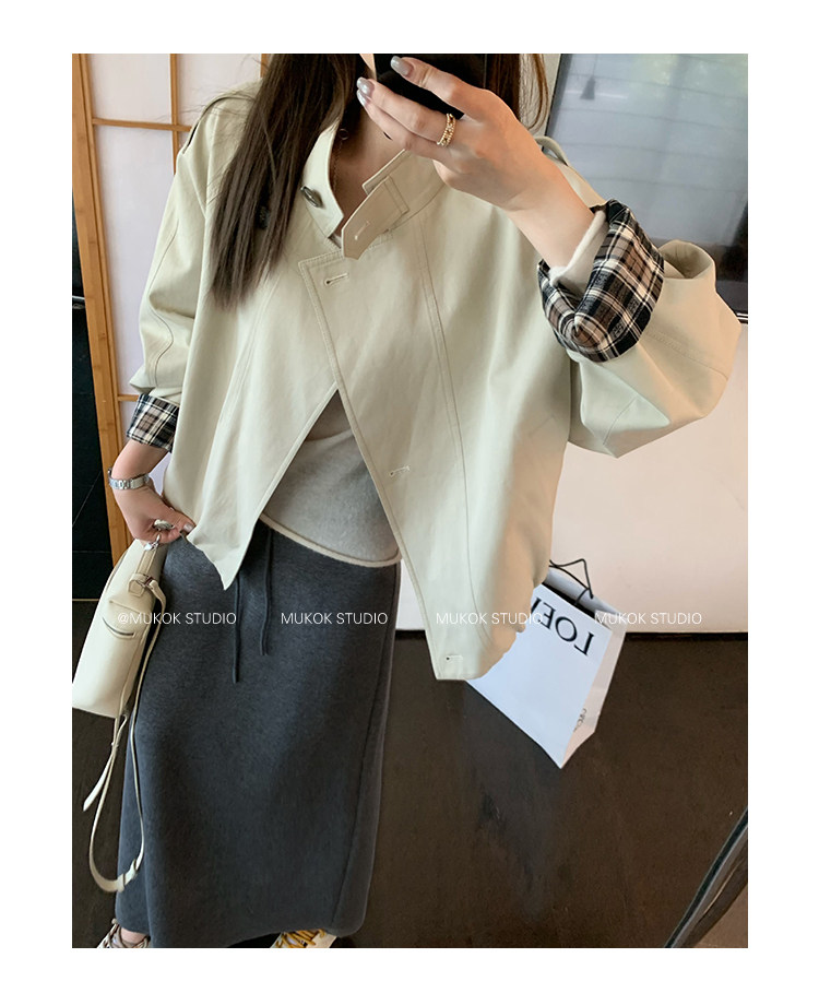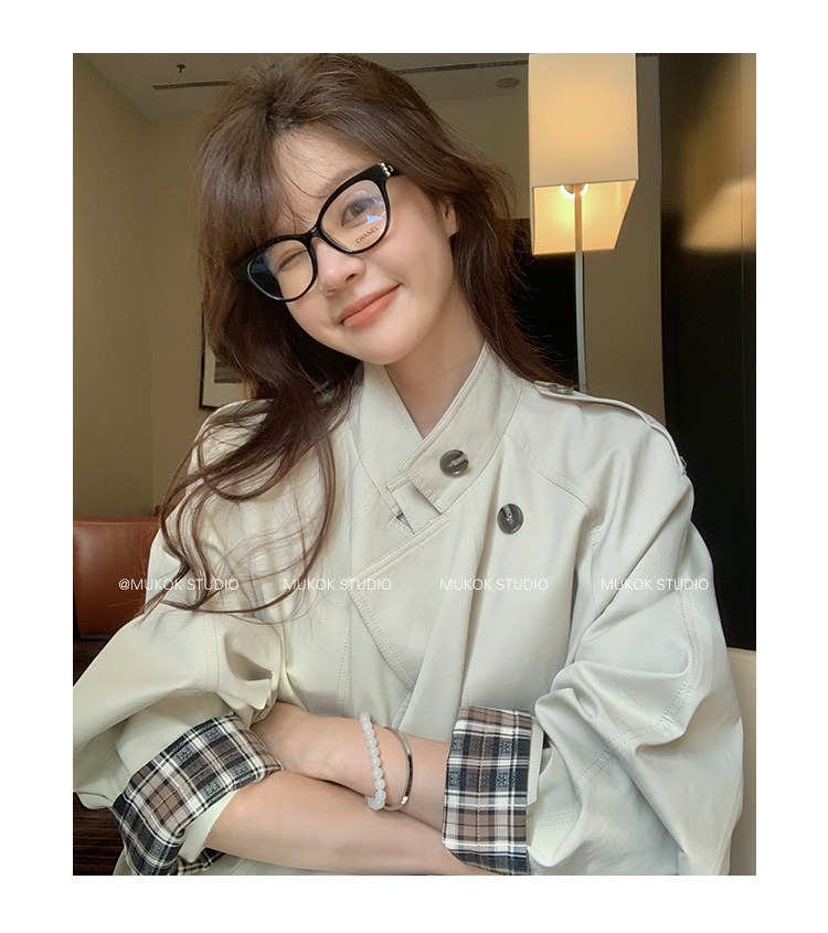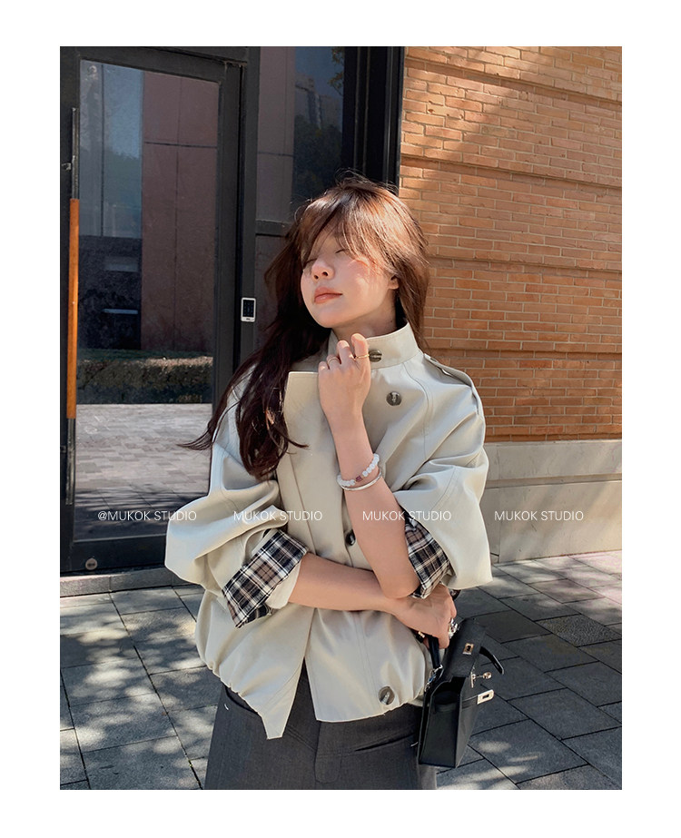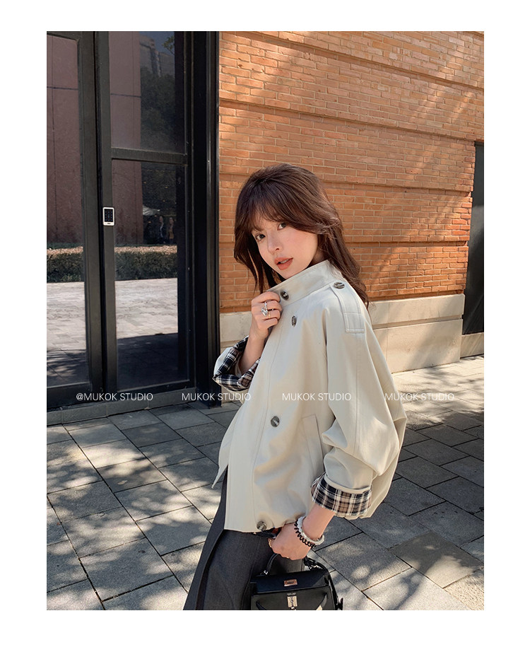 DX.DAXI Zurich MUKOK bud hem stand collar contrasting plaid commuting British style short jacket