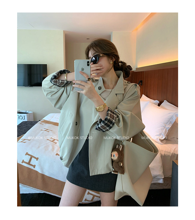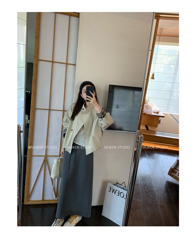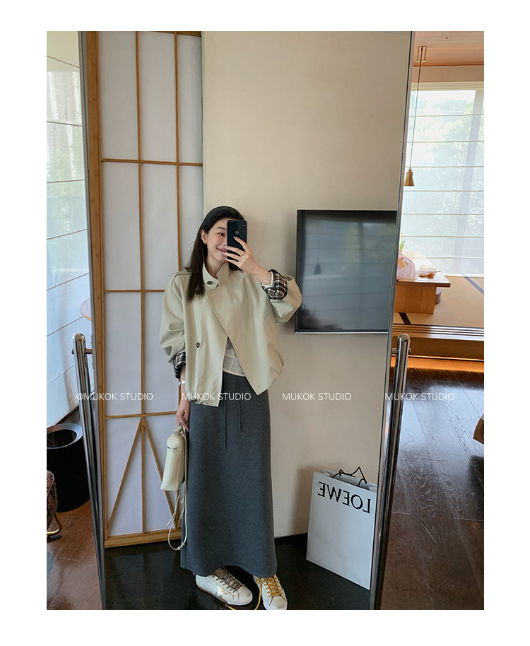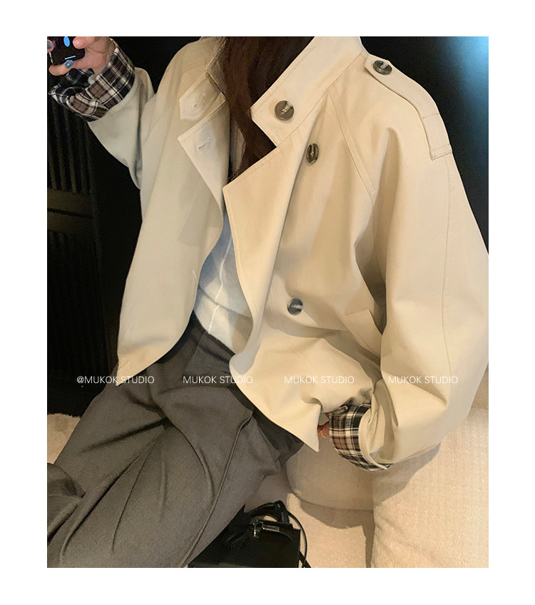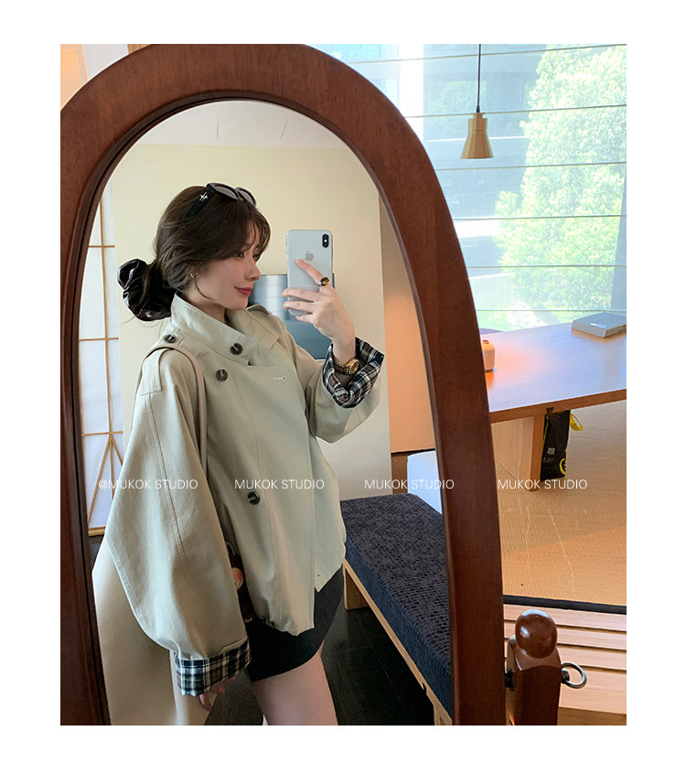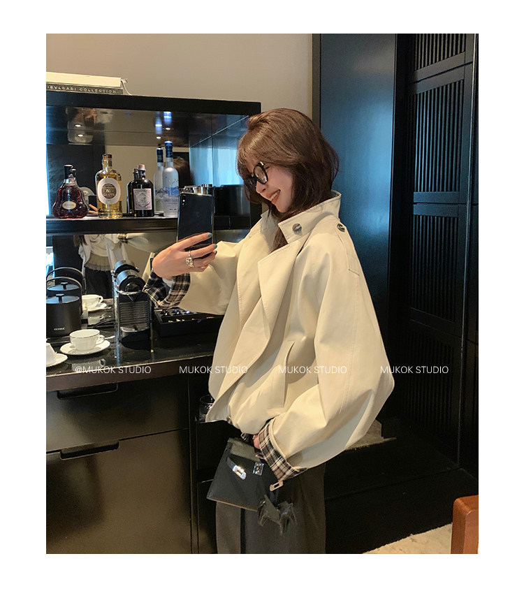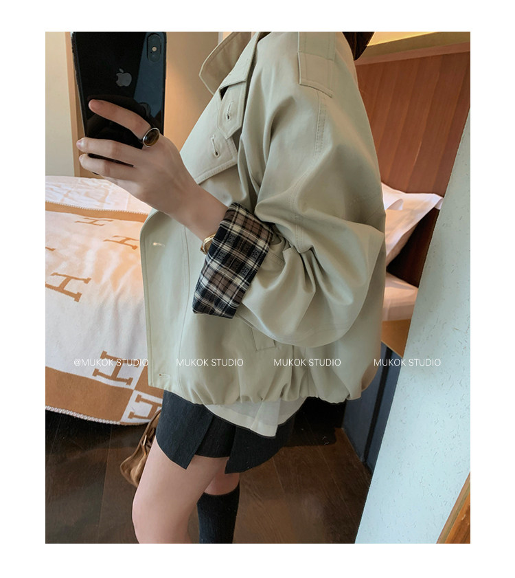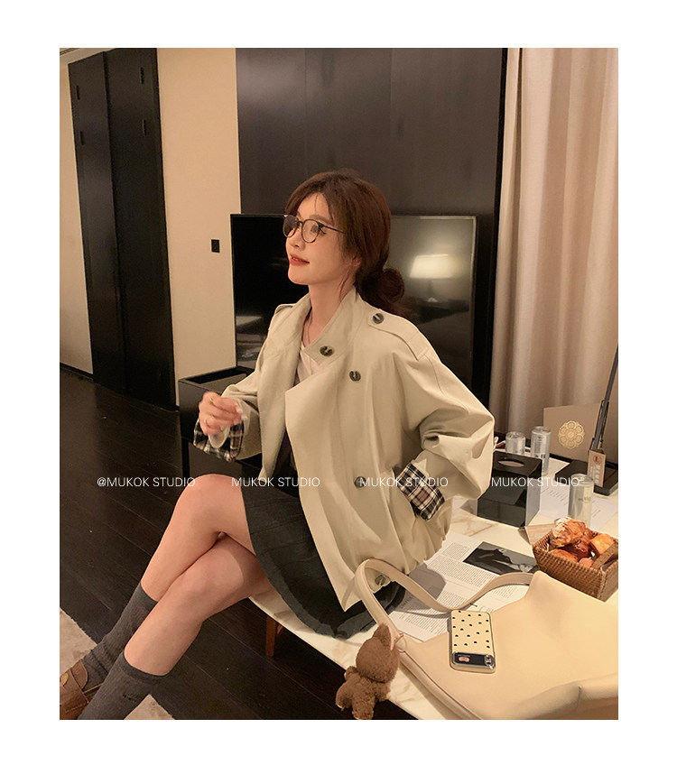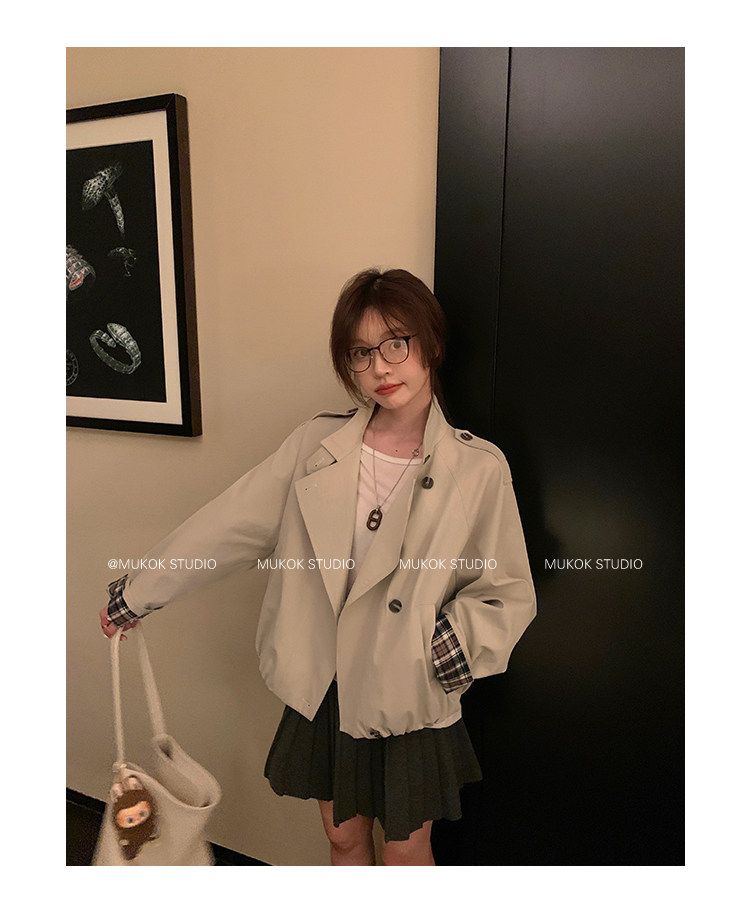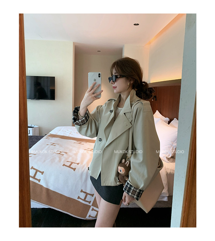 DX.DAXI Zurich MUKOK bud hem stand collar contrasting plaid commuting British style short jacket