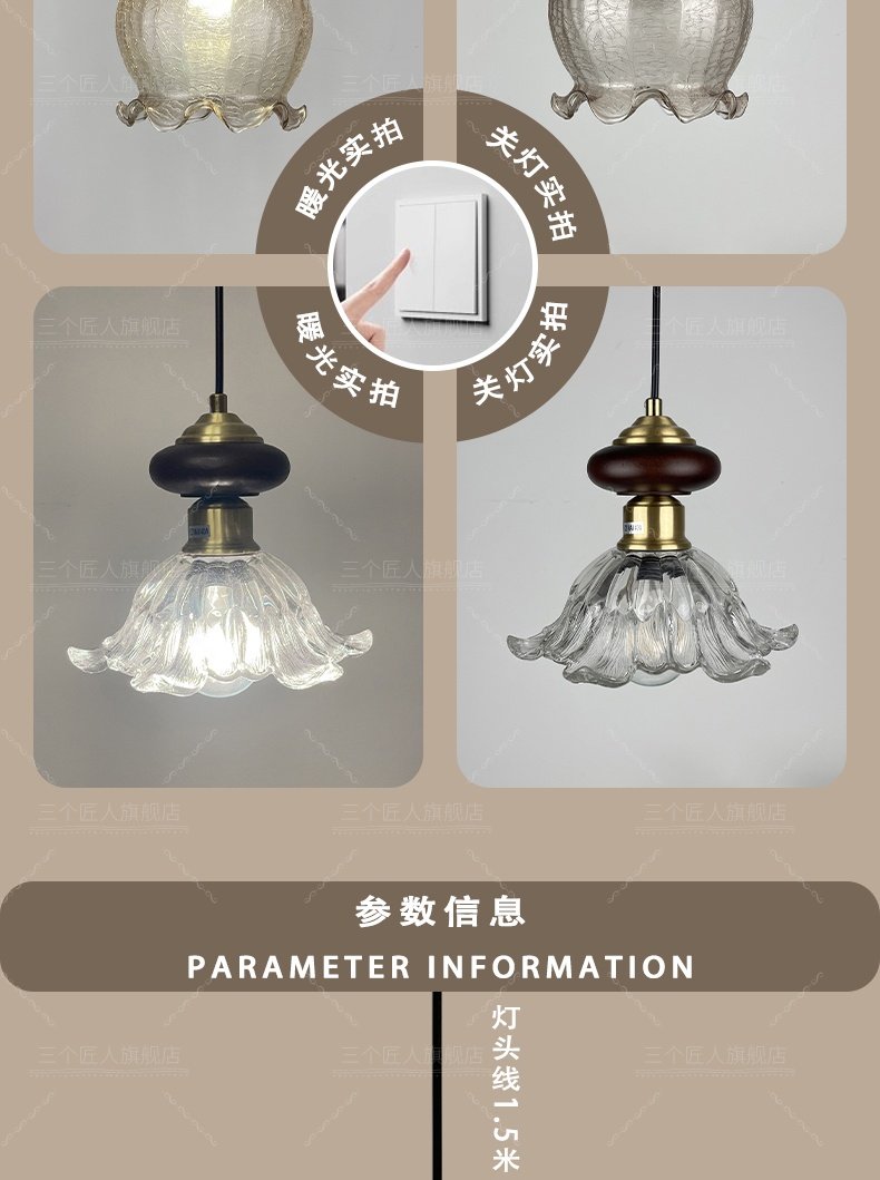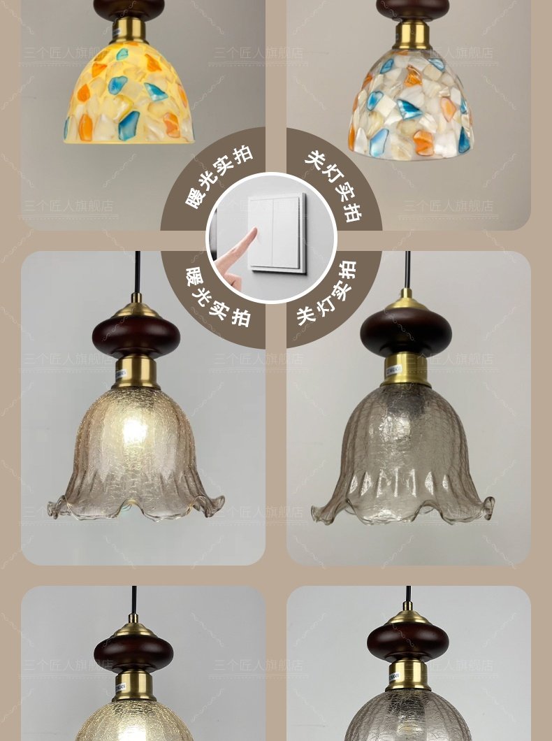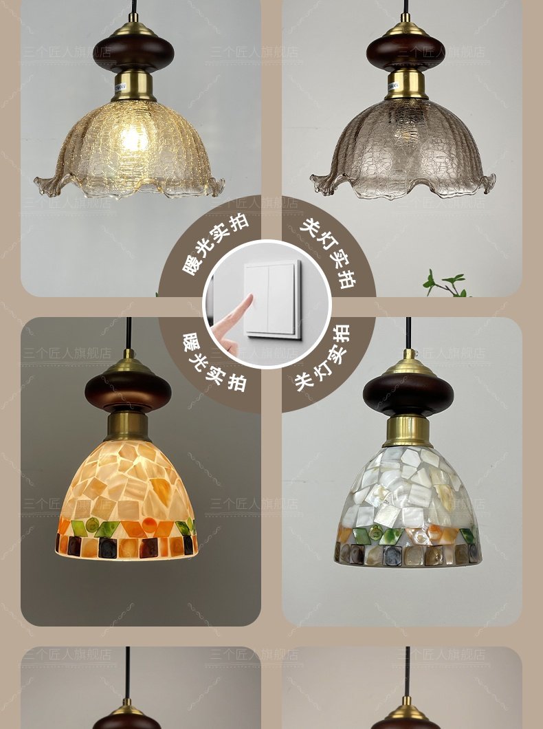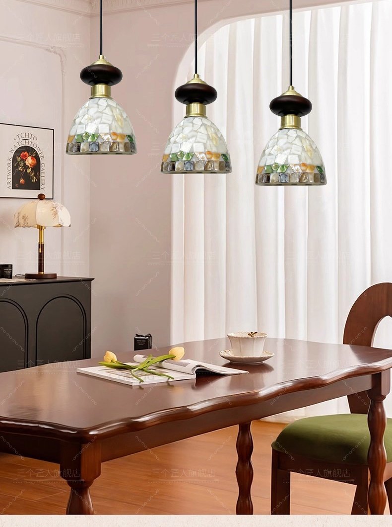 Medieval-Style American Retro Bedside Lamp, Three-Head Restaurant Glass Chandelier, B&B Cafe Bar Counter Shell Small Chandelier