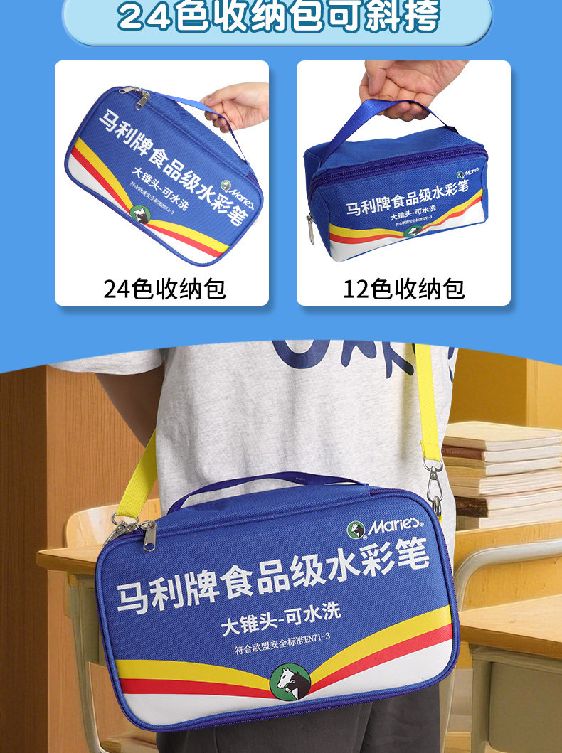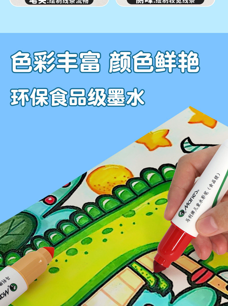 Marley Brand Food-Grade Washable Large Cone Watercolor Pen, Non-Toxic Paintbrush for Kidsren, Kindergarten and Primary School Students, 24-Colorful Pens, 36-Colorful Easy-To-Wash Coloring Pens, 12-Colorful Cone-Shaped Marker Pens