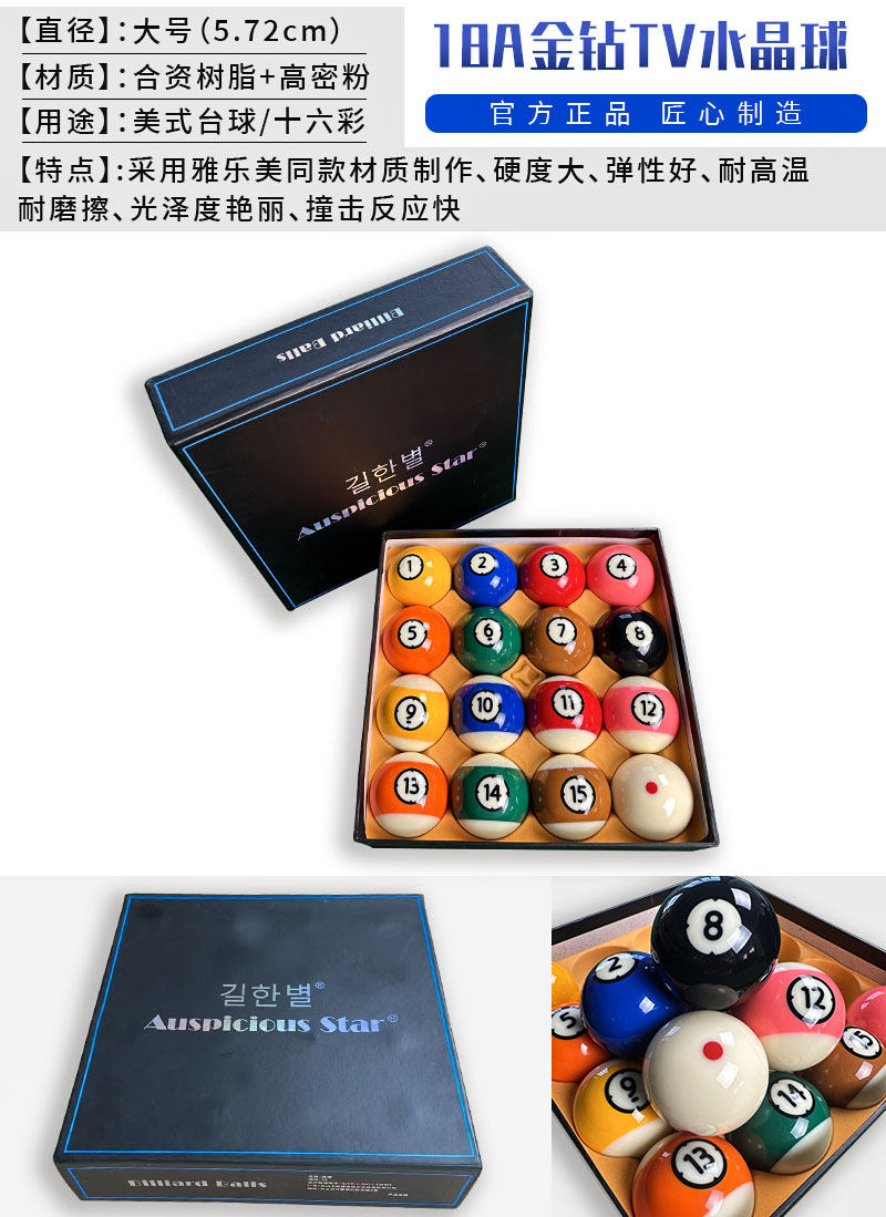 Crystal Billiard Balls, Black Ball Number 8, Snooker-Specific Balls, Billiard Cue, White Cue Ball, Tv Billiard Supplies and Accessories