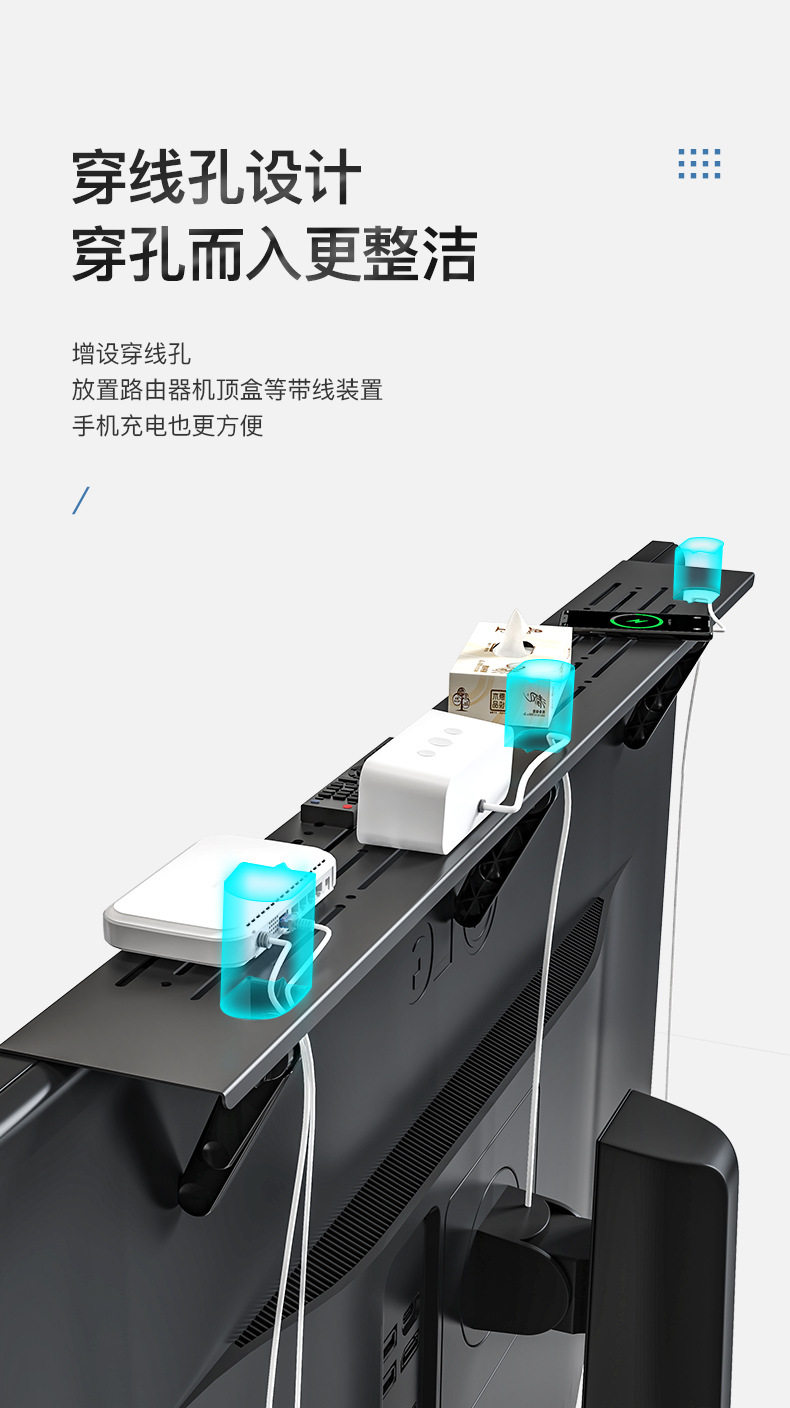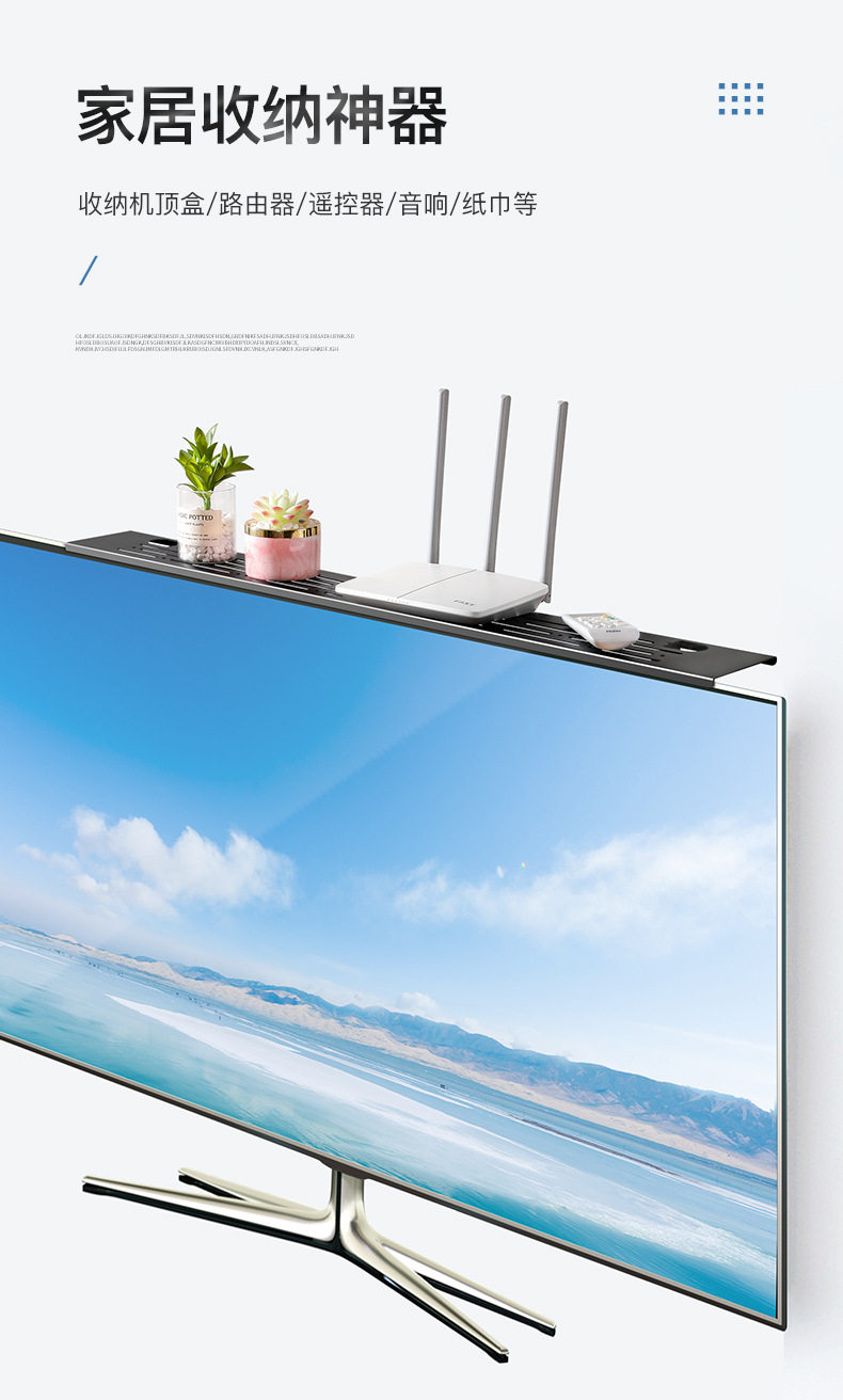 Living Room Punch-Free Tv Shelf Hanging Rack Home Office Monitor Storage Organizer Shelf Remote Control Holder