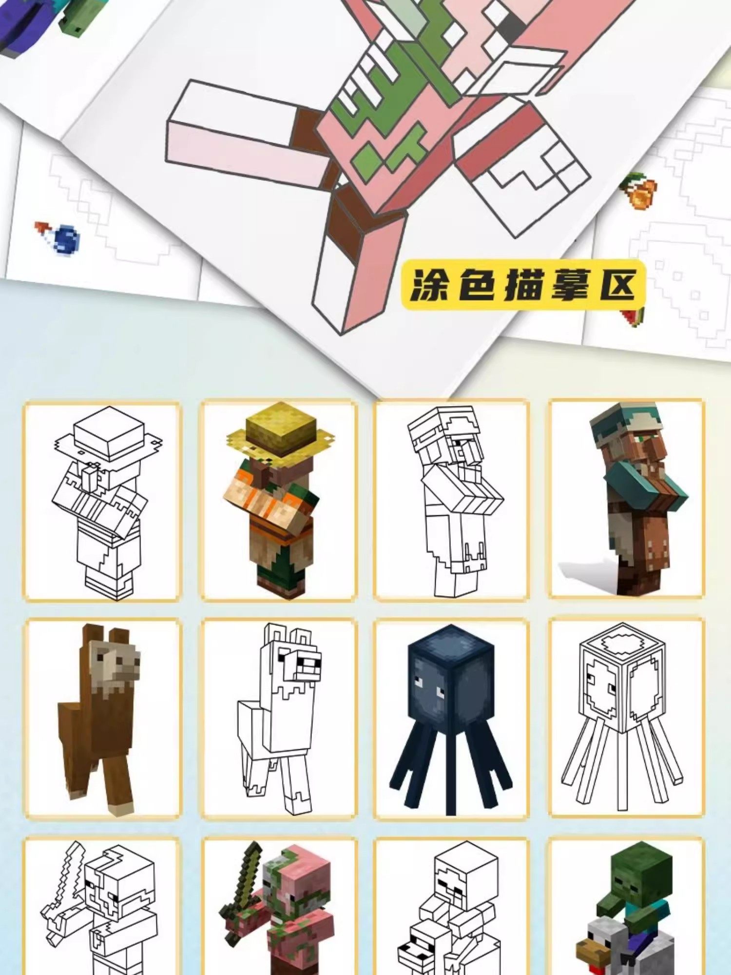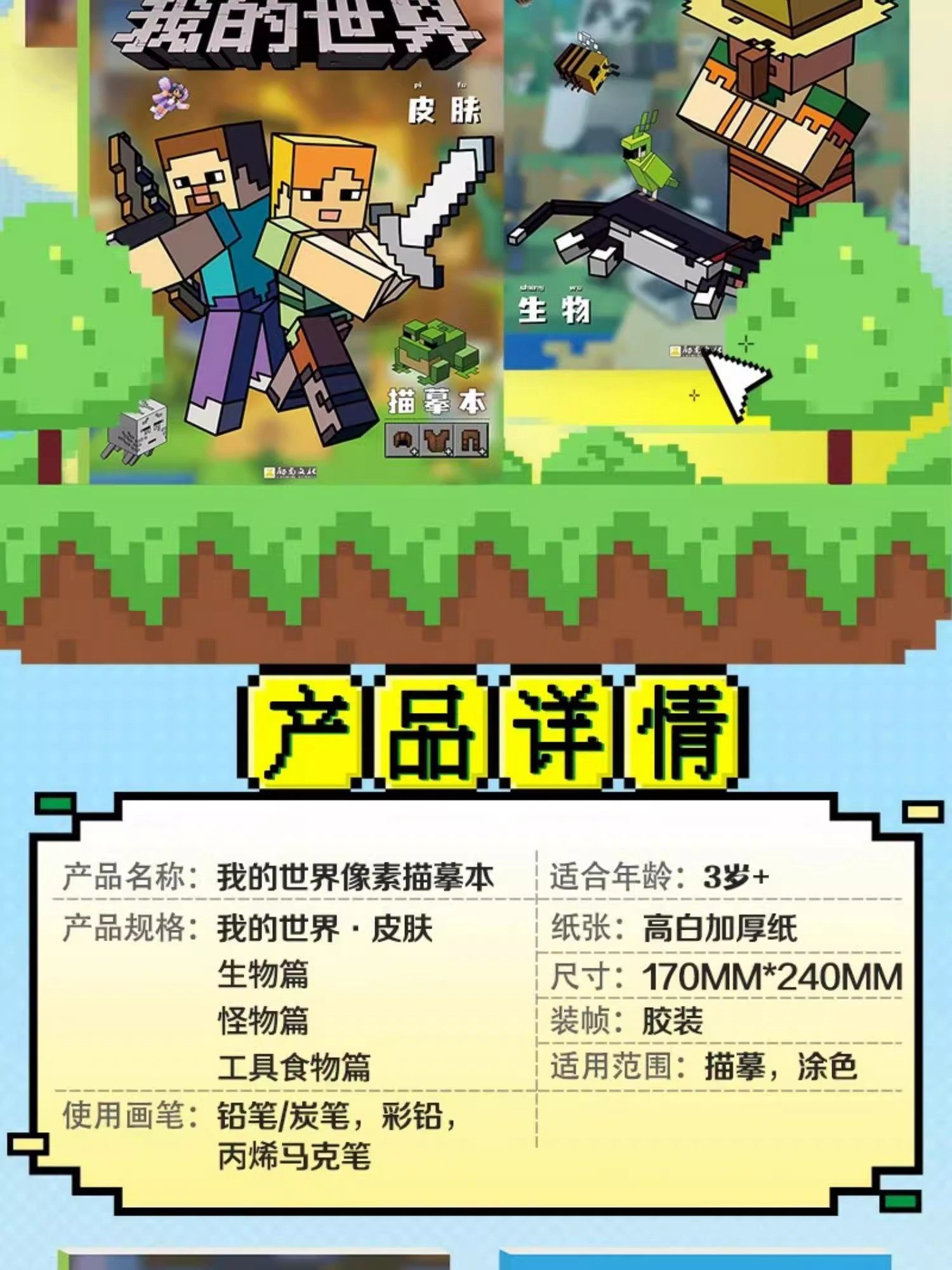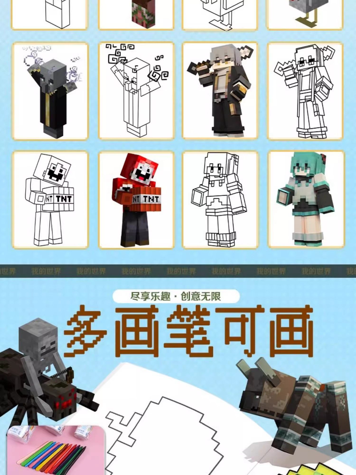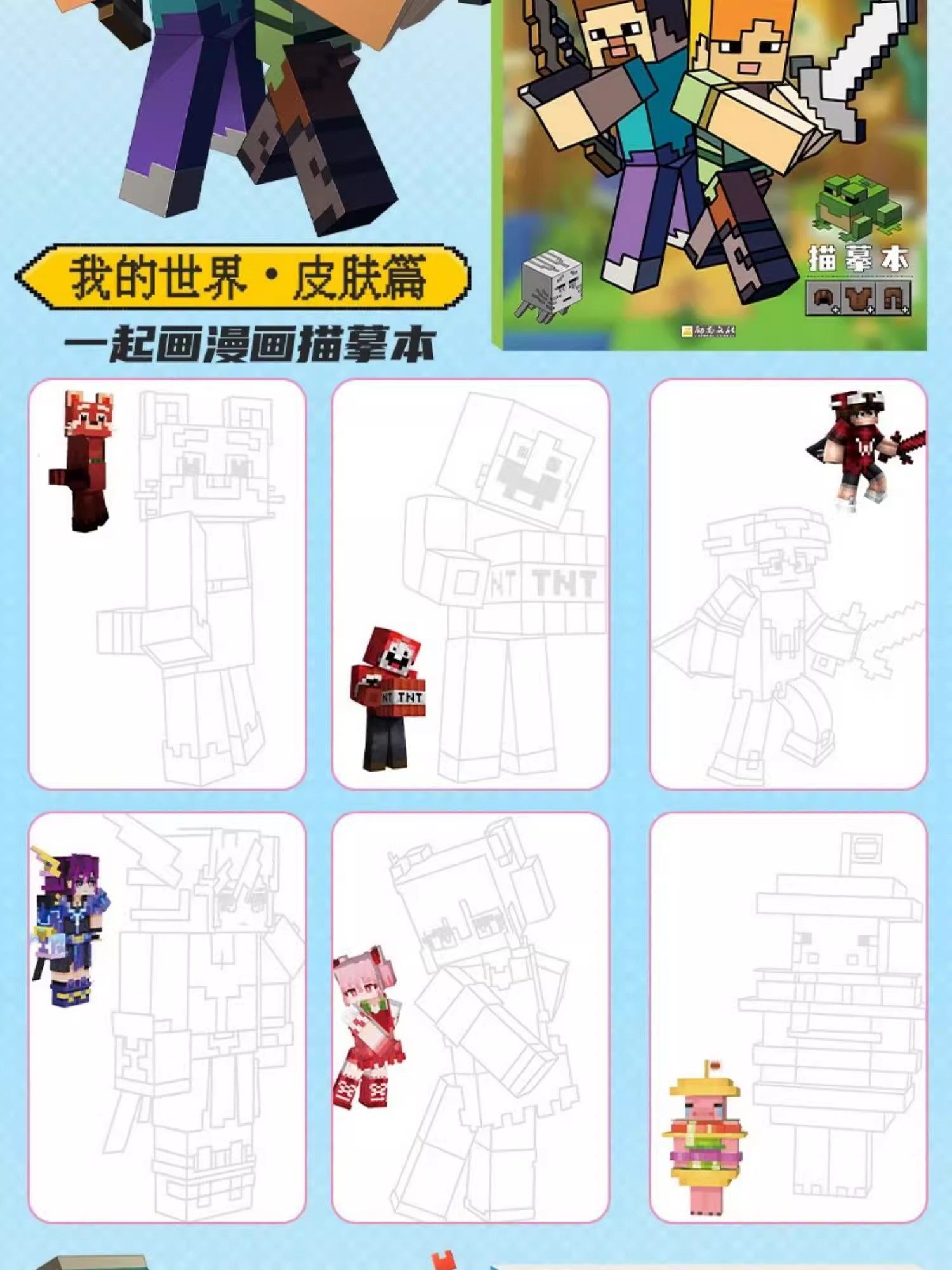 New Minecraft Tracing Book Anime Cartoon Pixel Painting Book Elementary School Student Drawing Album Line Drawing Picture Book