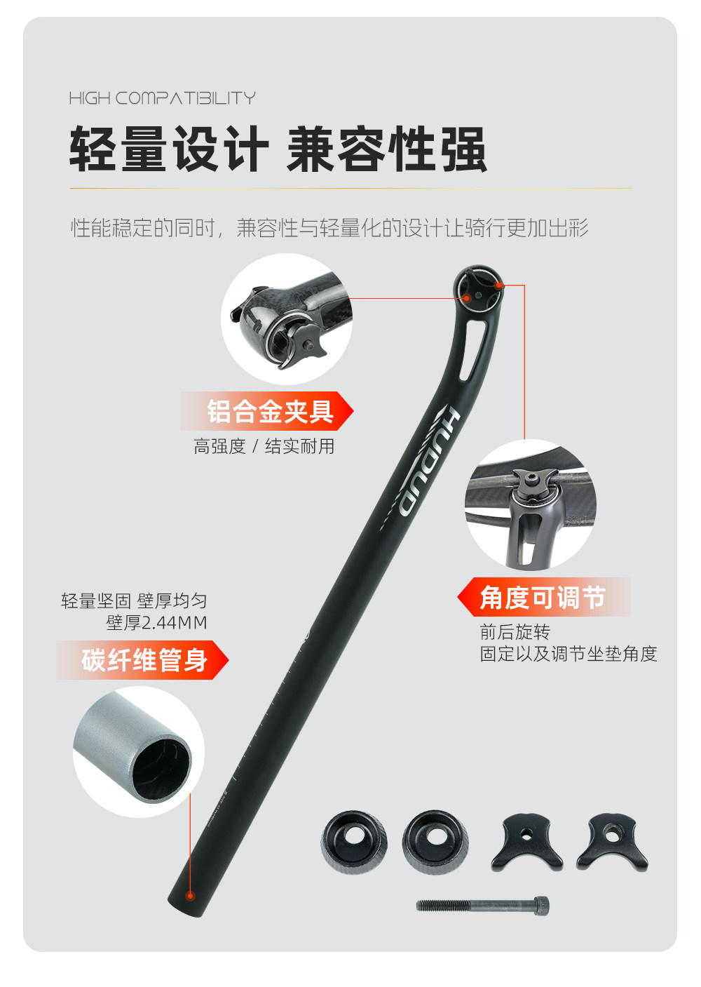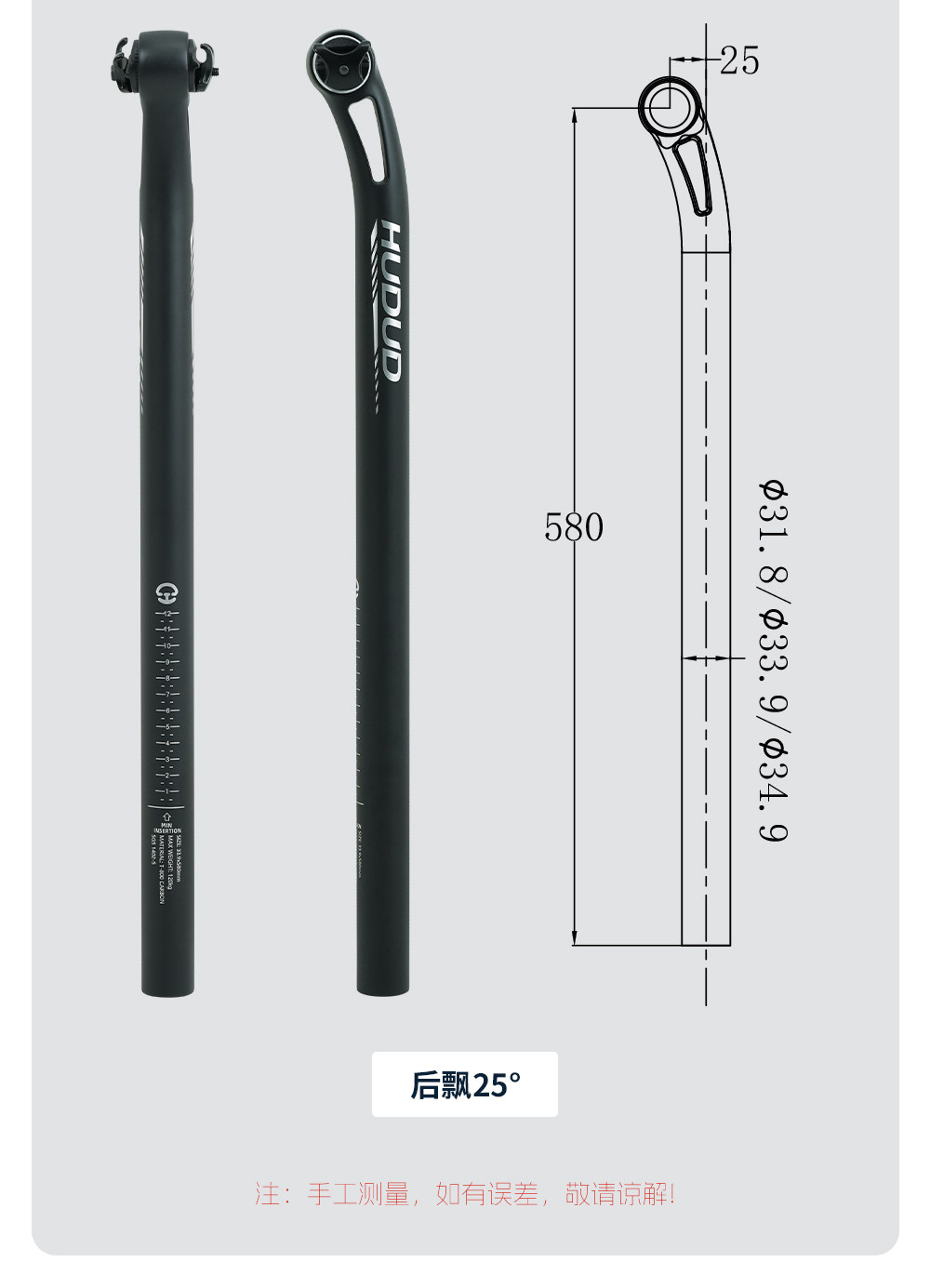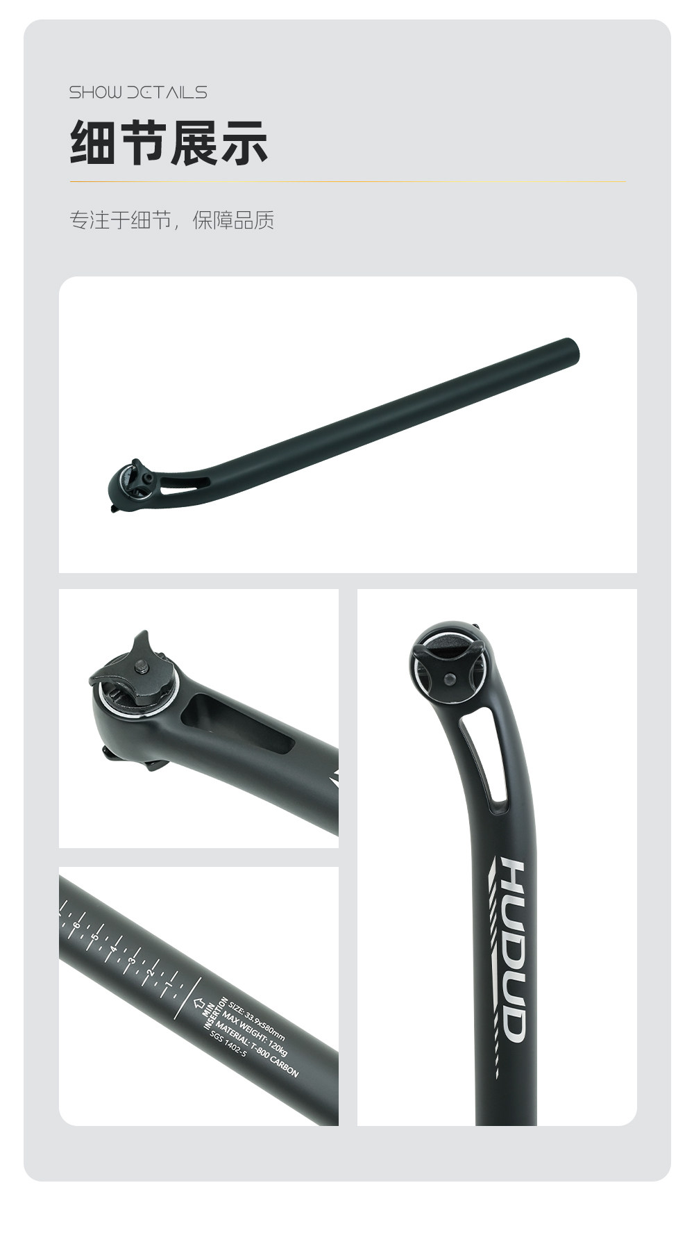 Hudud Folding Bicycle Carbon Fiber Seatpost Mountain Bike Seatpost Round Seatpost 31.8 33.9 34.9mm