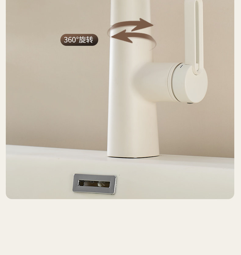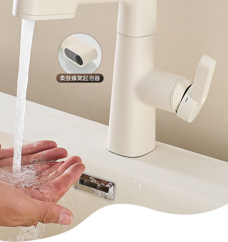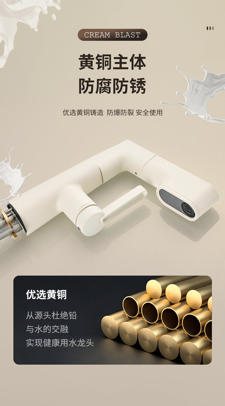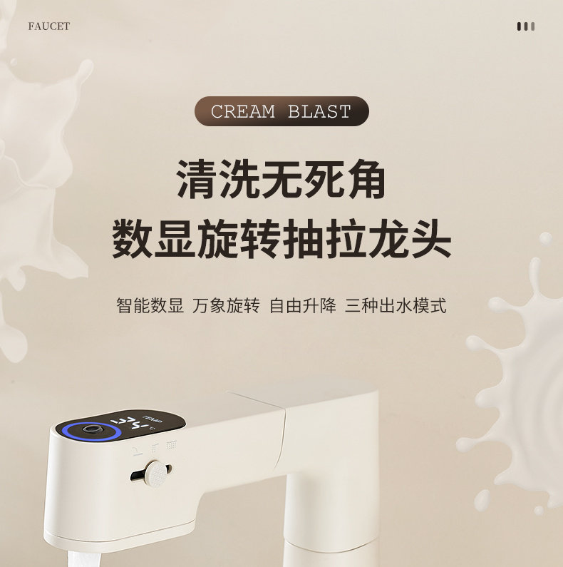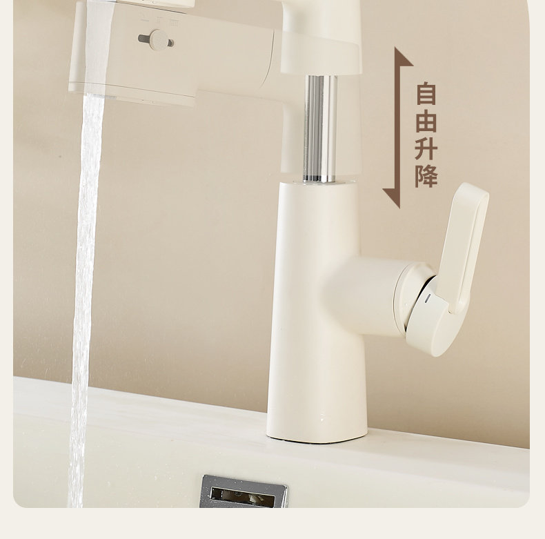 Italian Aisino All-Copper Cream-Colored Digital Display Pull-Out Faucet for Mouthwash, Hair Washing, Bathroom Sink